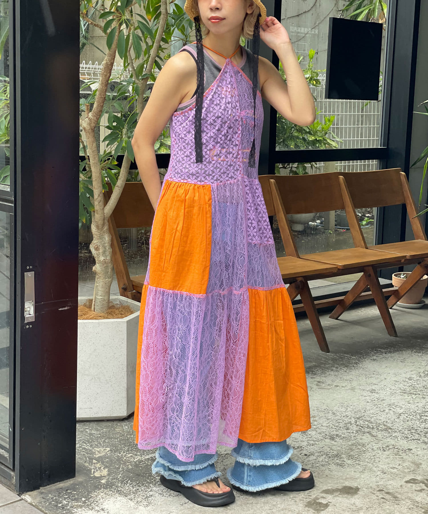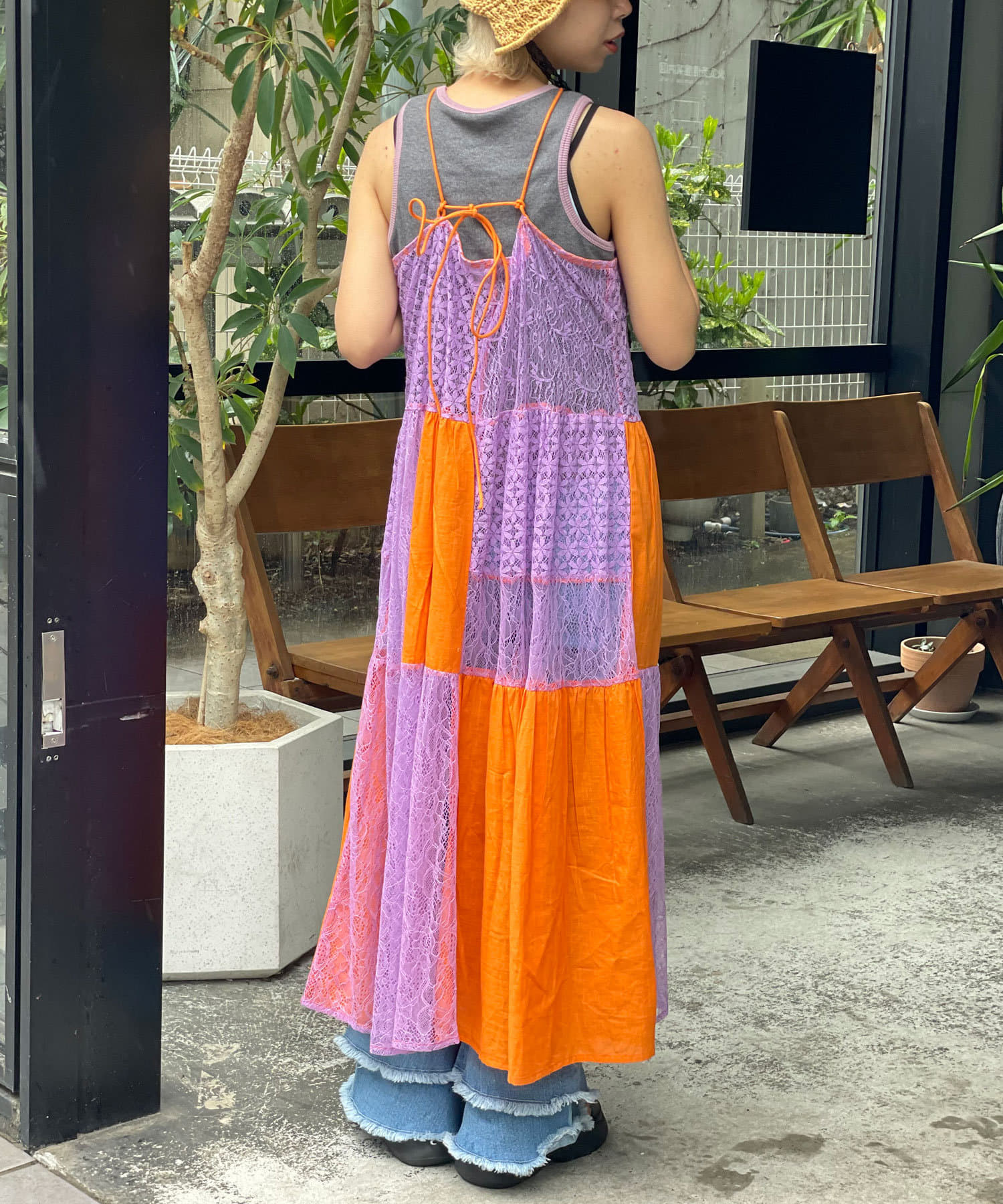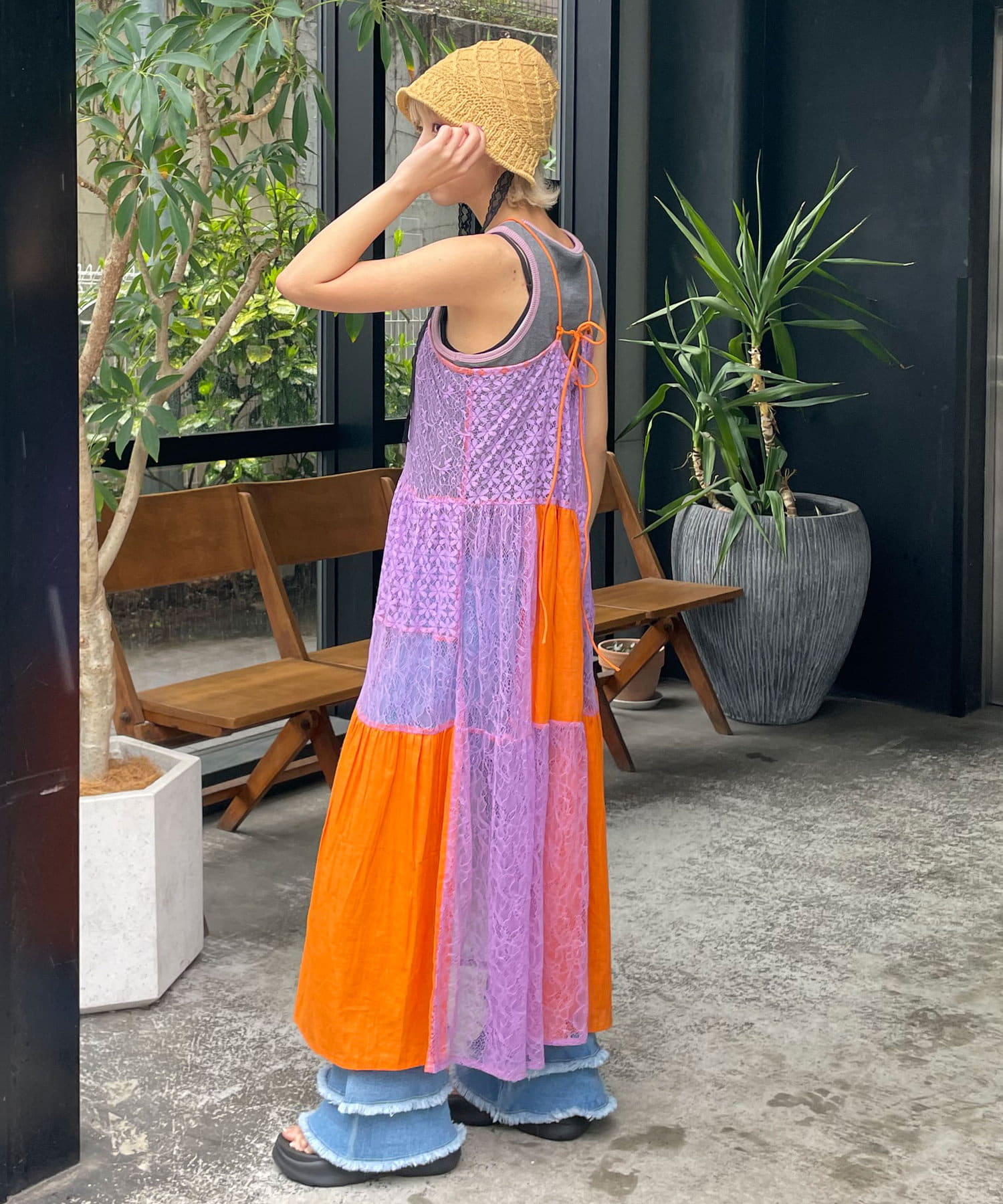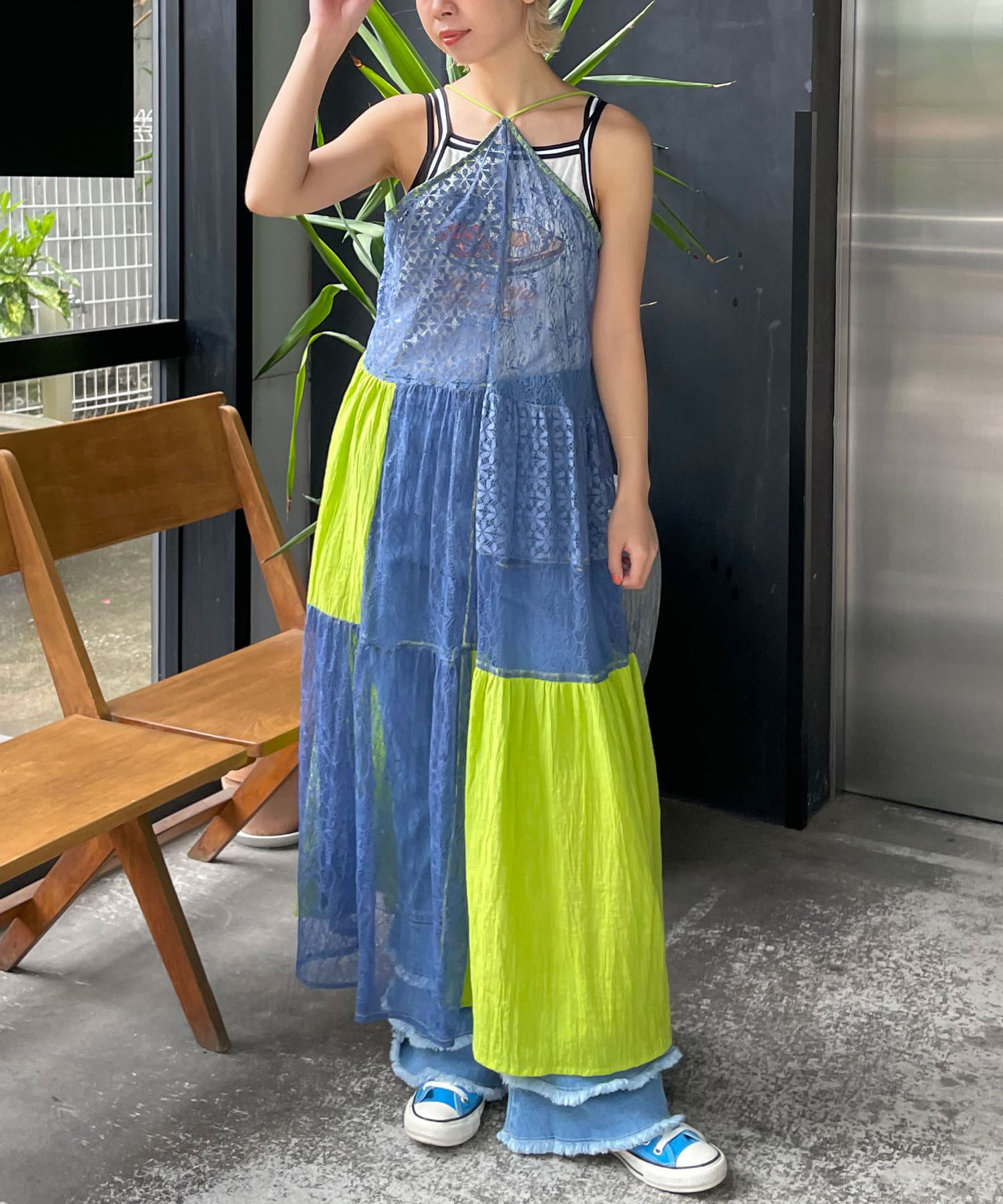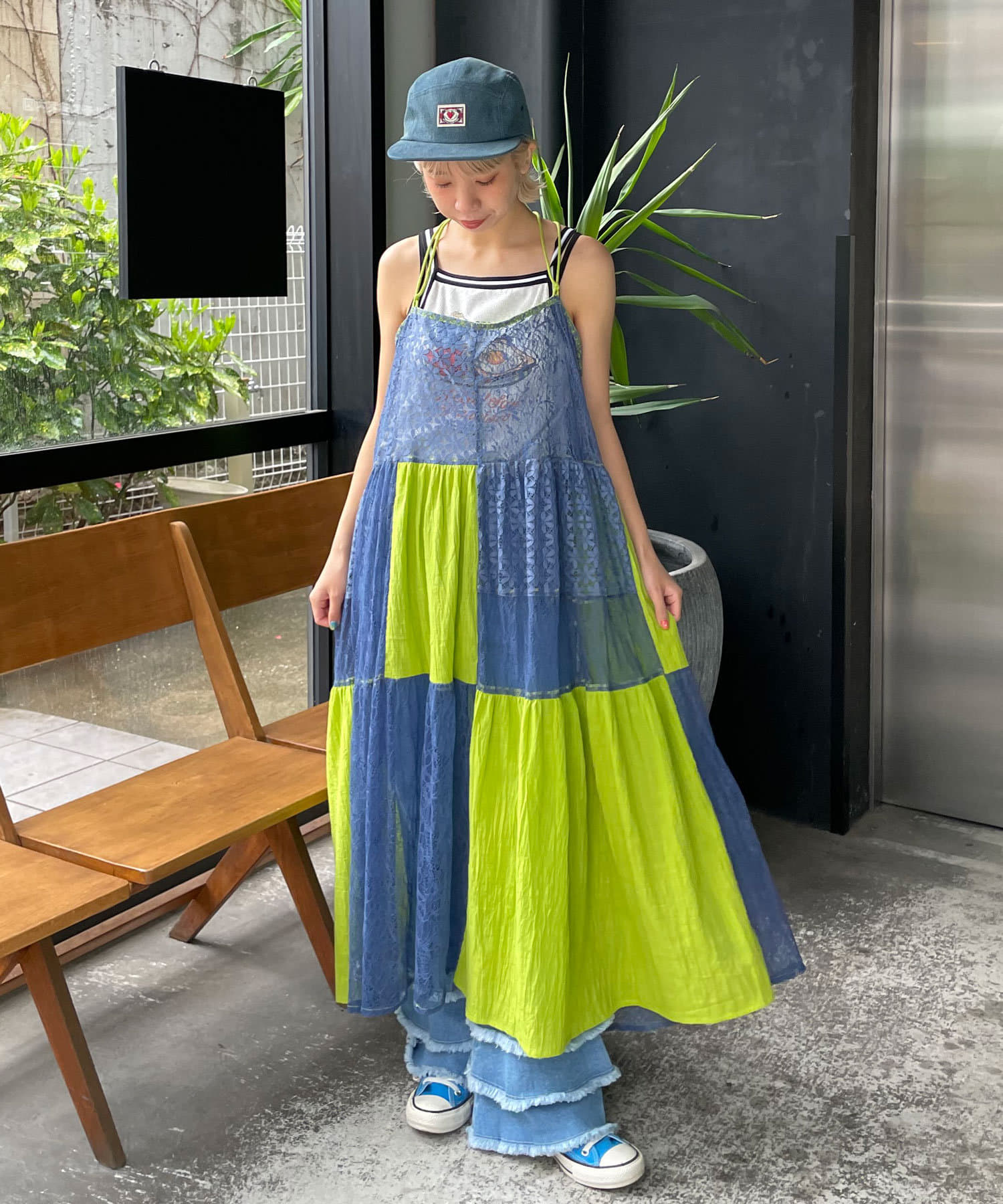 【HELLO.SANFRANCISCO/ハローサンフランシスコ】indiaパッチワークカラーレース2WAYキャミワンピ