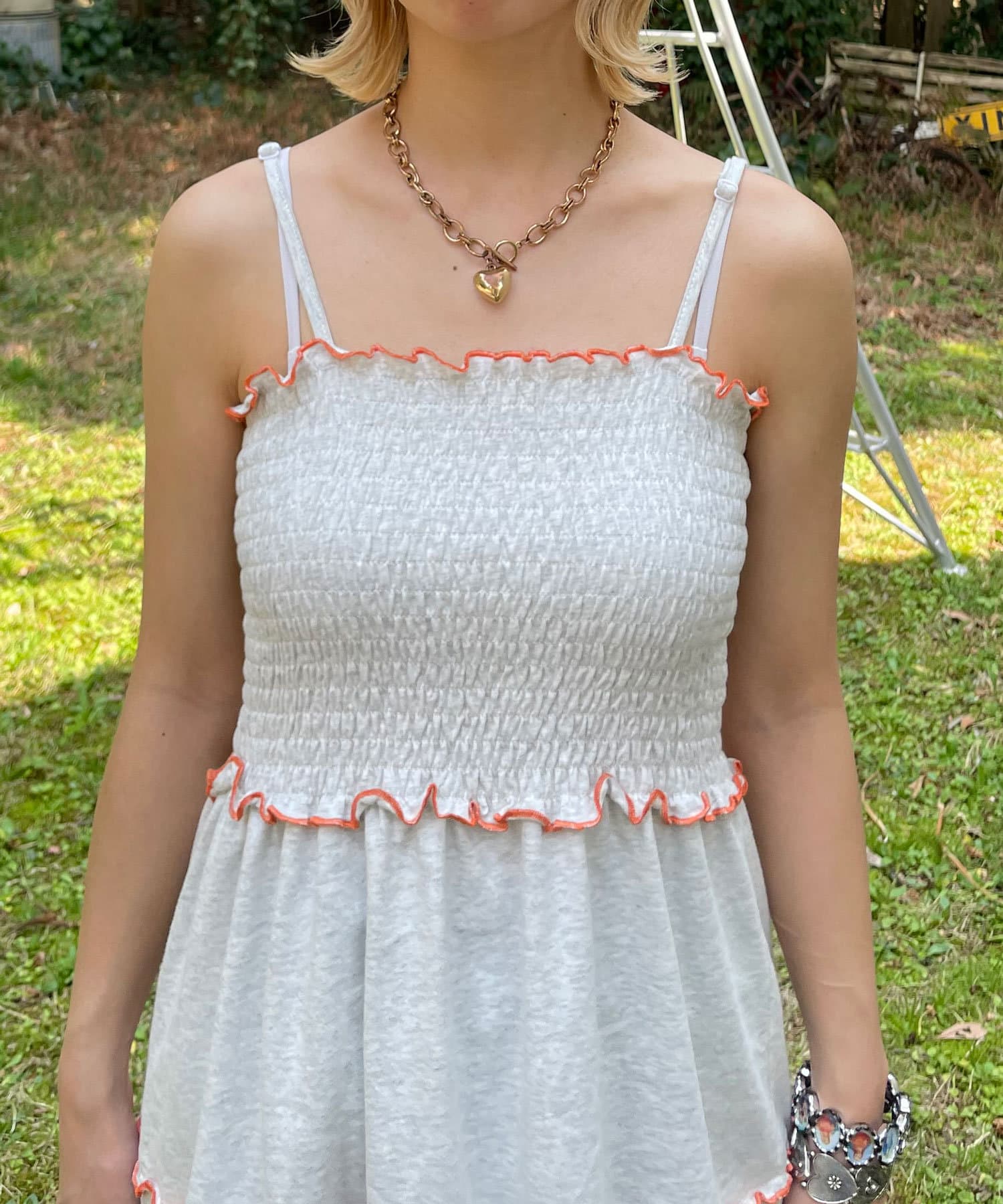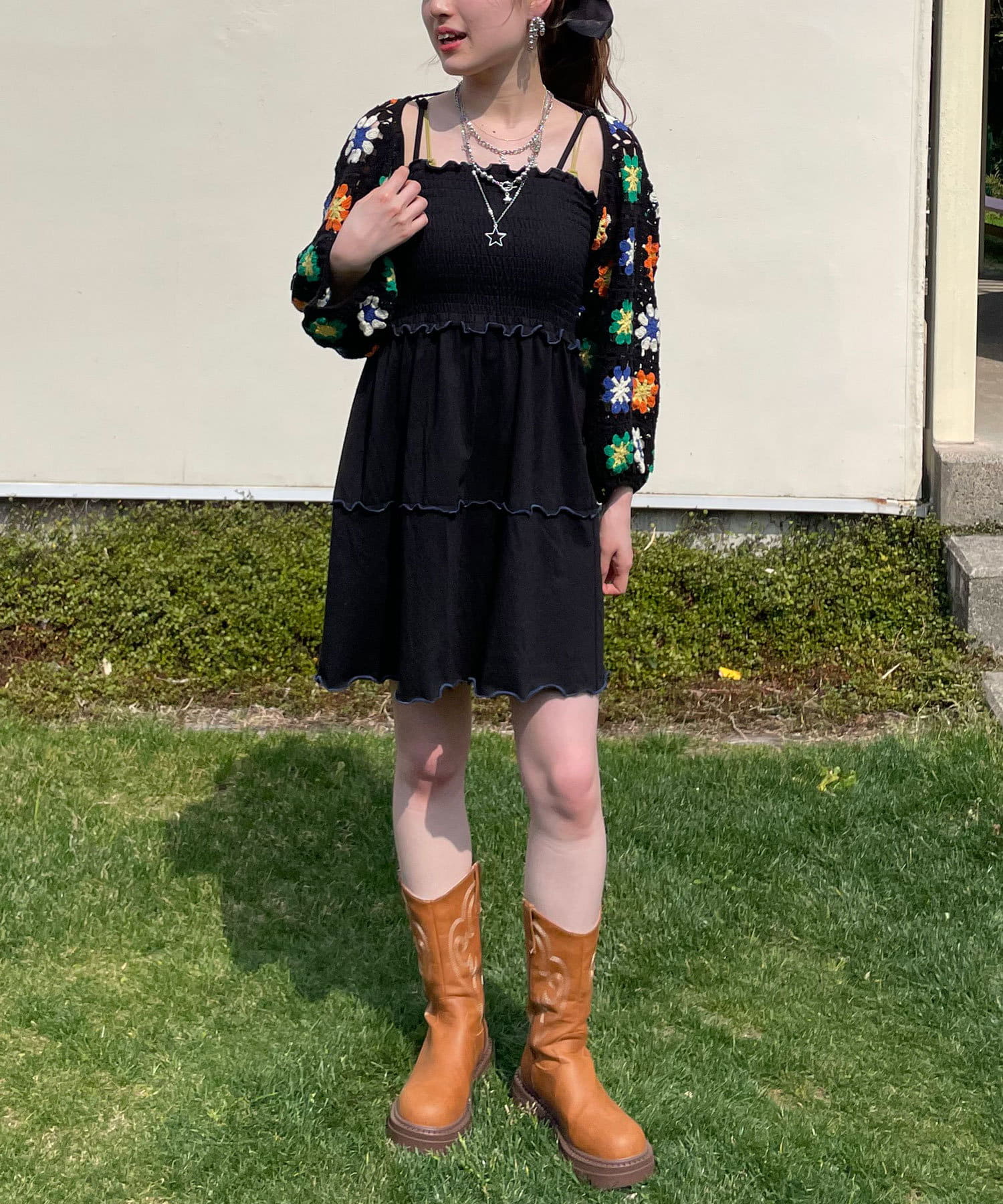 人気だったクロシェボレロセットのキャミワンピが、丈を短くして今年らしくアップデート。