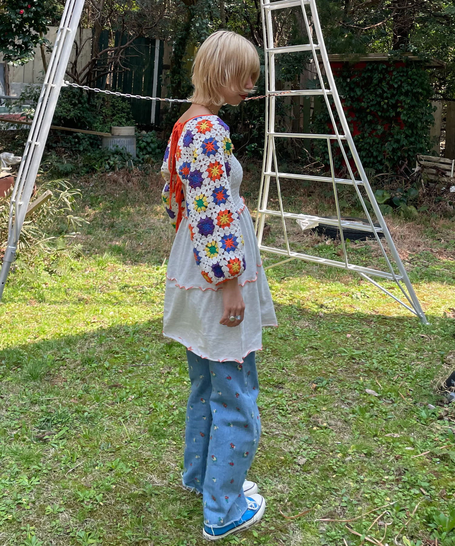 クロシェボレロはデニムやワイドパンツと合わせて、ラフに着崩すのもおすすめです。