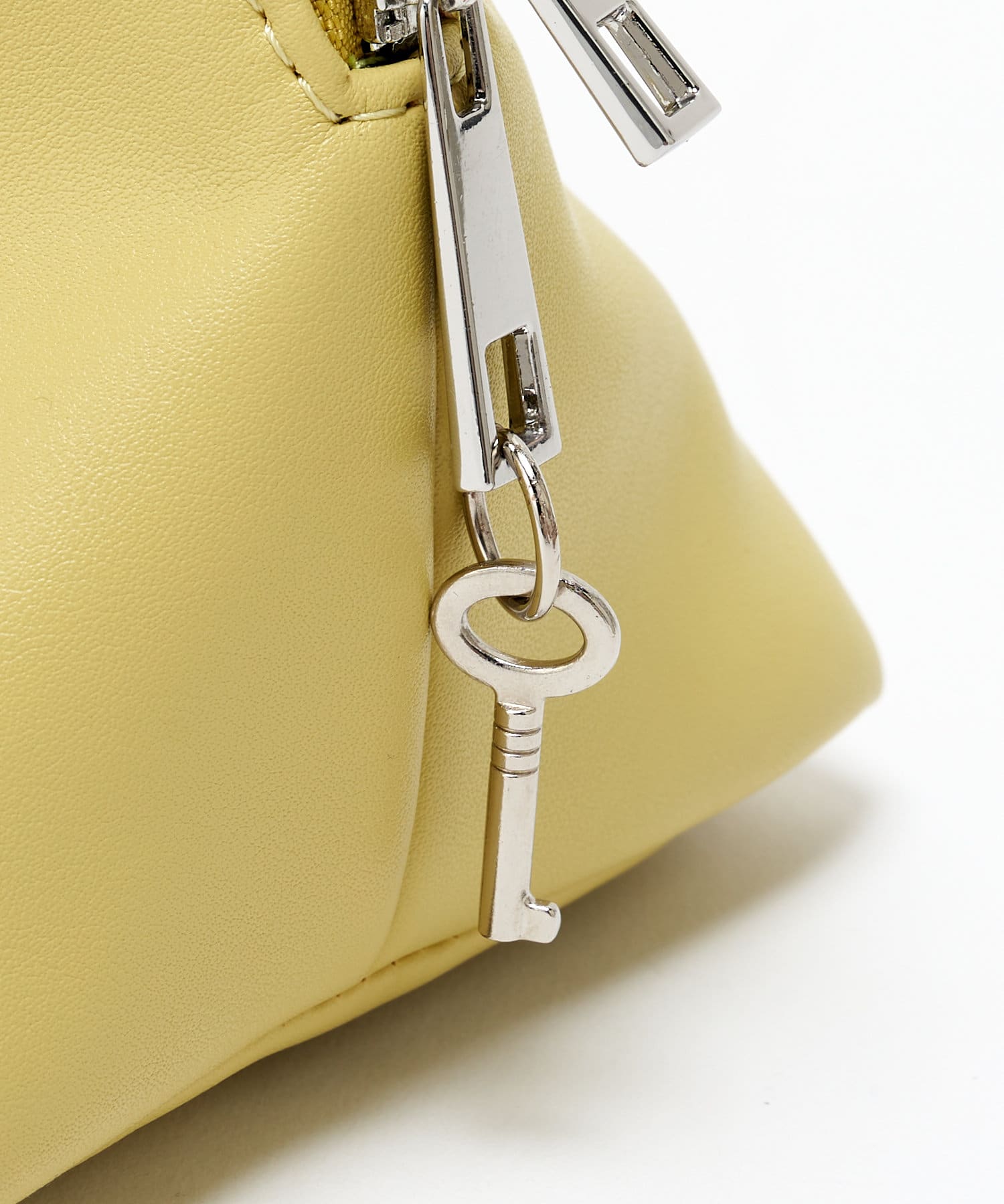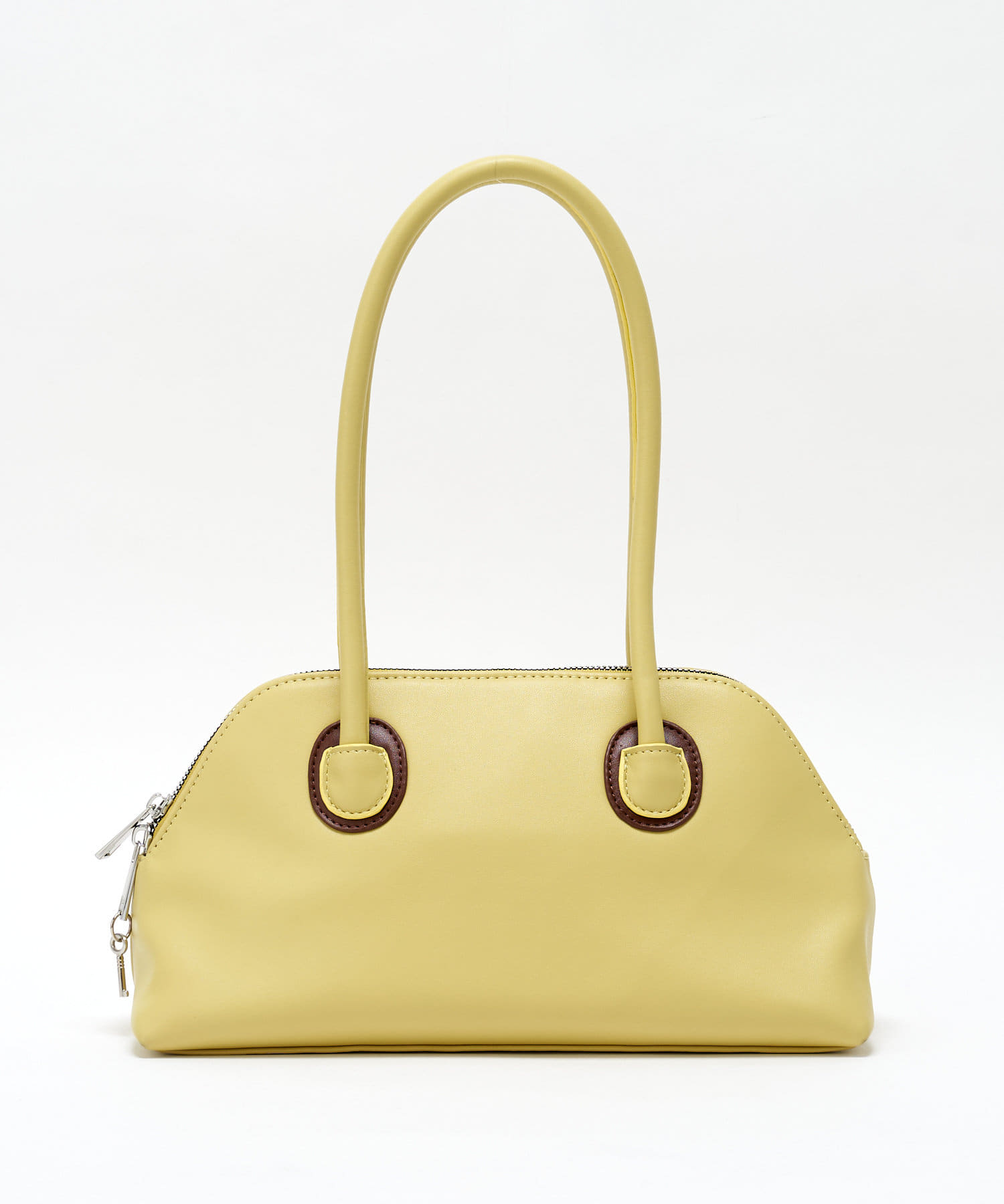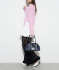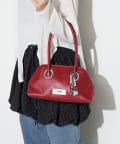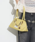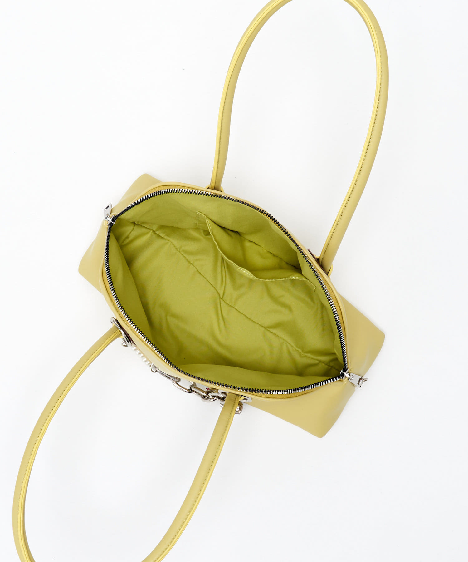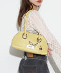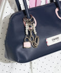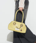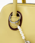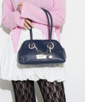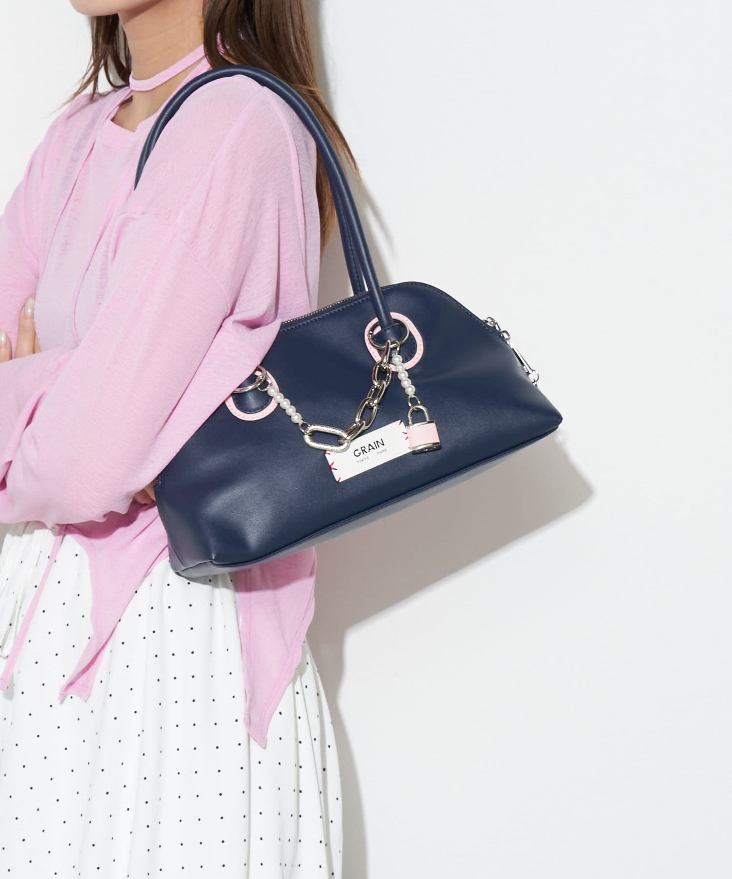 メタル×パール×南京錠チャームが目を引く、バイカラー配色のトートバッグ。