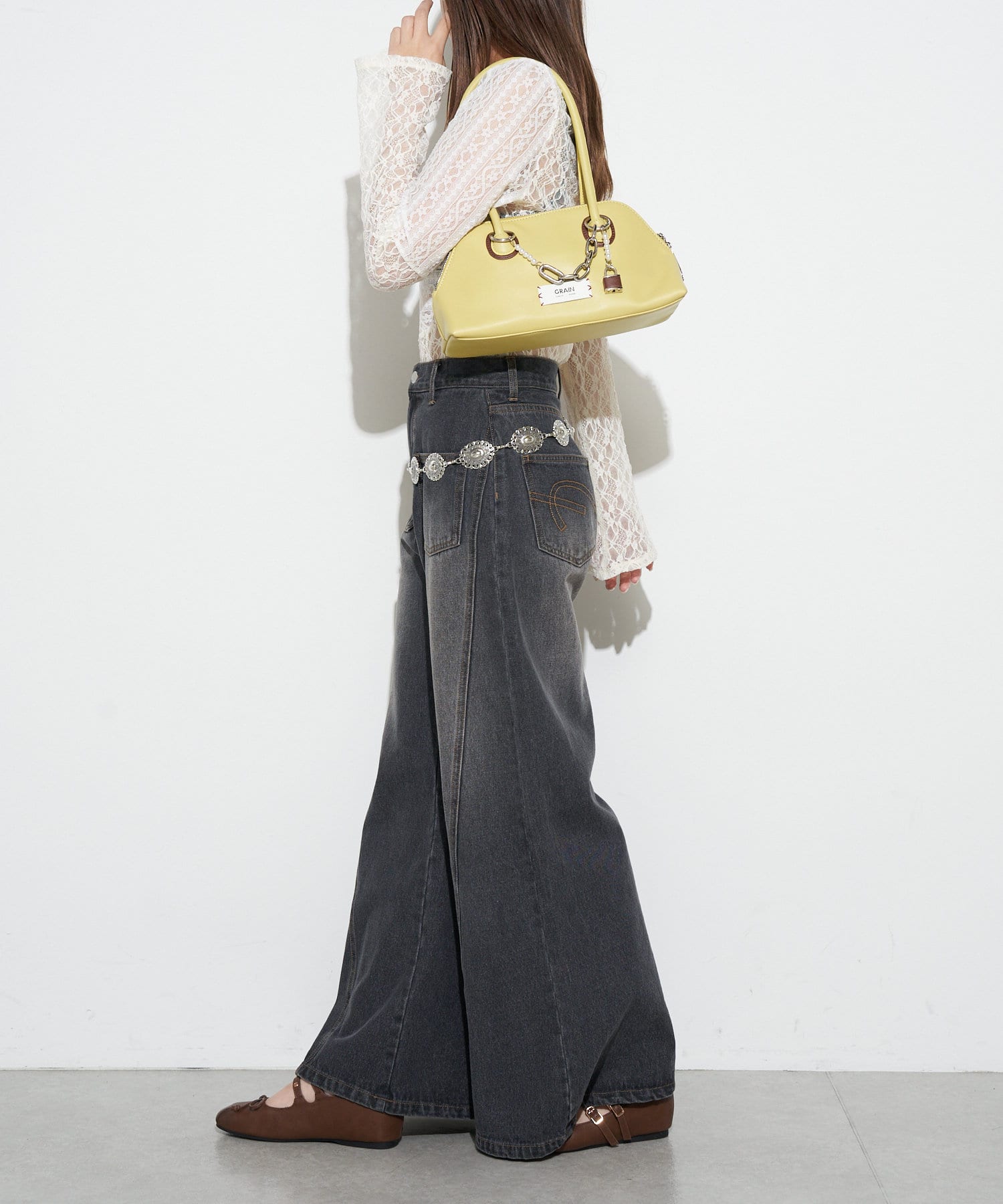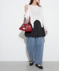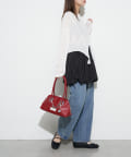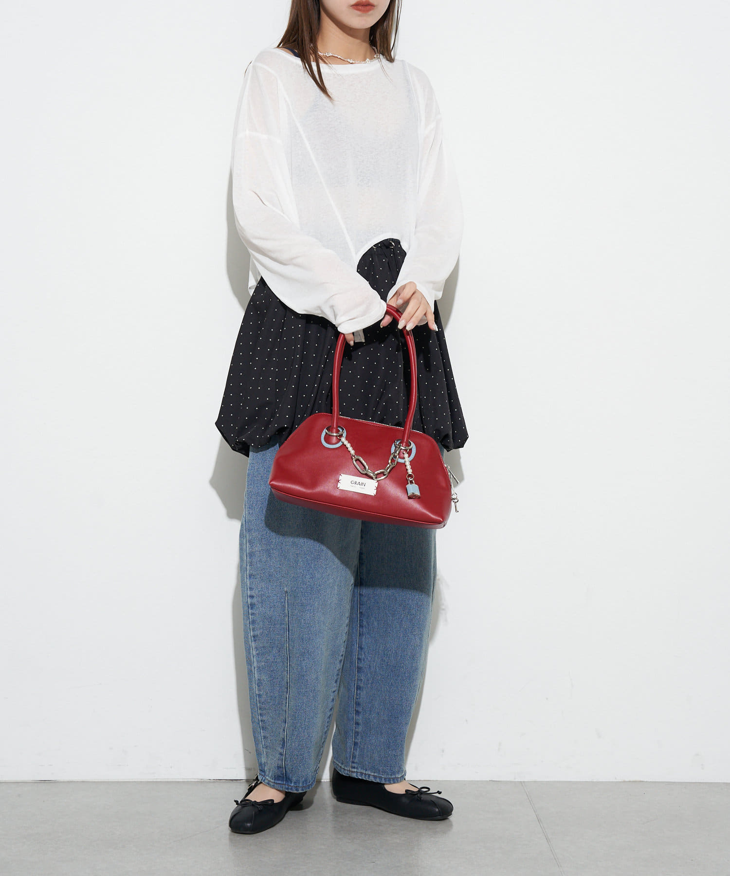 デニムにTシャツのラフコーデも、このバッグで一気に旬な印象に。