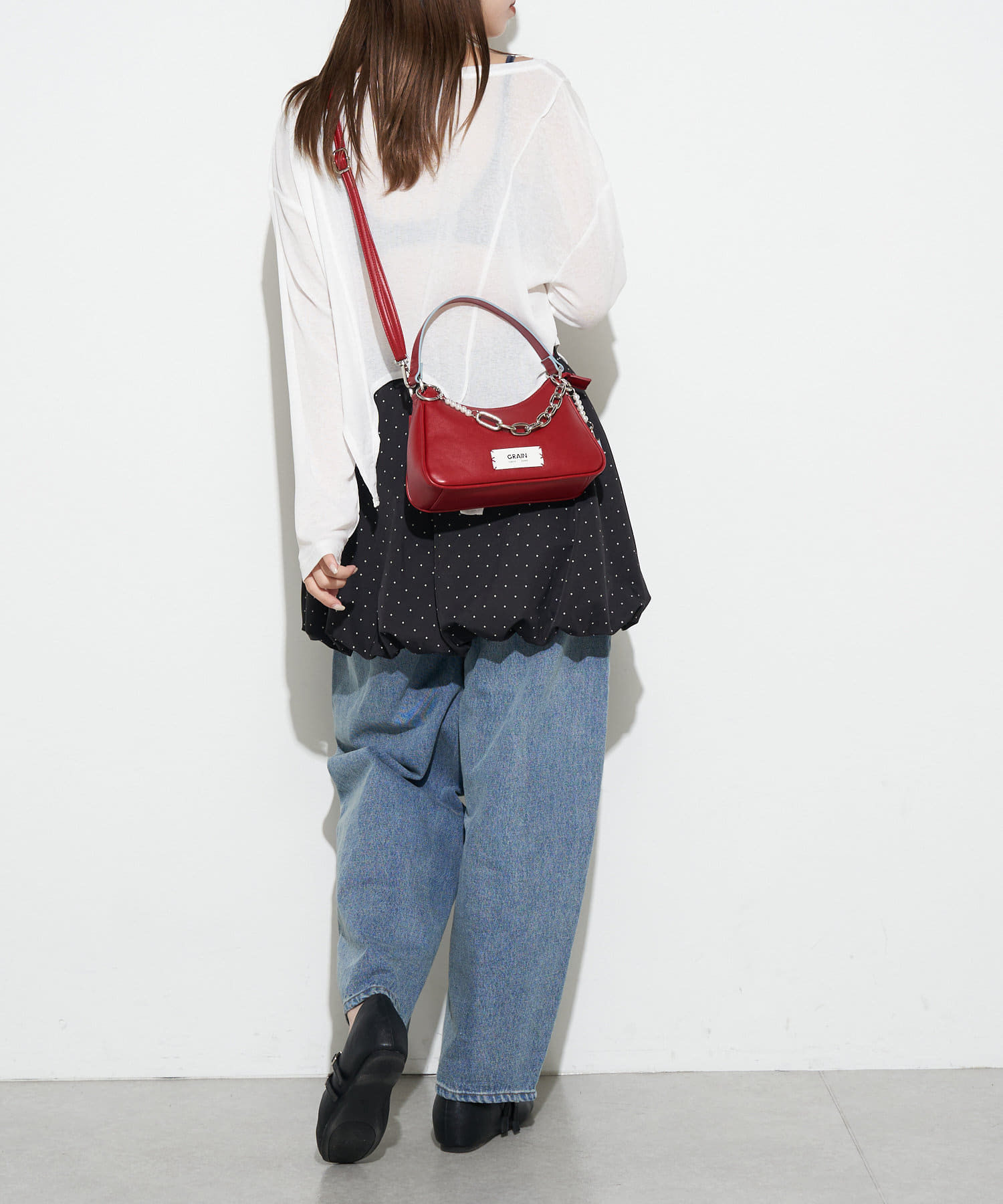 ショルダーとハンドの2WAYで使える、実用性とデザイン性を兼ね備えたアイテムです。