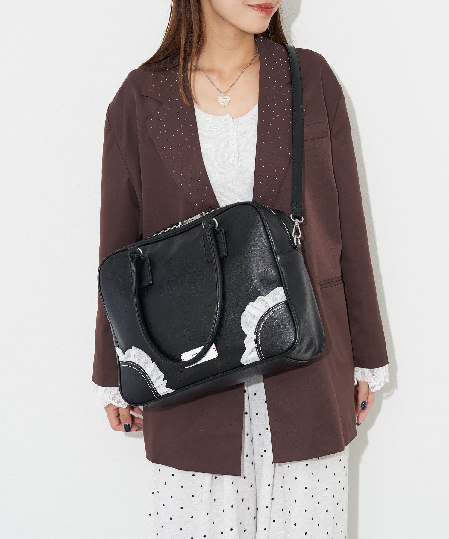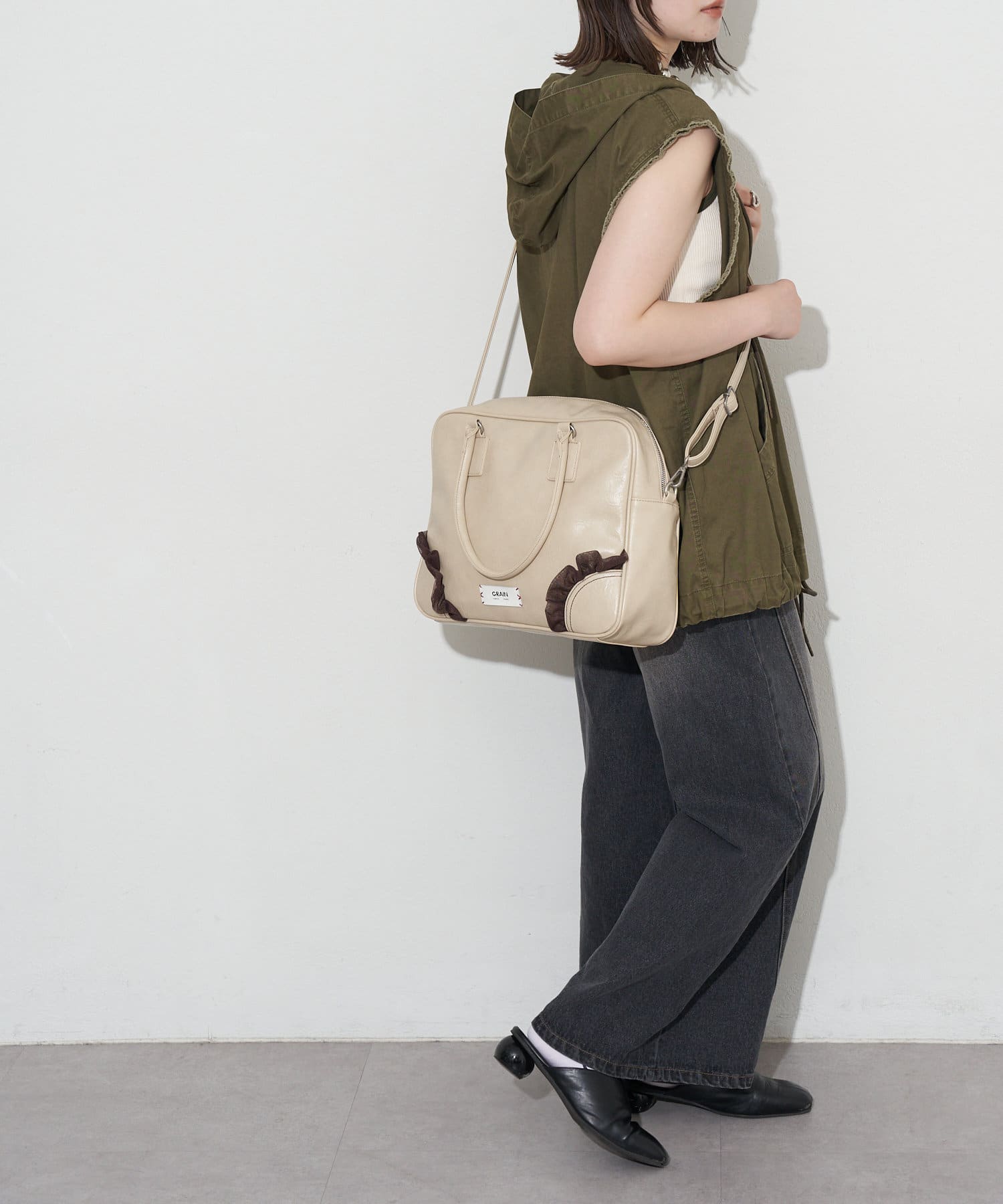 たっぷり入ってしっかり可愛いフリルボストンバッグ