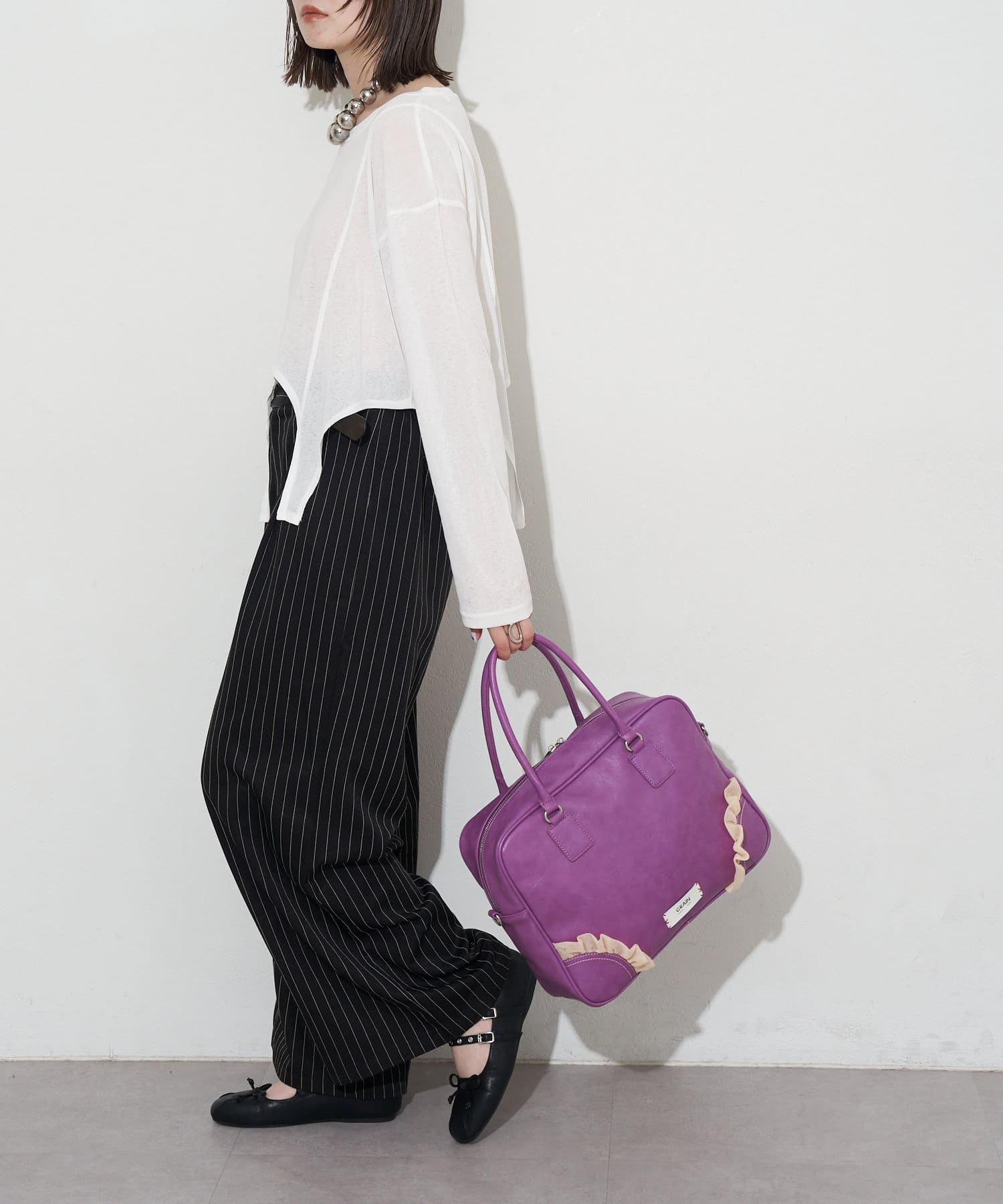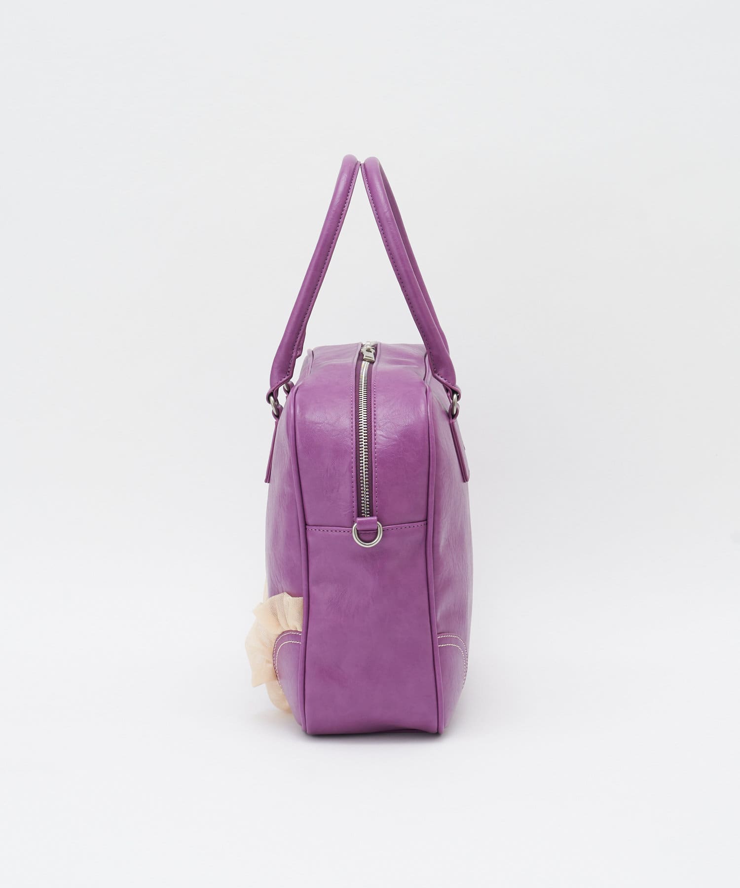 チュールのフリルをあしらった、大人ガーリーな雰囲気のボストンバッグ。