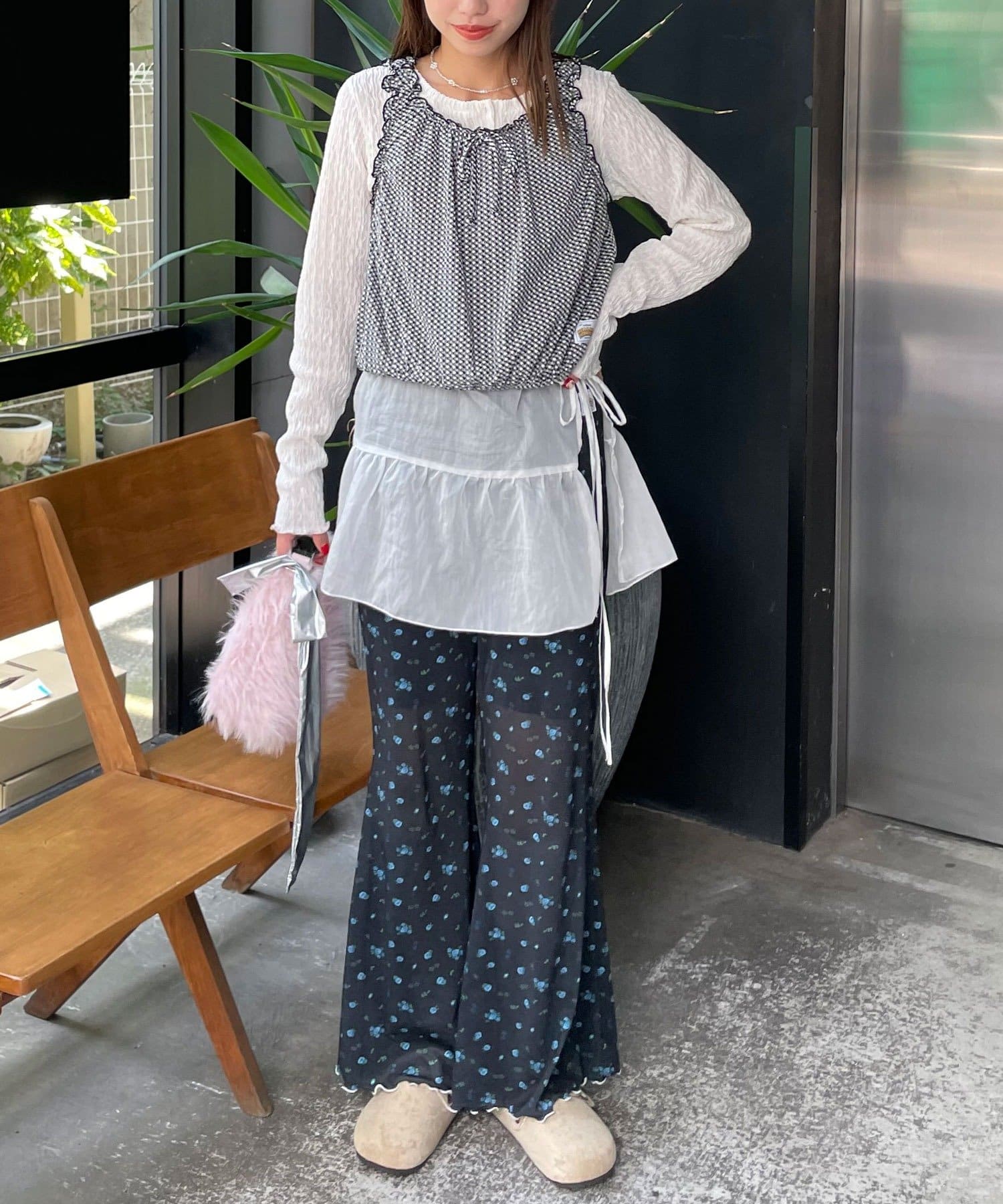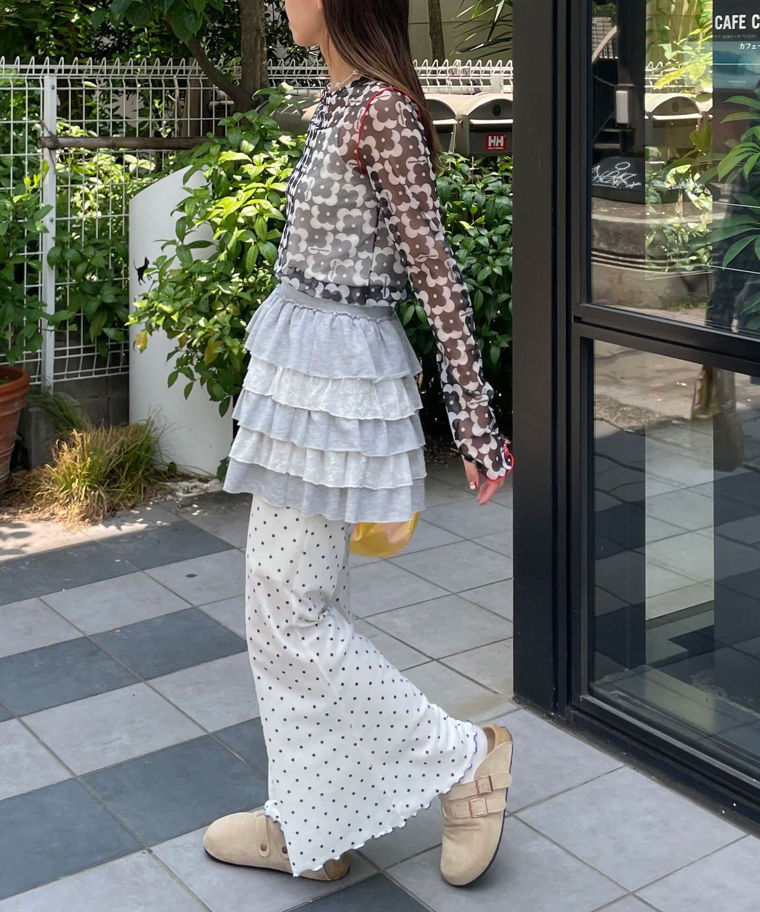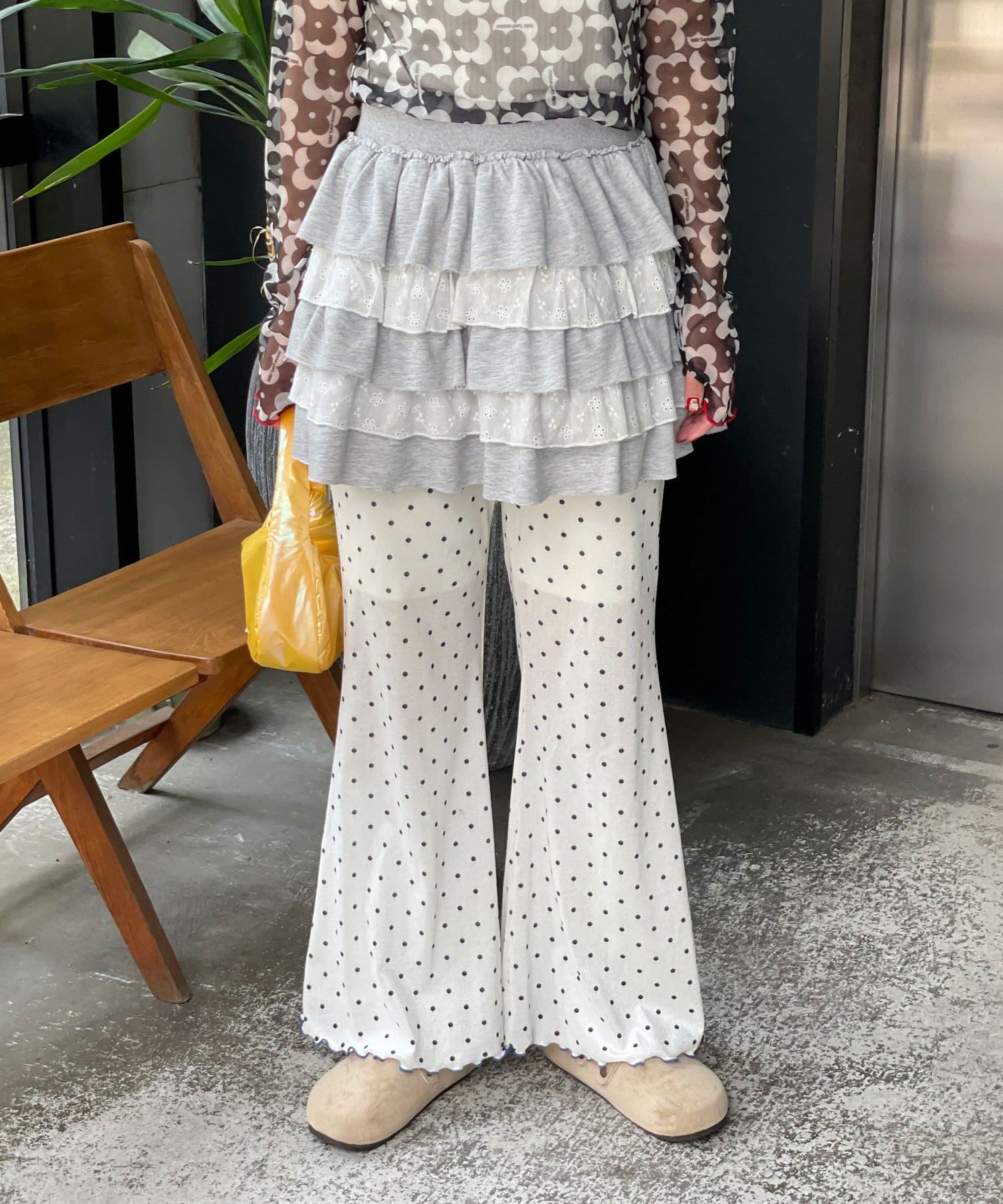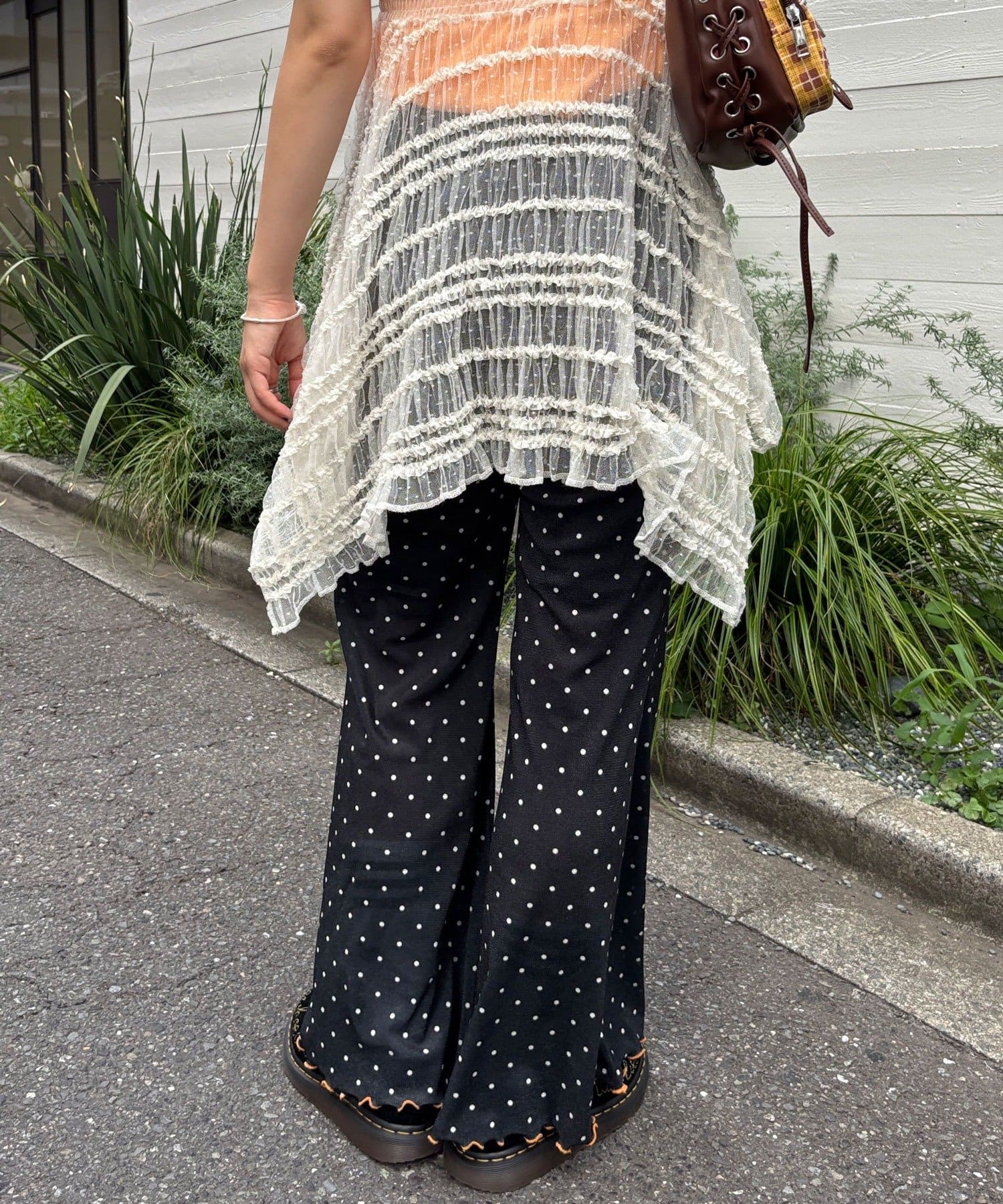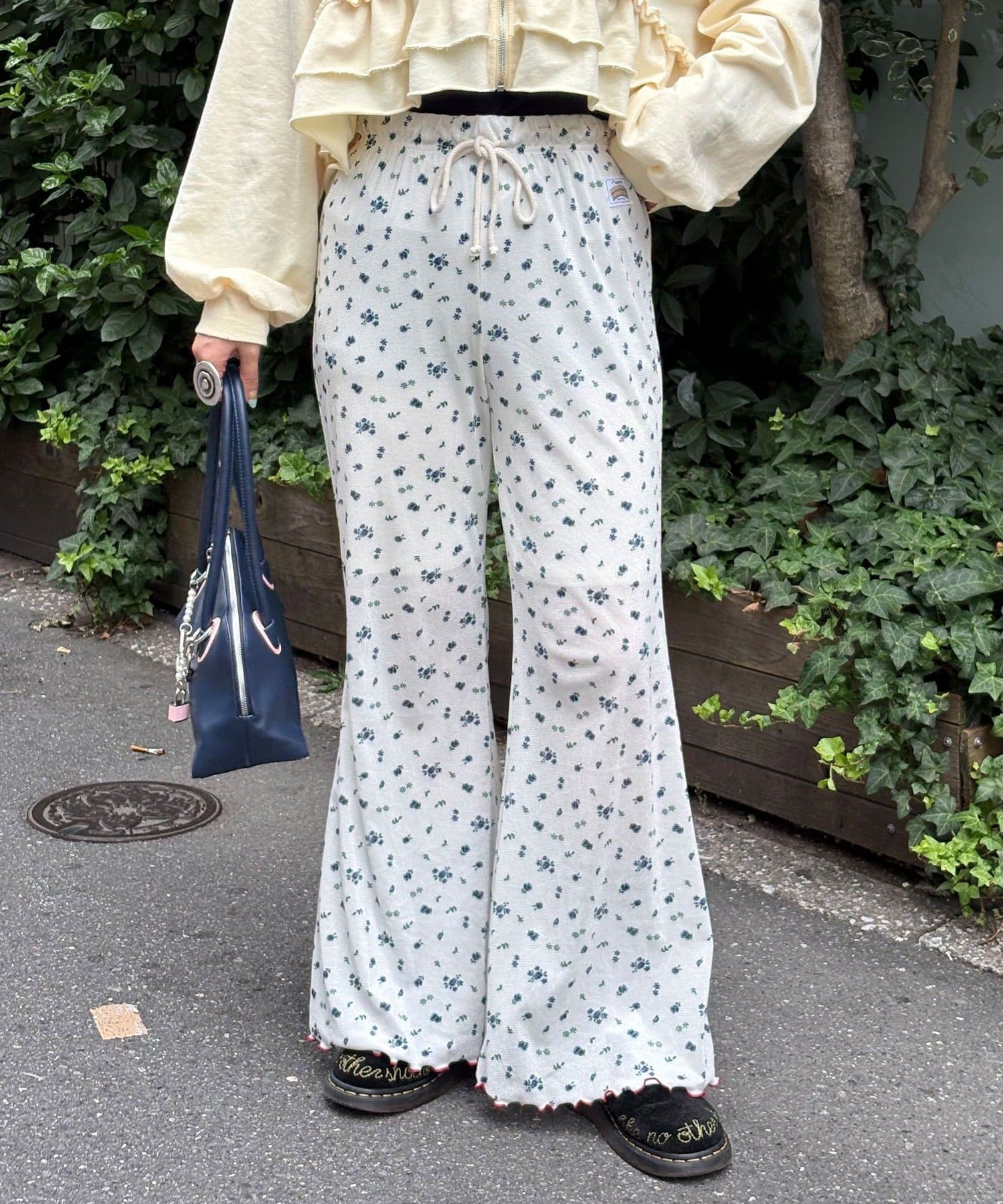 花柄とドット柄、2つの柄で選べるアソート展開のフレアパンツ。