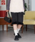 足元は厚底ローファーやブーツ、ルーズソックスを合わせて、トレンド感のあるカジュアルミックススタイルに。