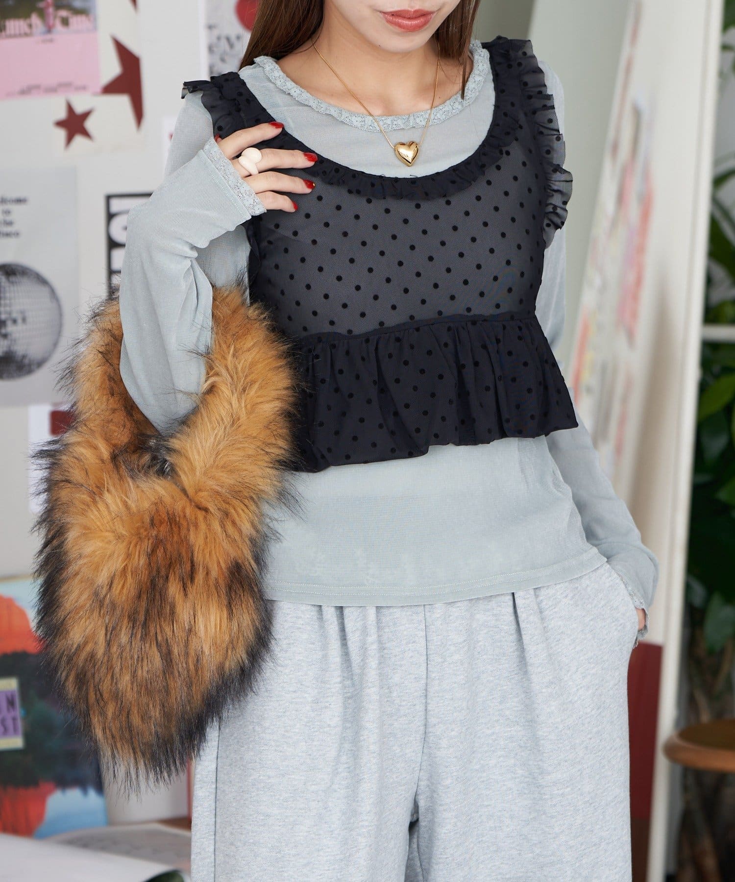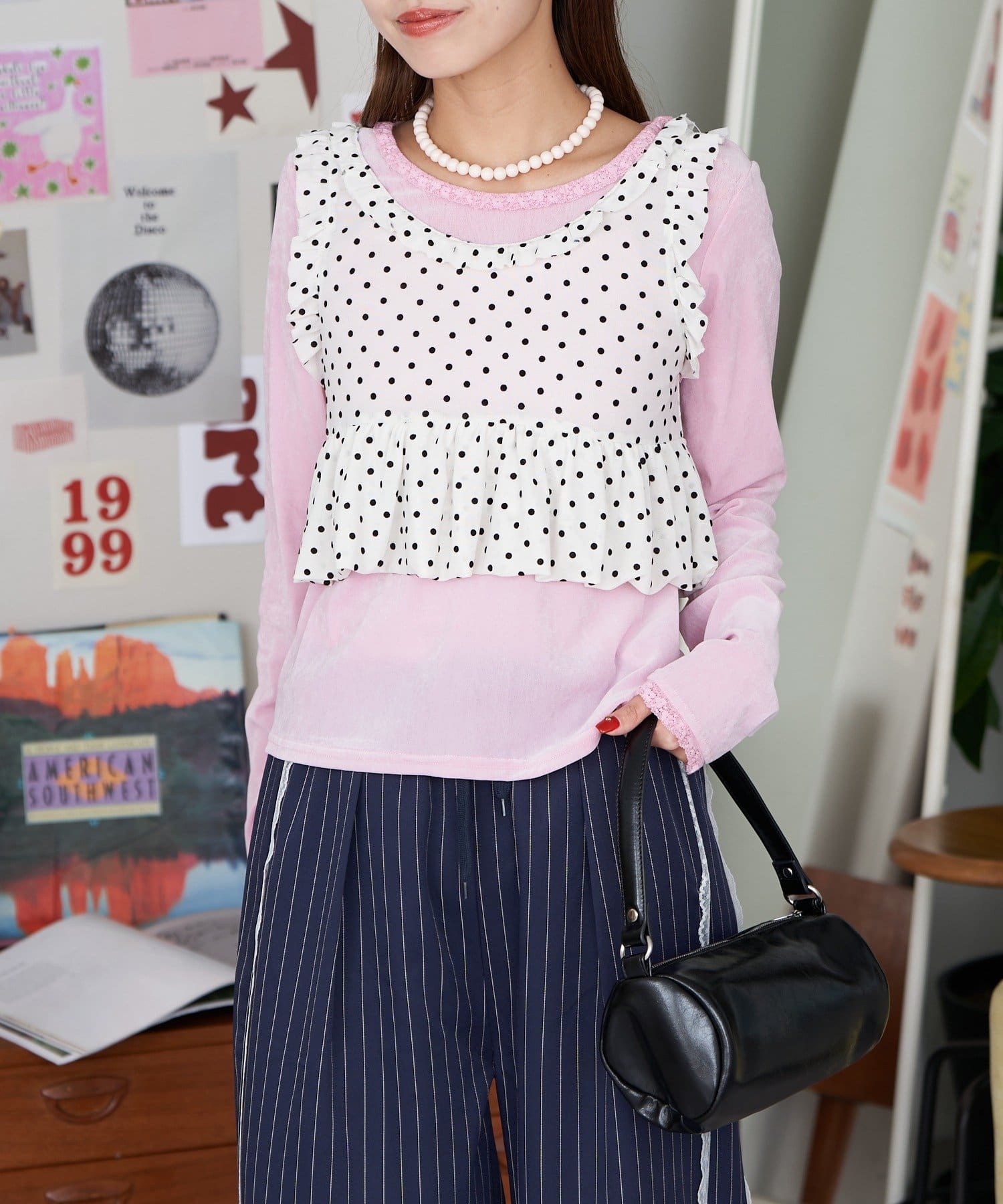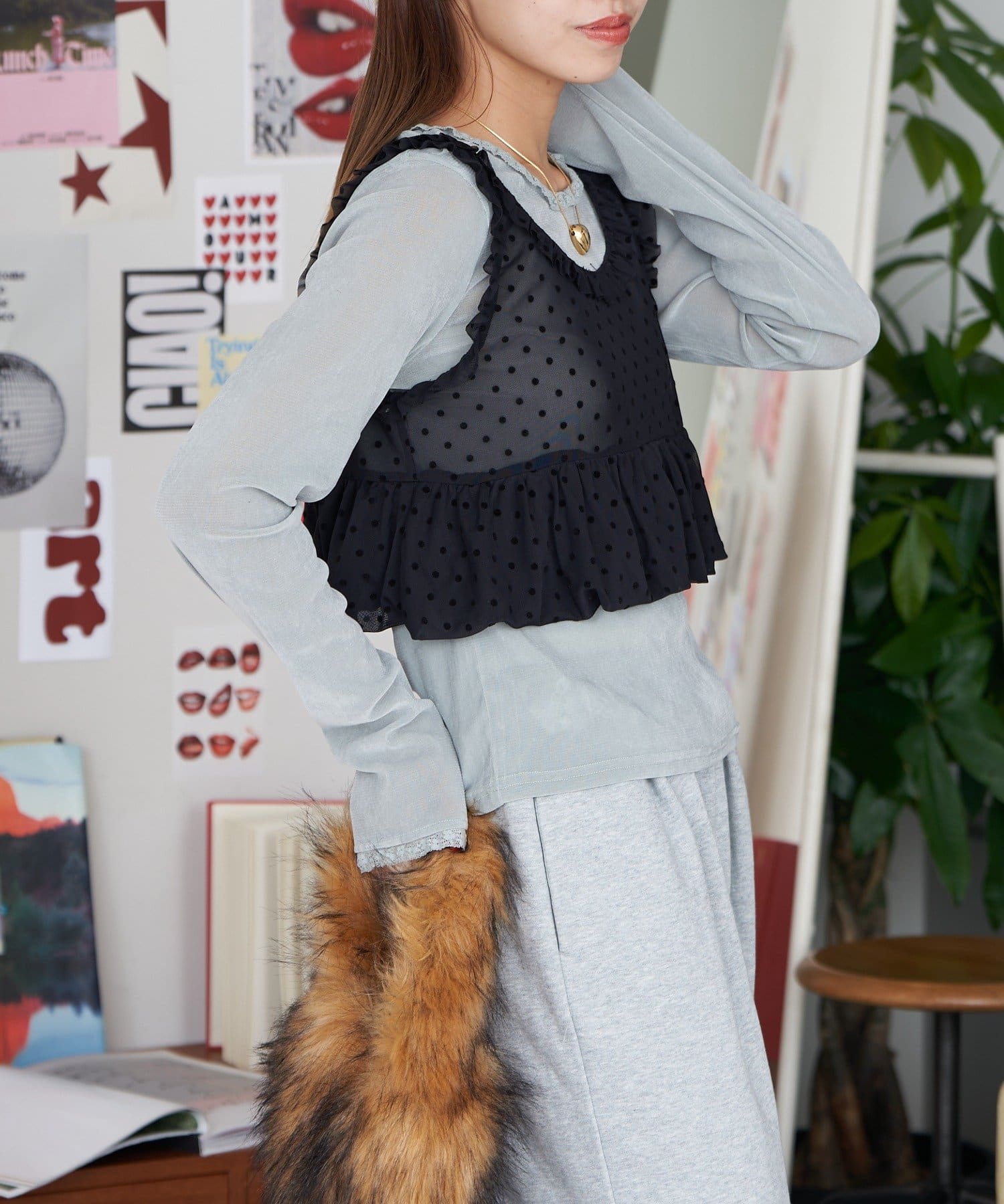 ドットチュールのビスチェがセットになったトレンド感たっぷりのカットソーです。