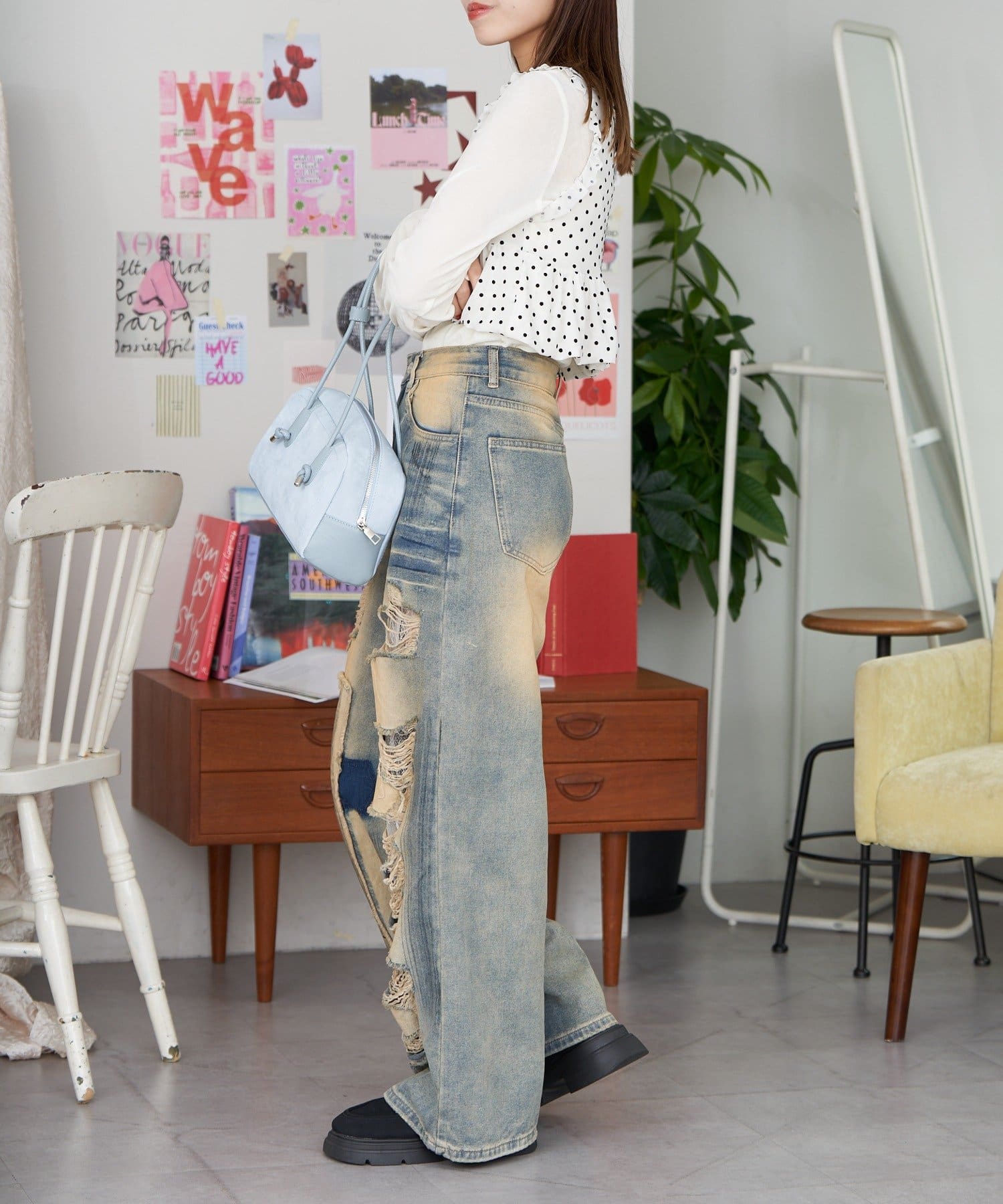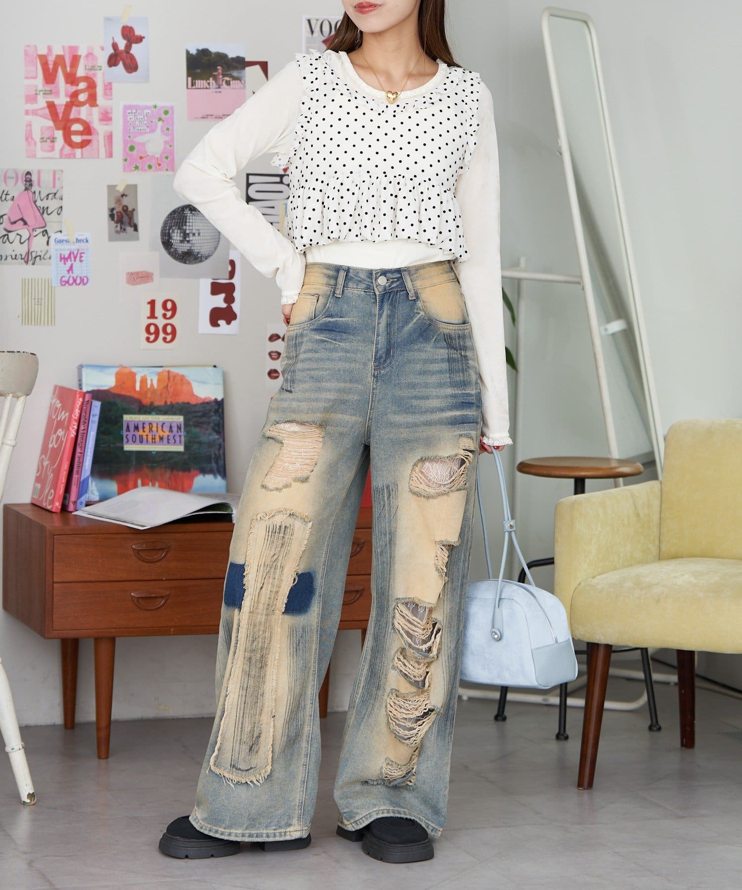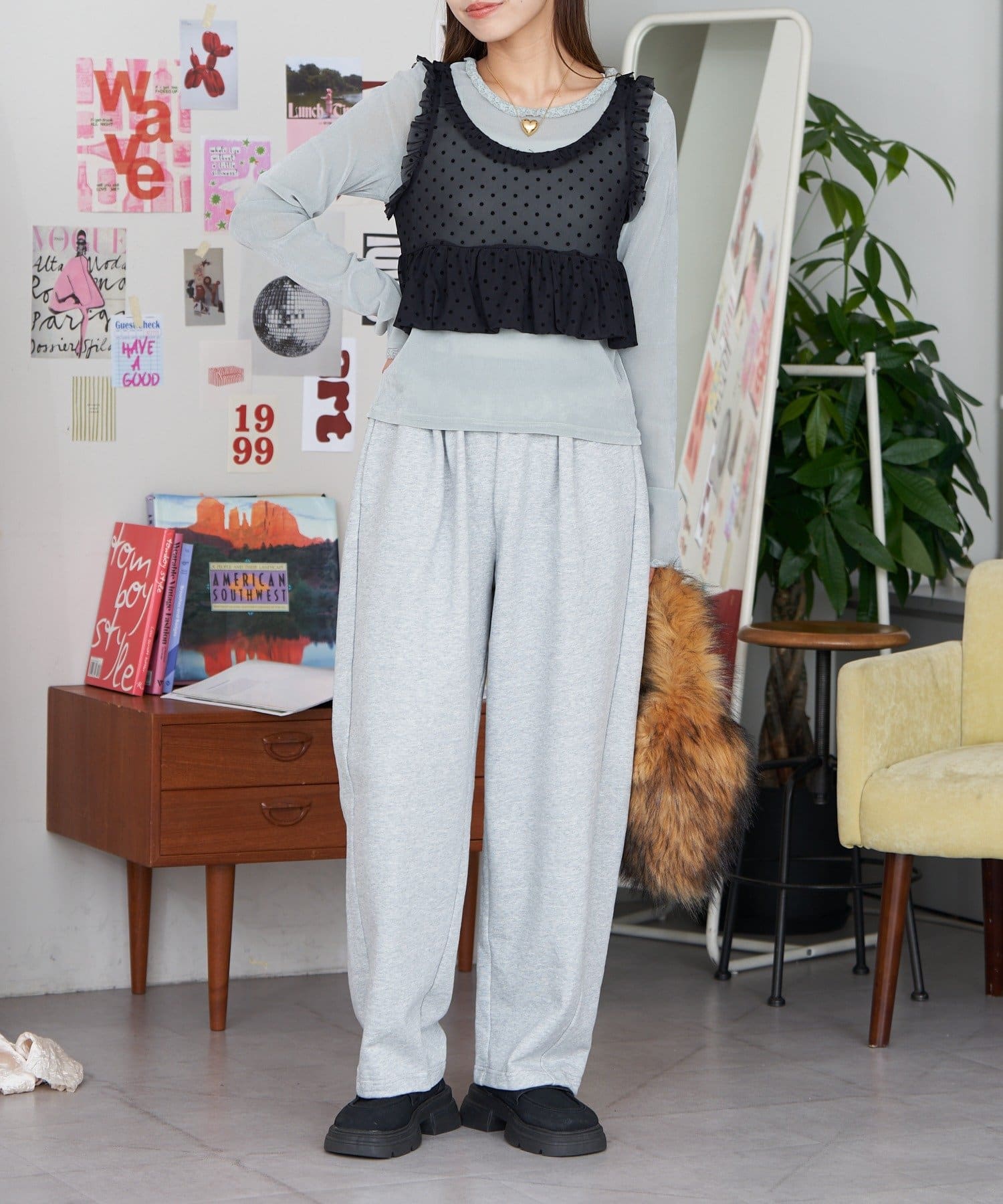ドットチュールのビスチェがセットになったトレンド感たっぷりのカットソーです。