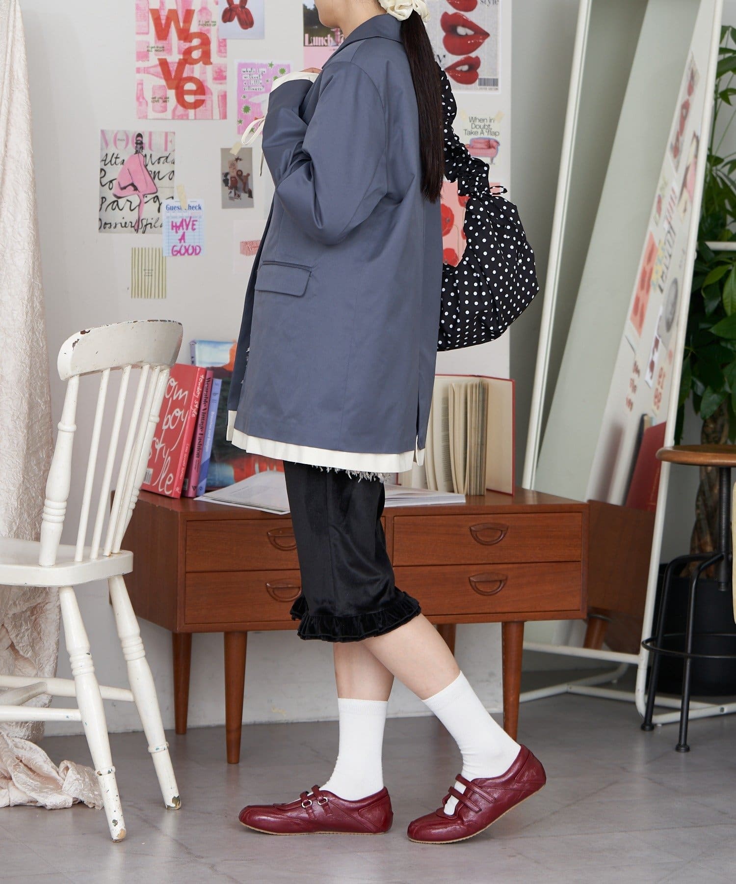 デニムやパンツと合わせて、甘さ控えめの大人カジュアルに。
