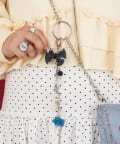 ハートのカラビナがアクセントになった、存在感たっぷりのリボンチャーム。