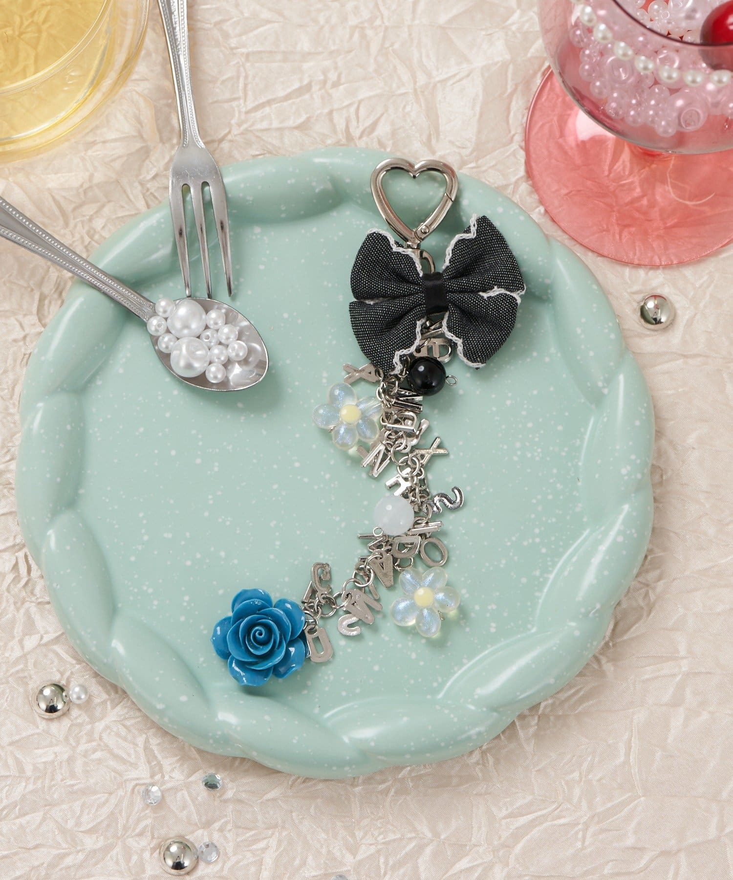 小文字アルファベットやお花、ローズなどのパーツがゆらゆら揺れて、どこから見てもかわいい仕上がりに!