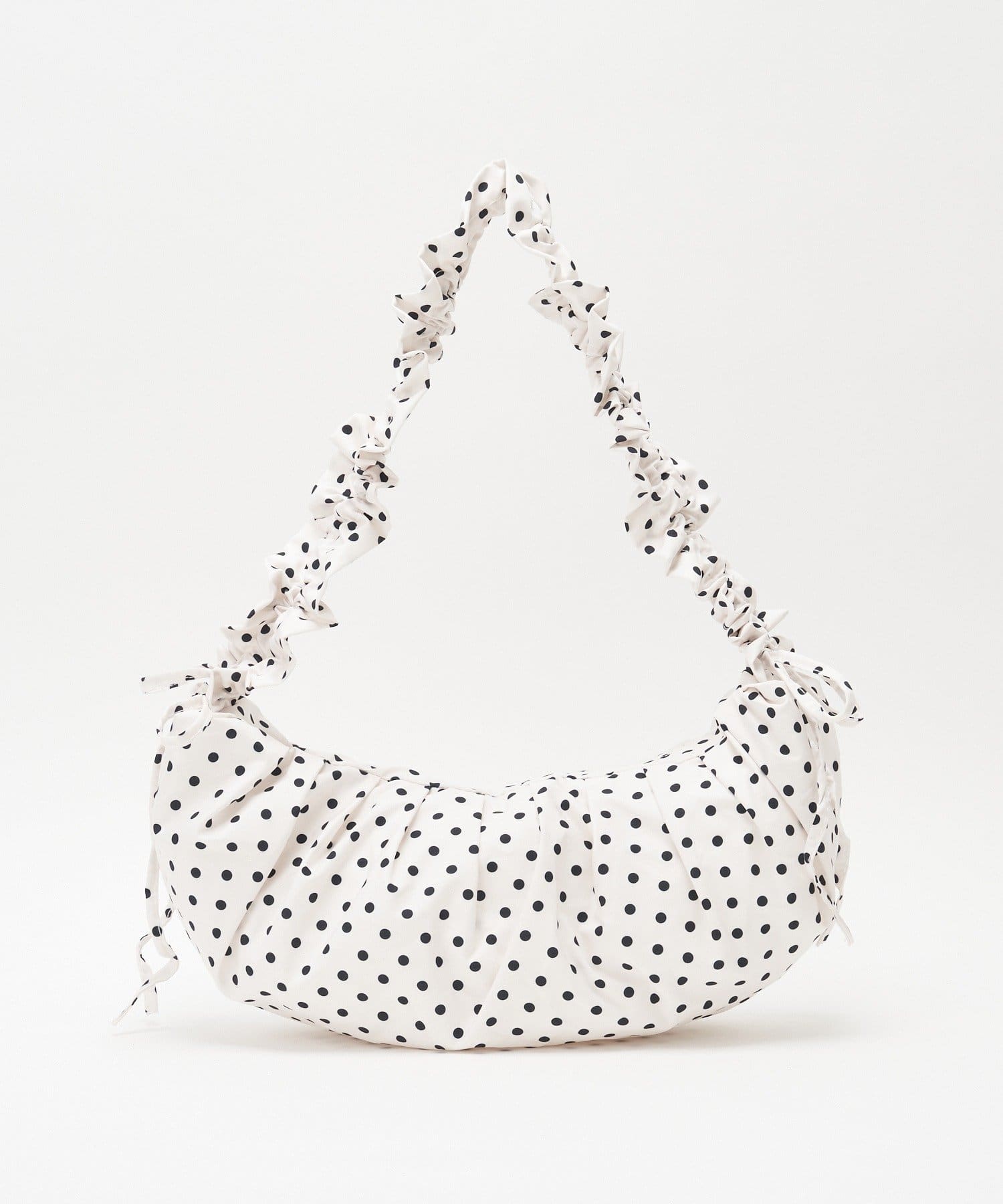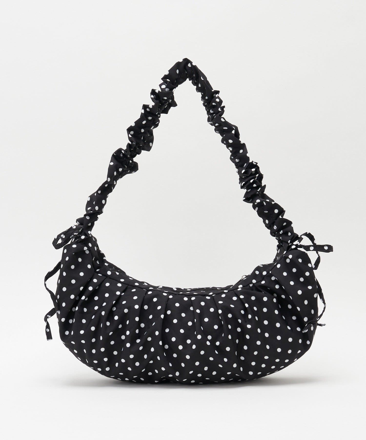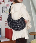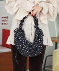 ギャザー入りでふんわりかわいいドット柄の2WAYバッグ。