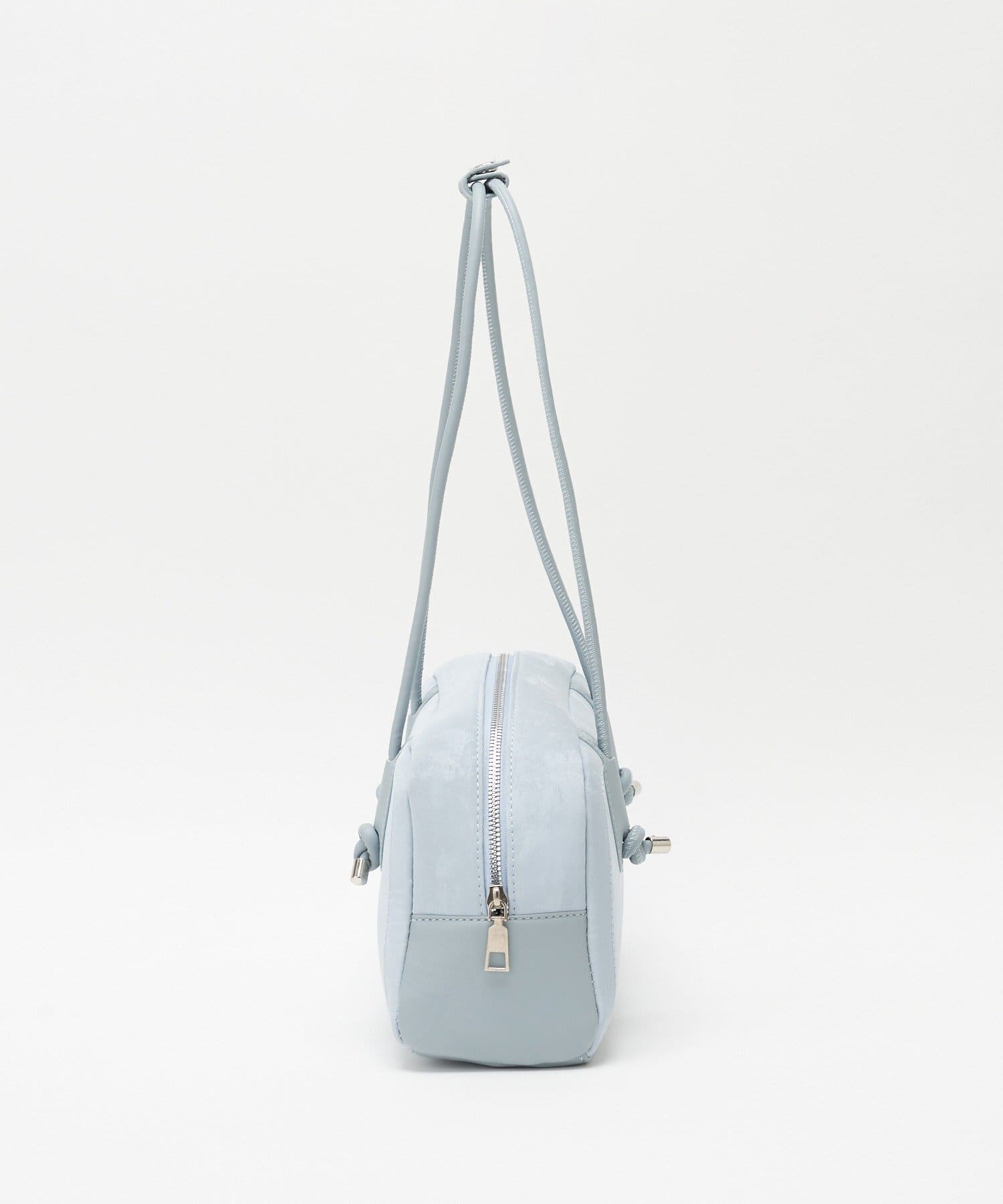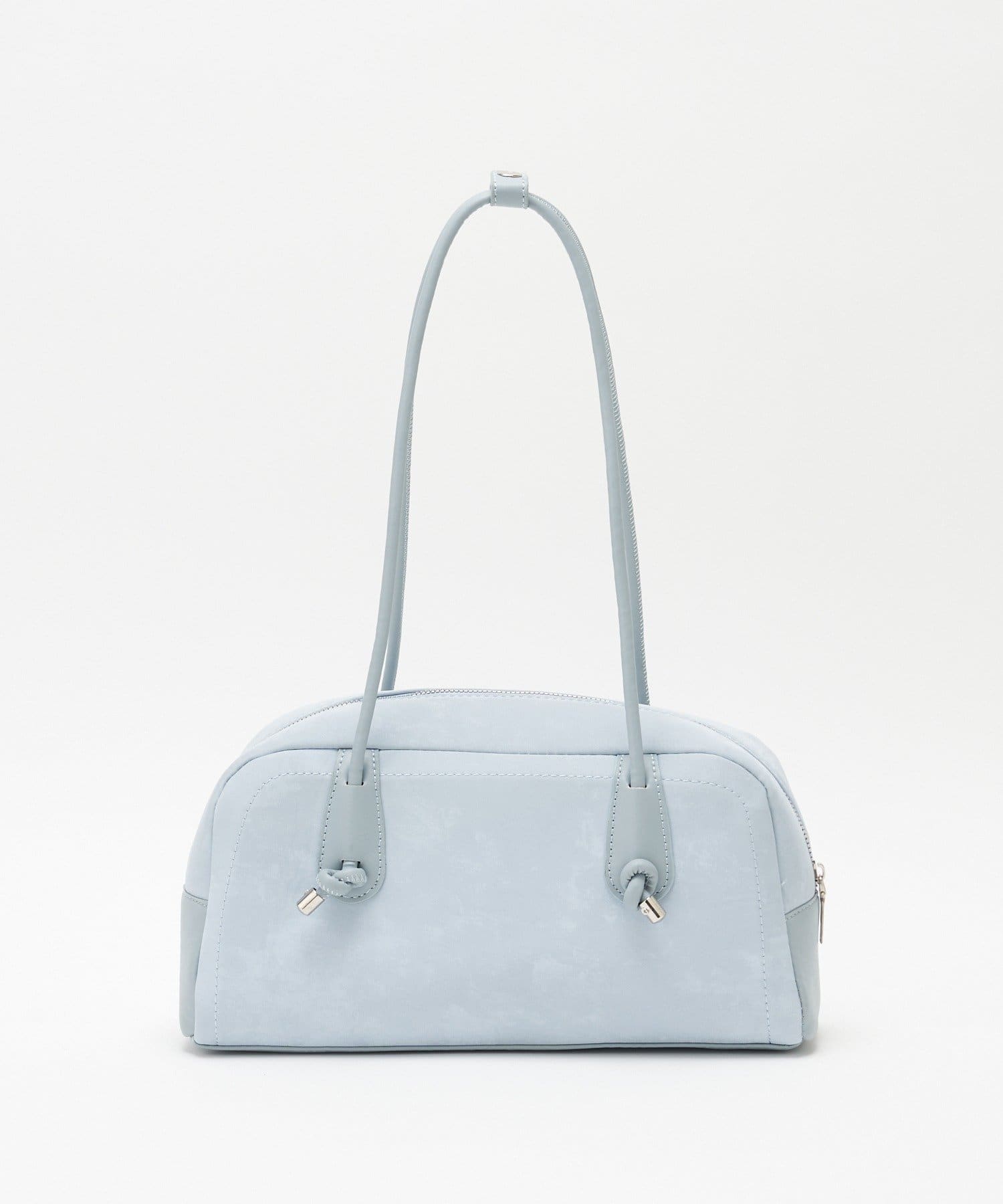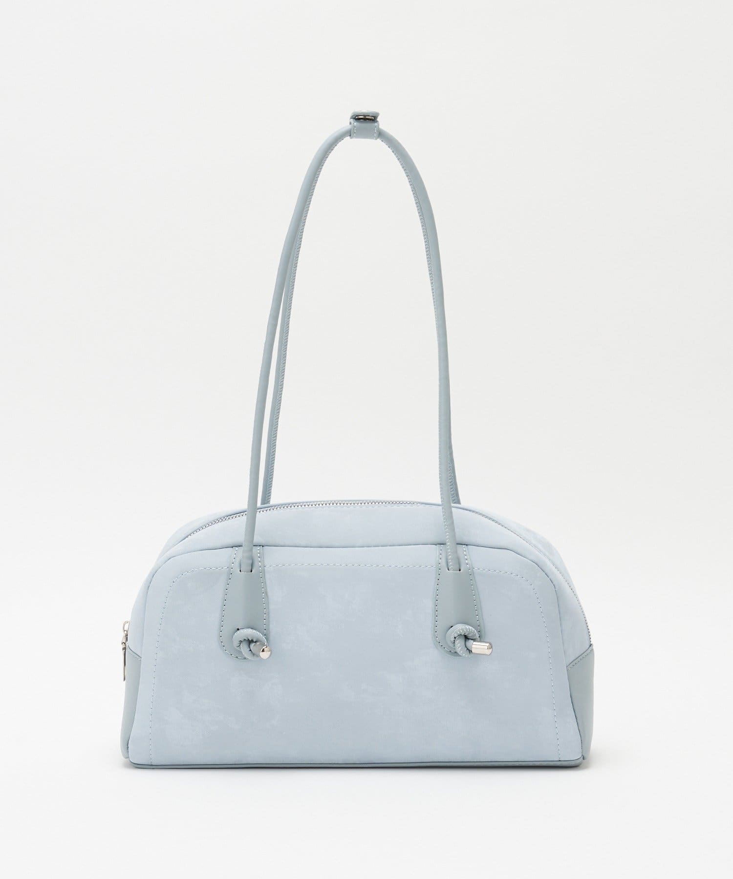 淡いパステルブルーとスウェード調マット素材で、品のある印象に。