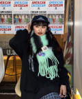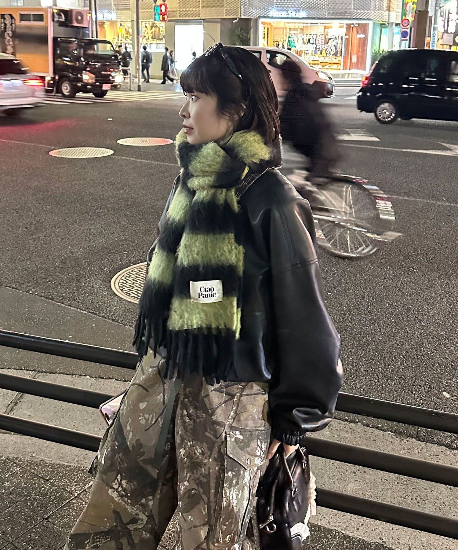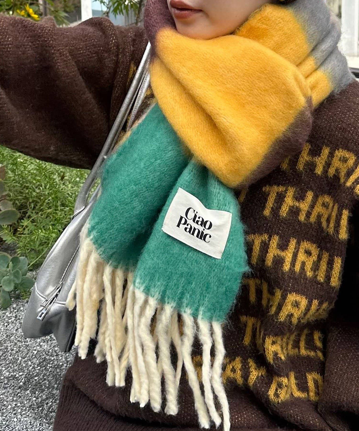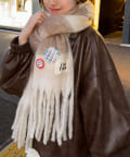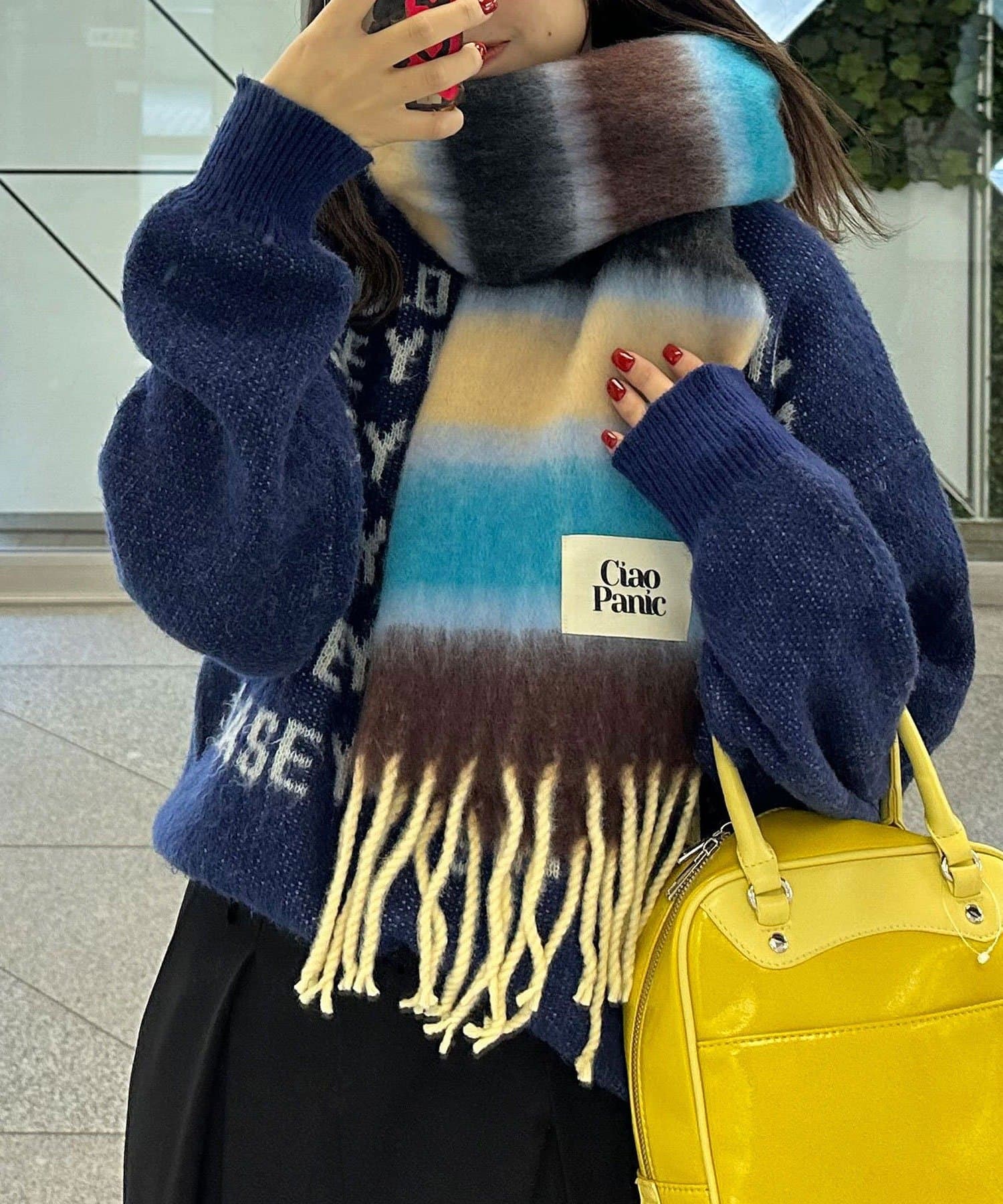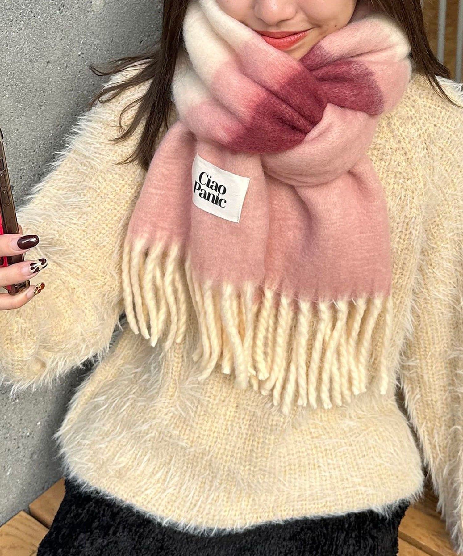 軽さと保温性を兼ね備えたシャギー素材のオーバーマフラーは、肌触りが良く防寒性もバッチリ。
