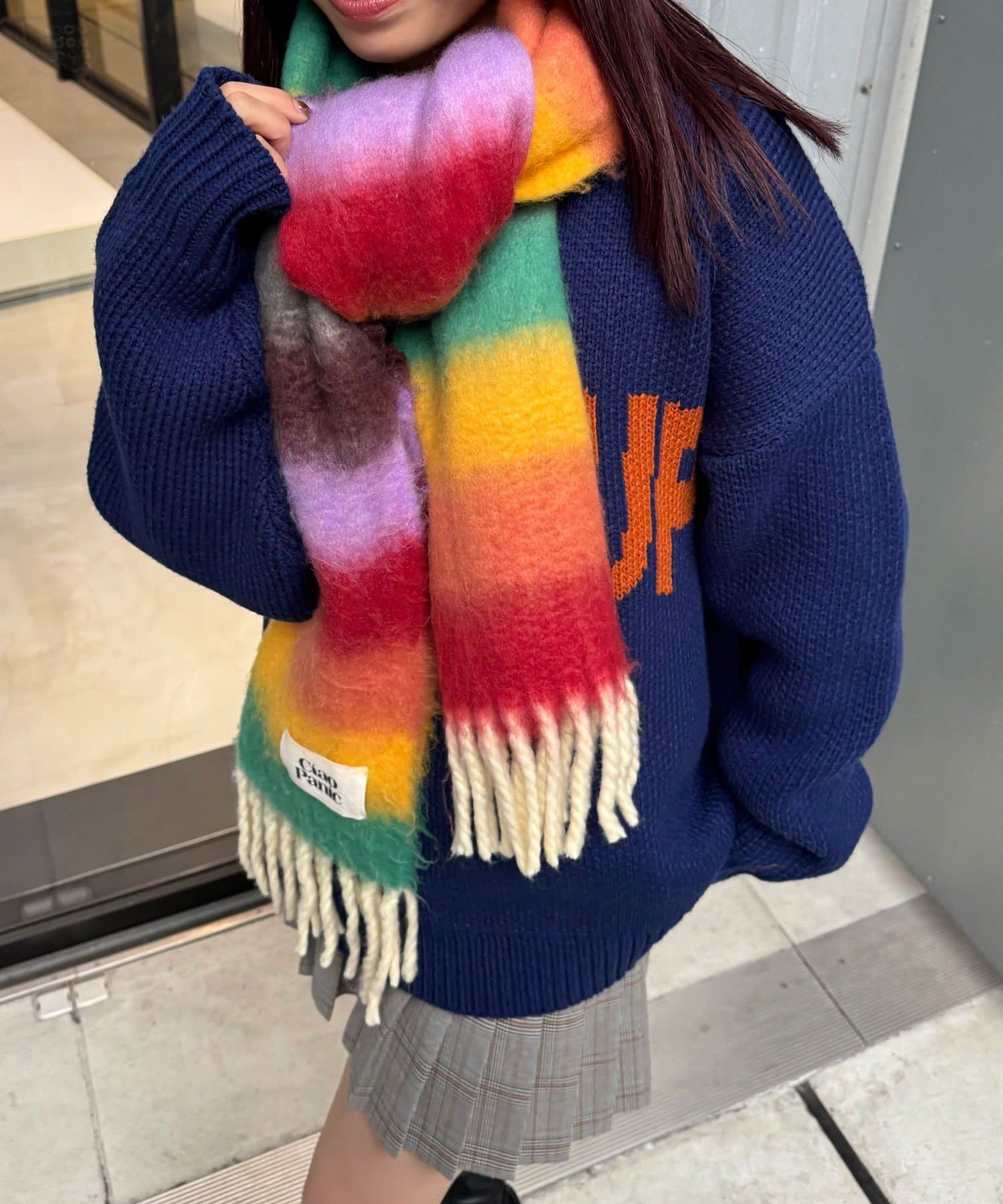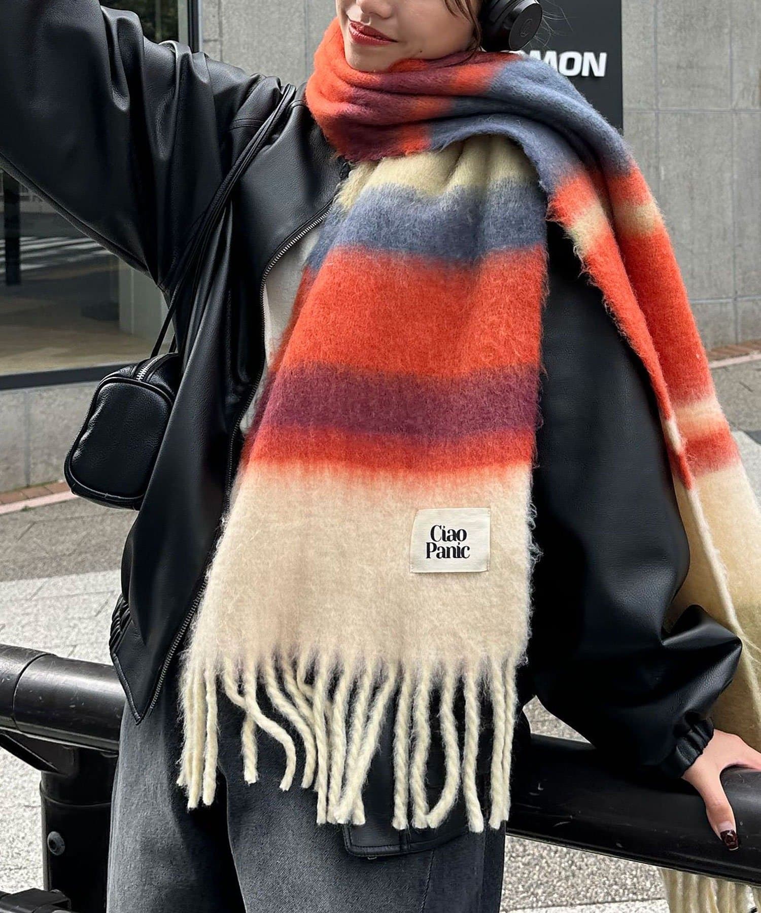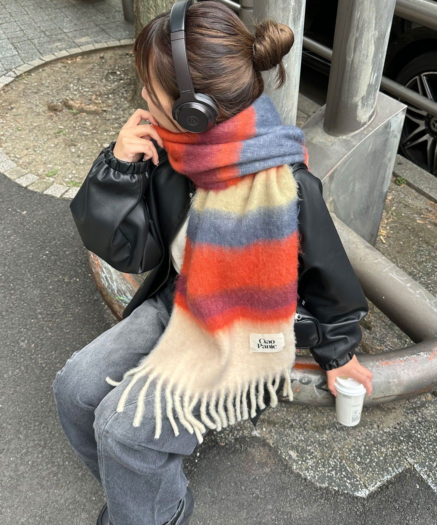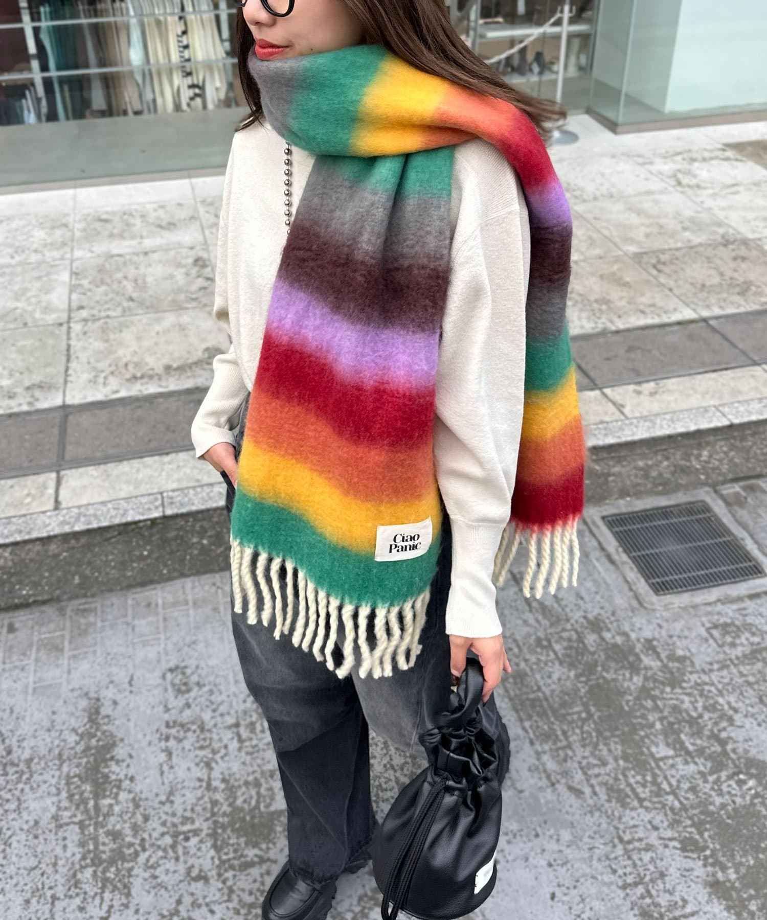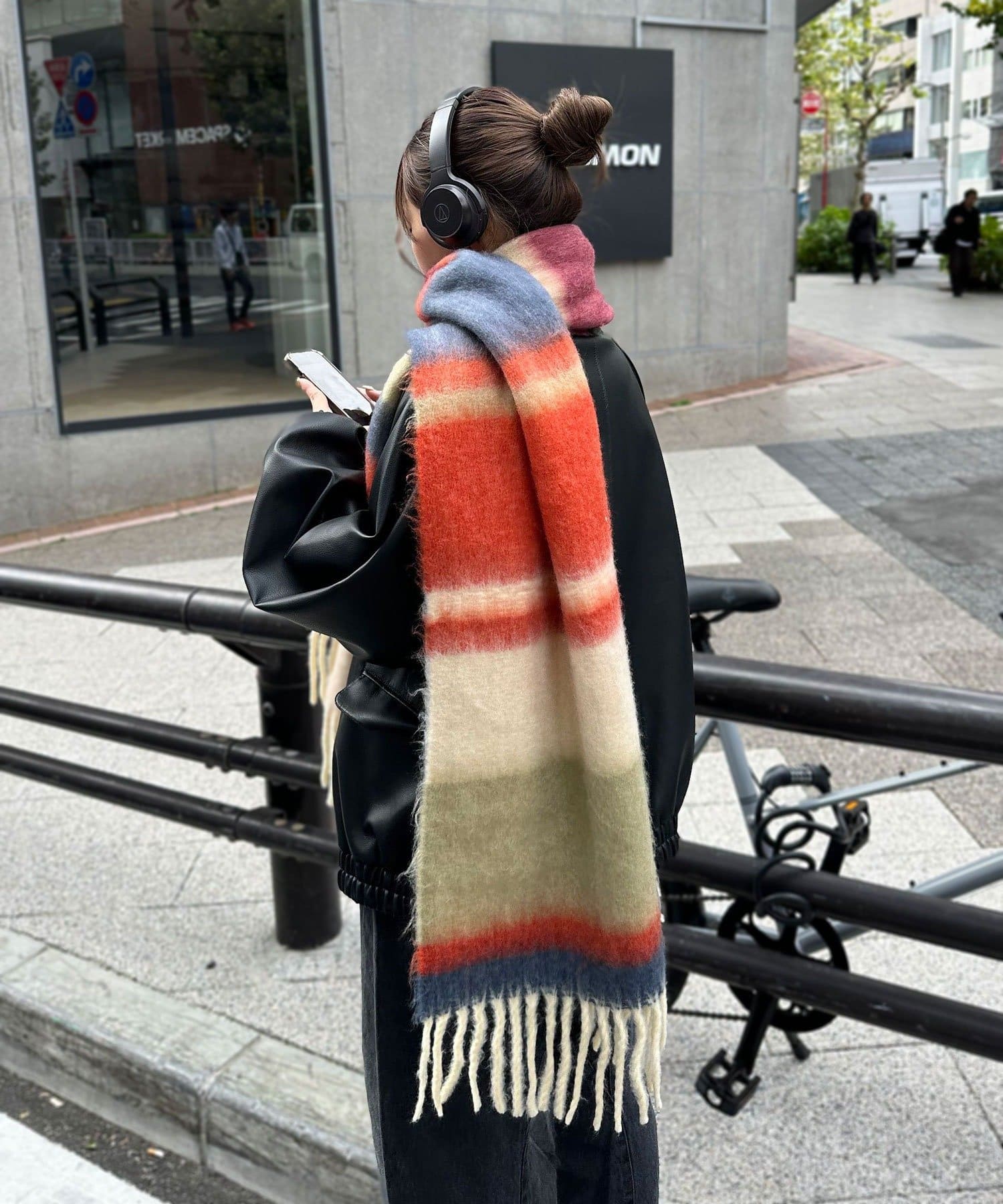 カラフルで存在感抜群のマルチボーダーマフラー。