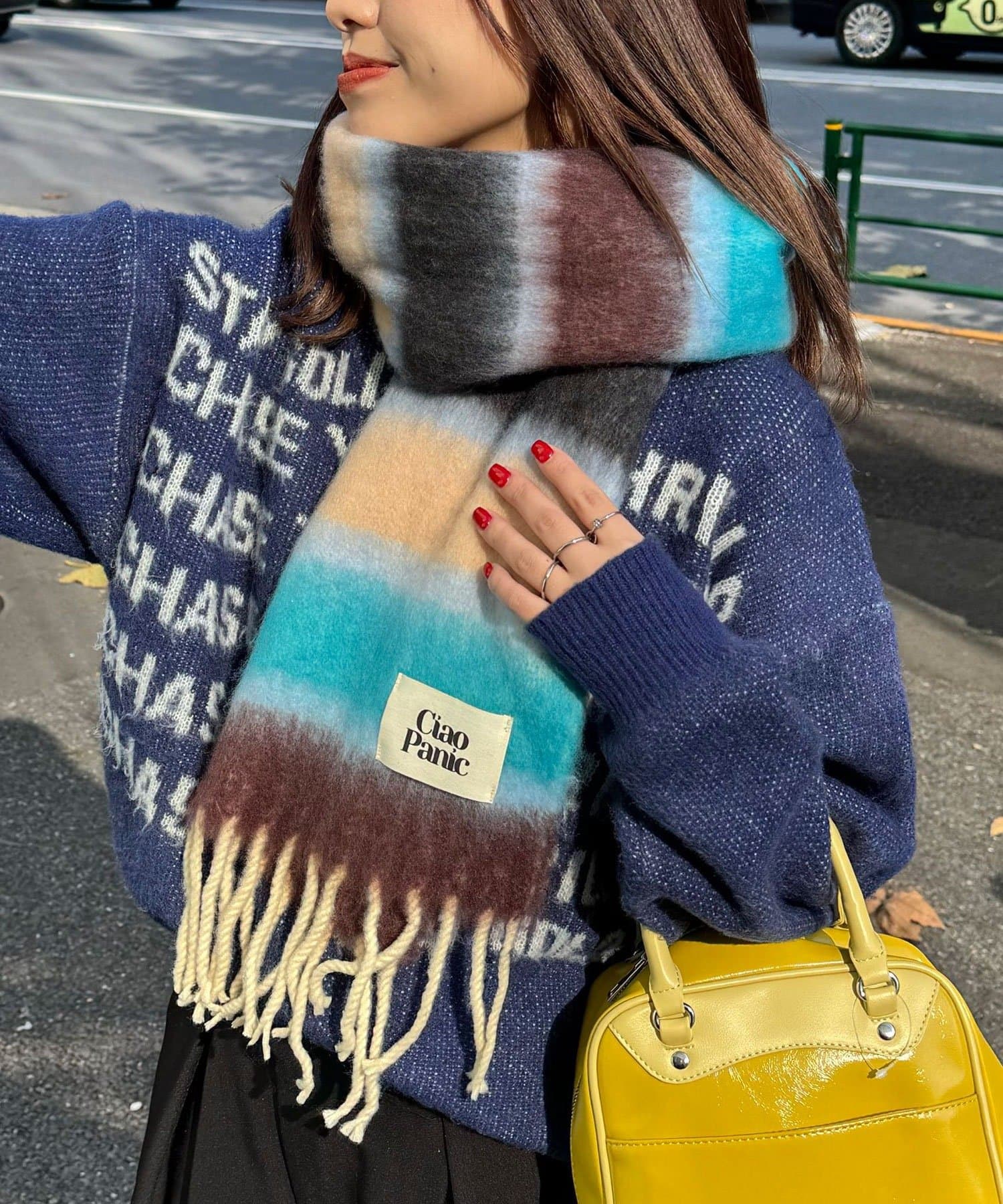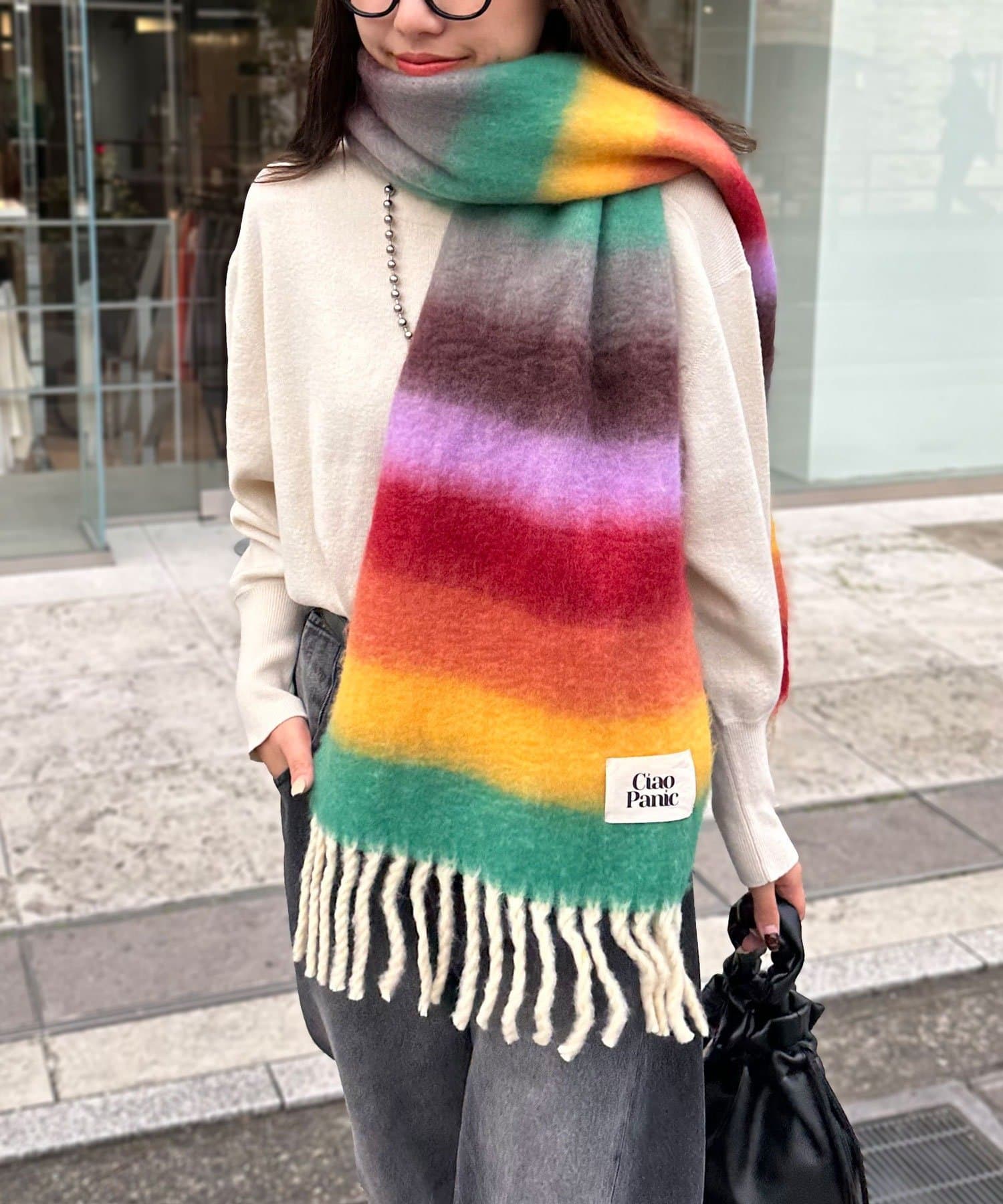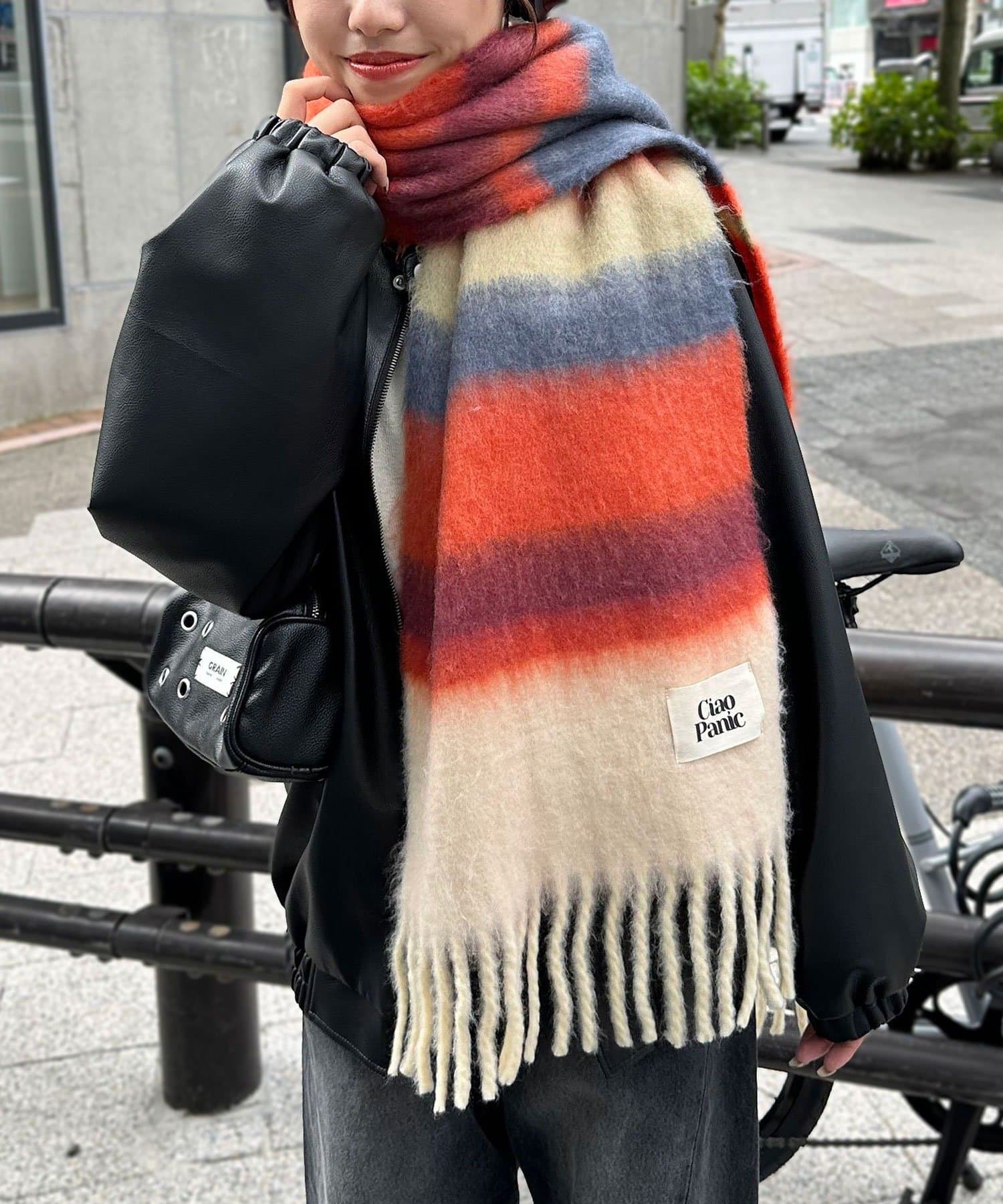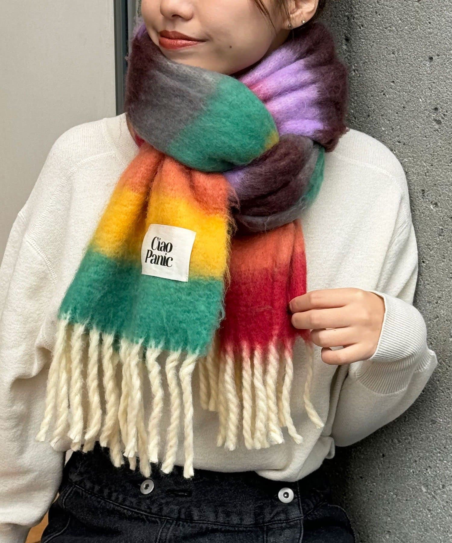 カラフルで存在感抜群のマルチボーダーマフラー。