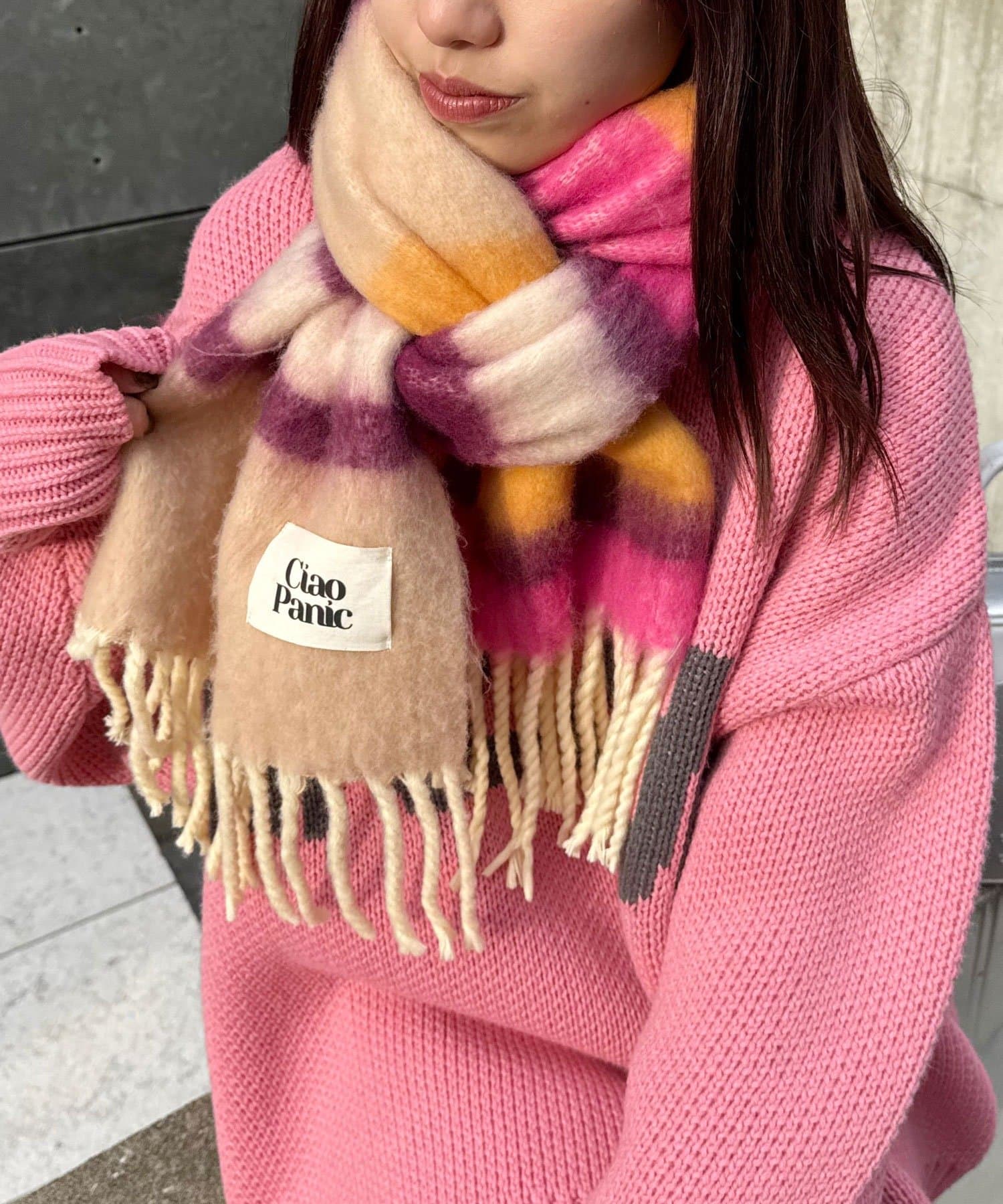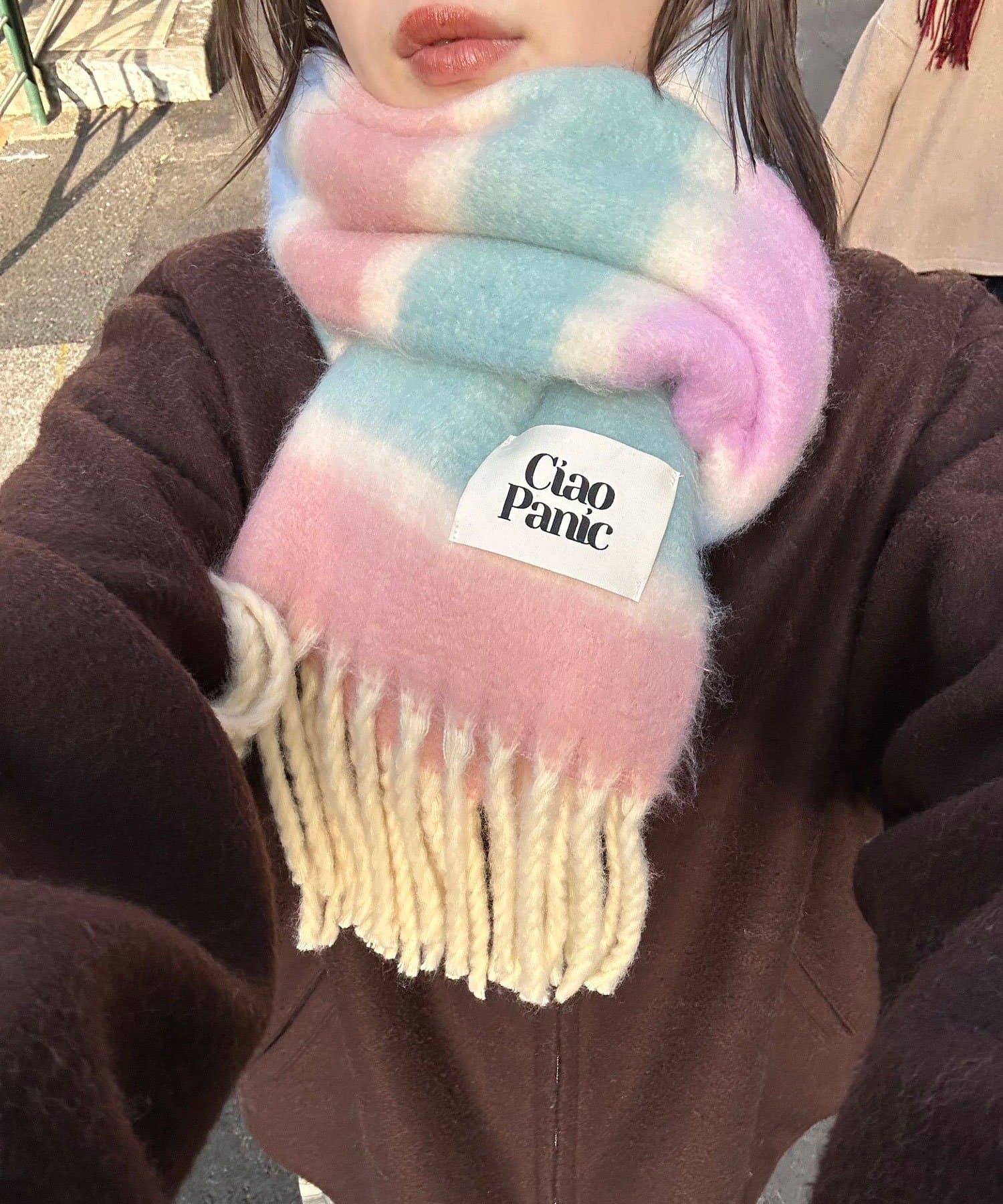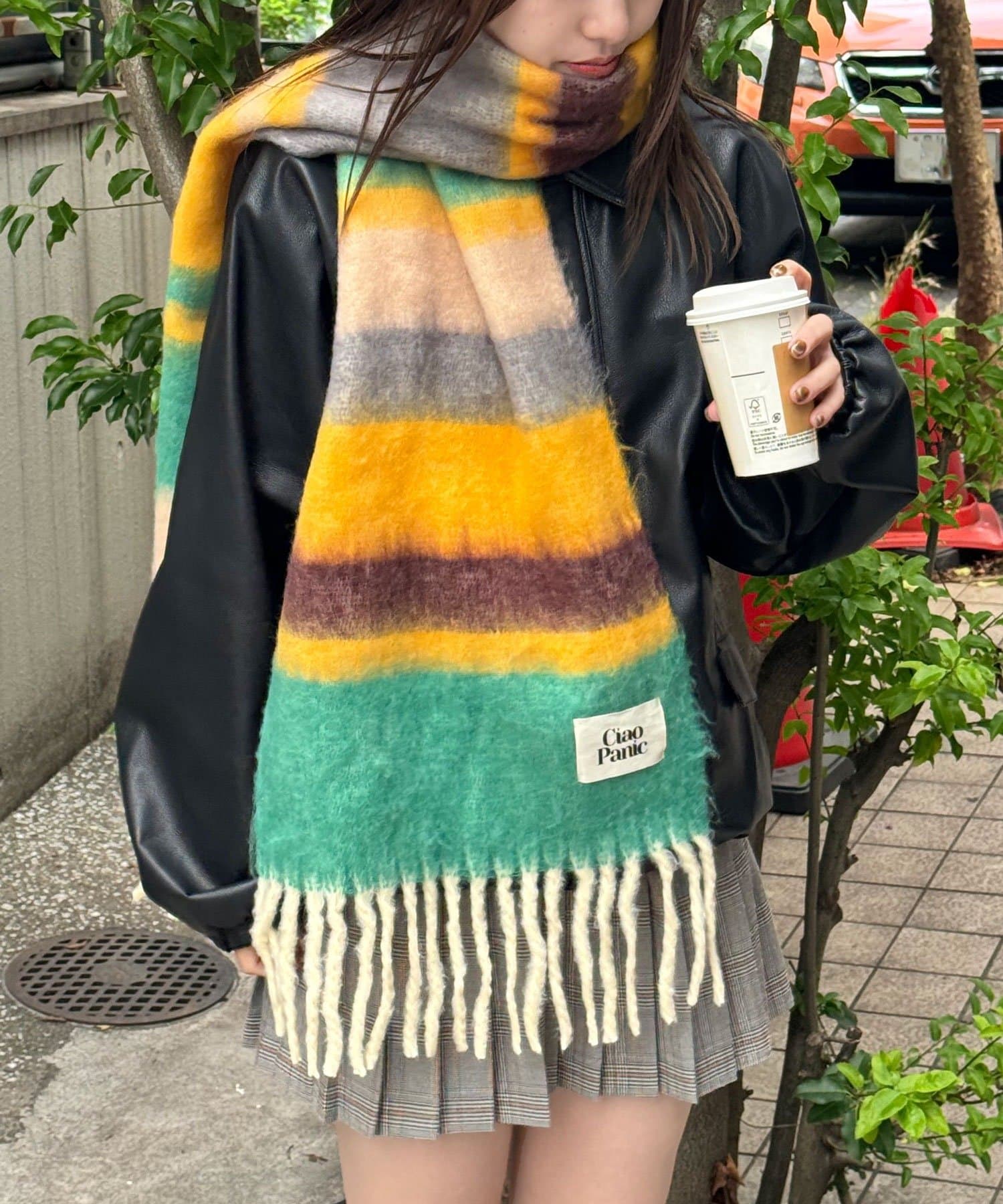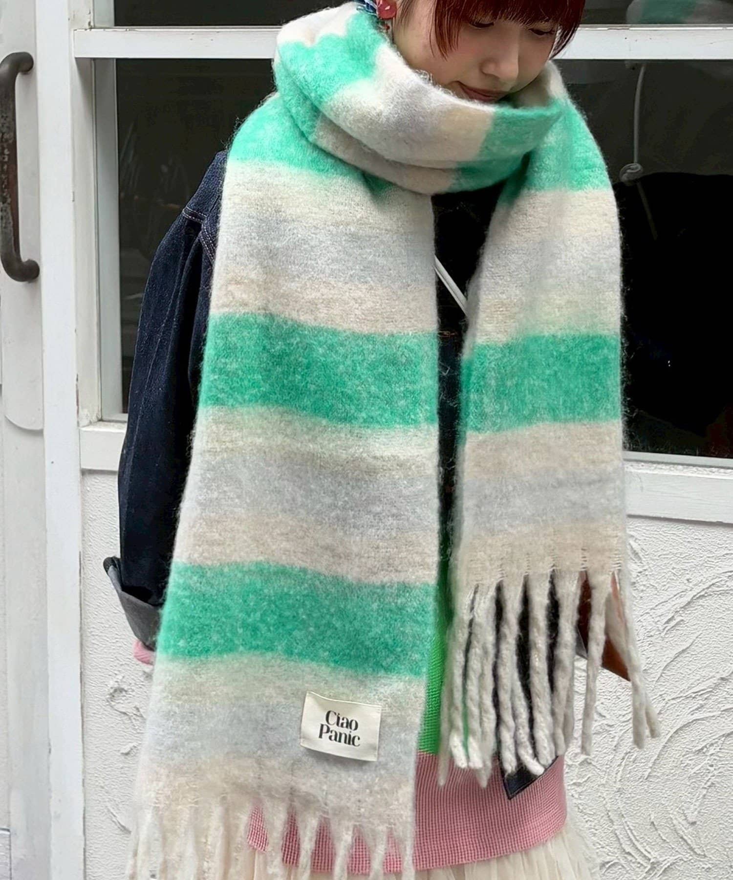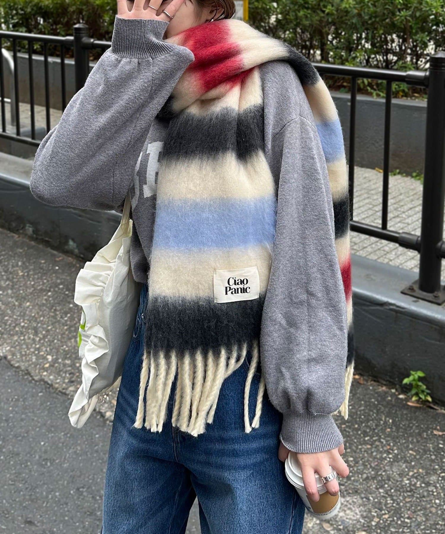 カラフルで存在感抜群のマルチボーダーマフラー。