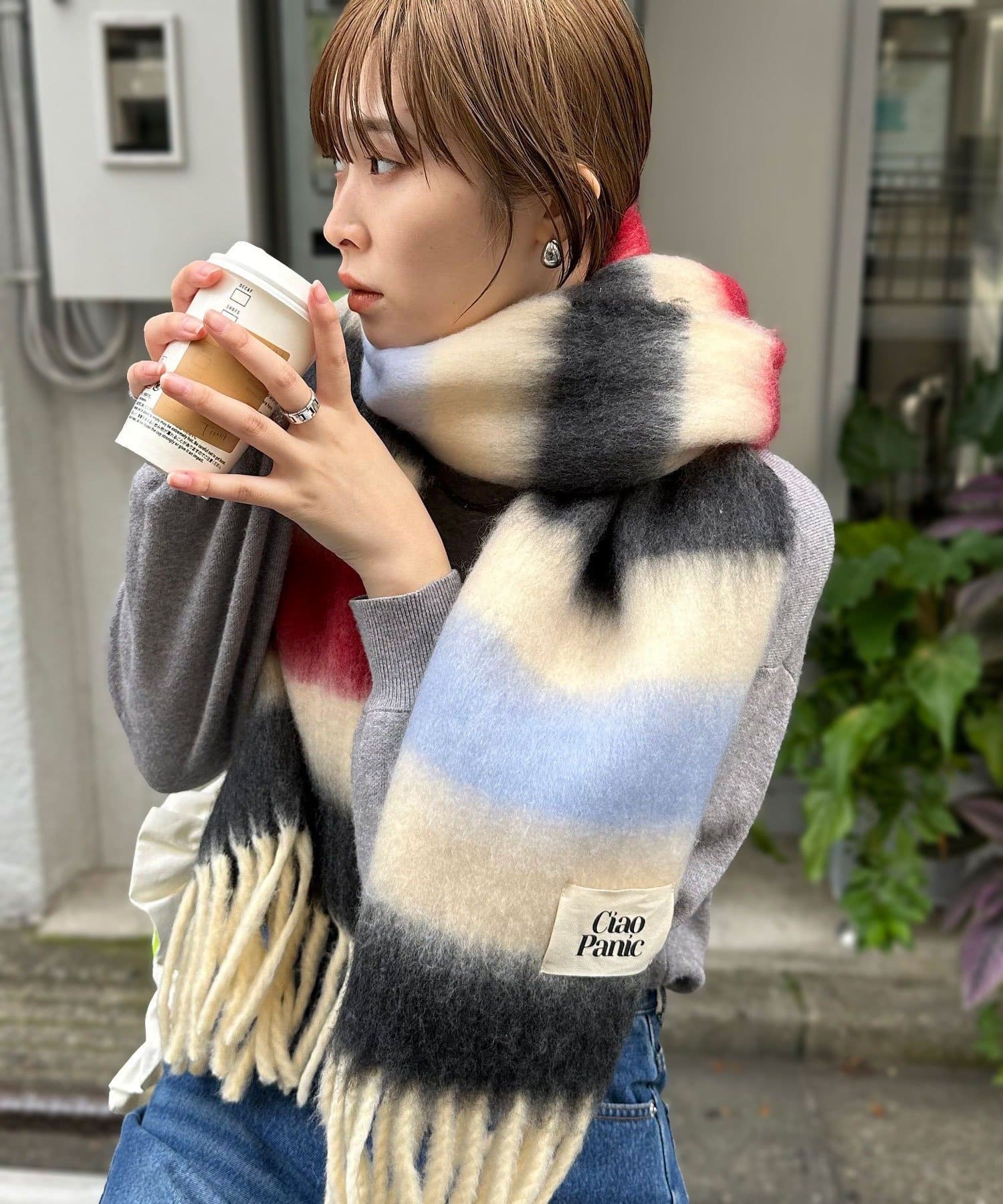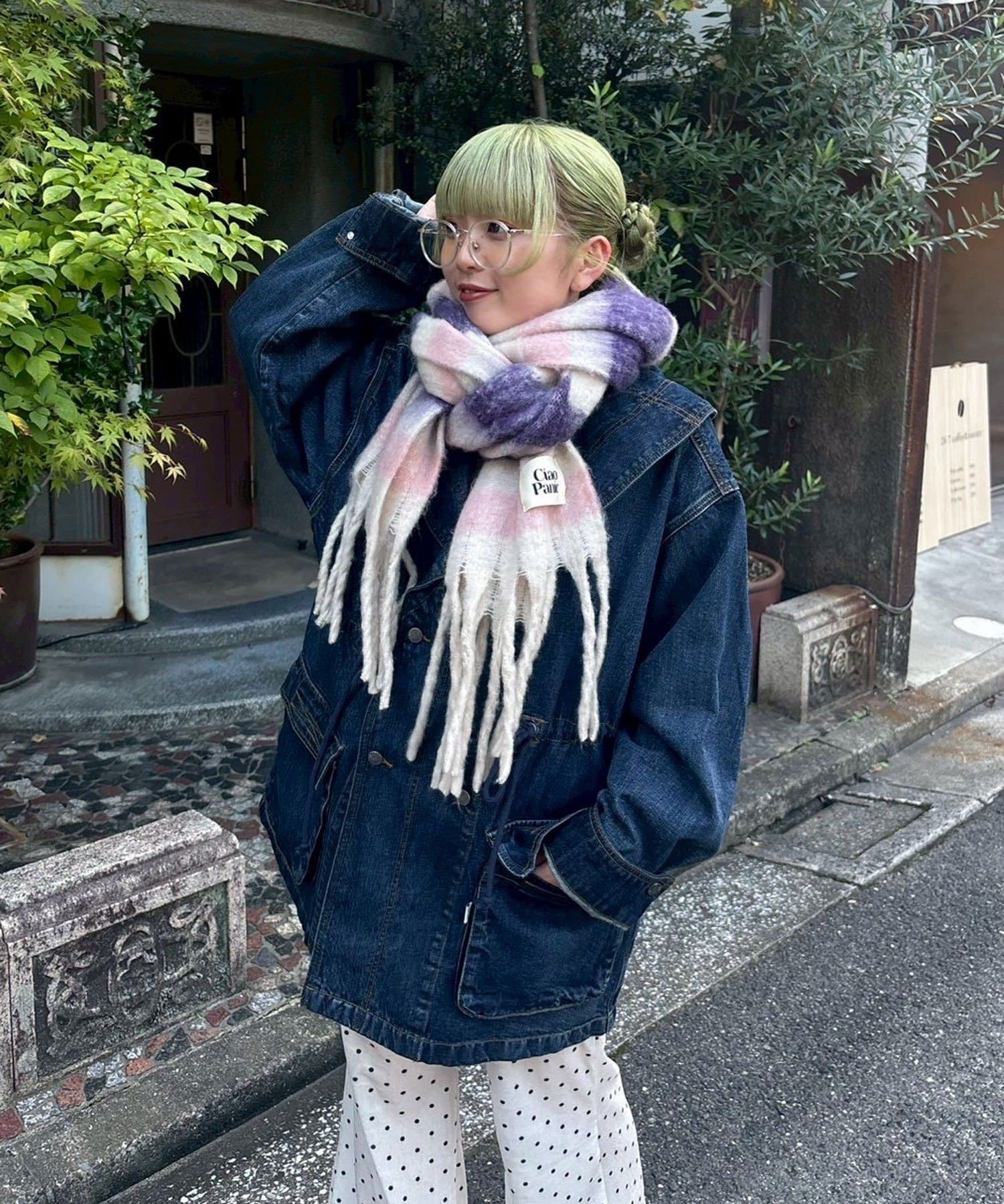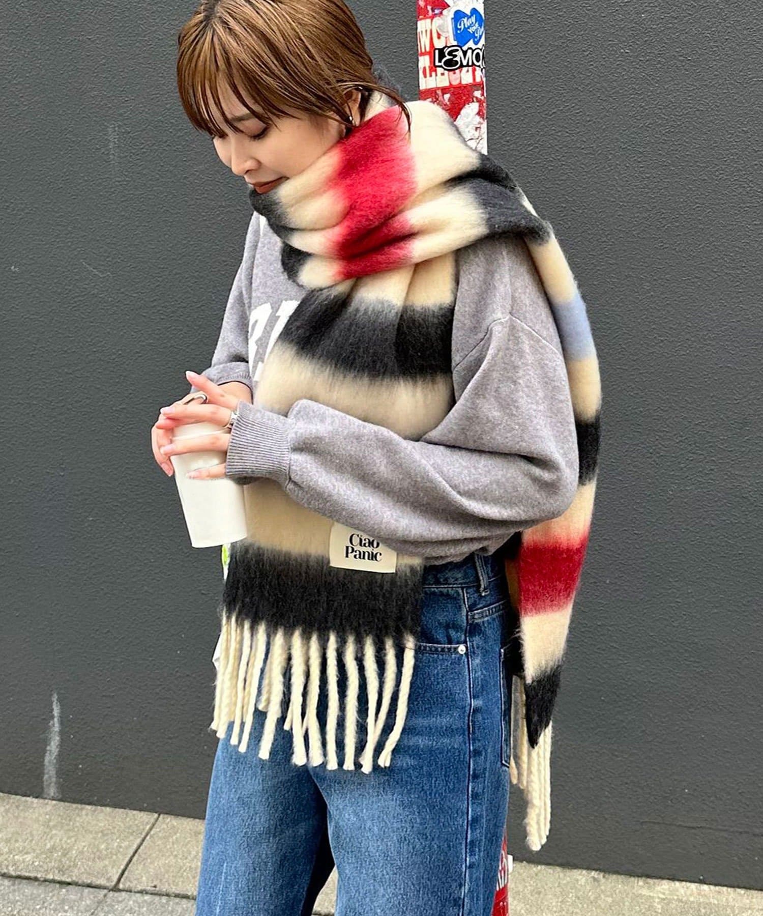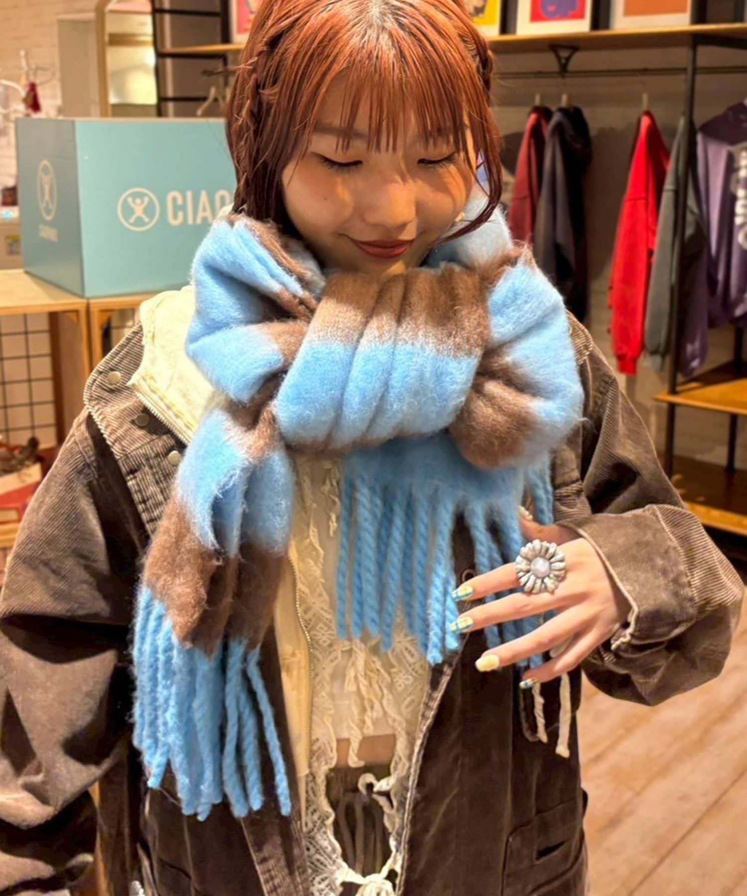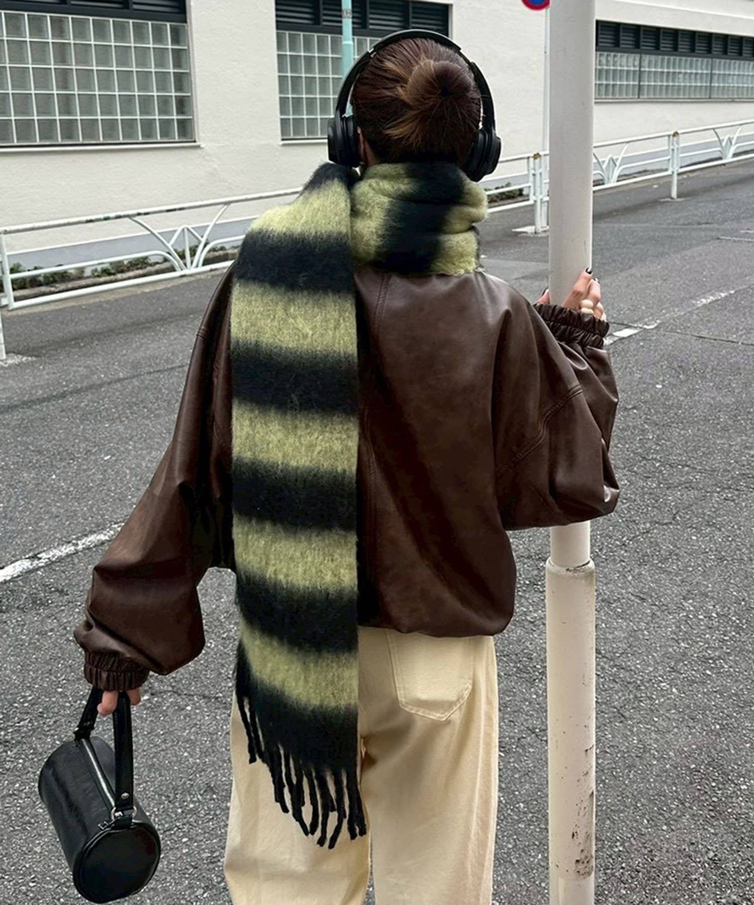 ボリューム感のある大判なマフラーなので巻き方のアレンジが楽しめます◎