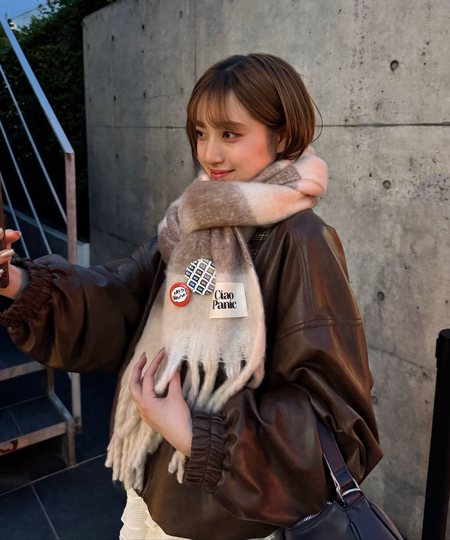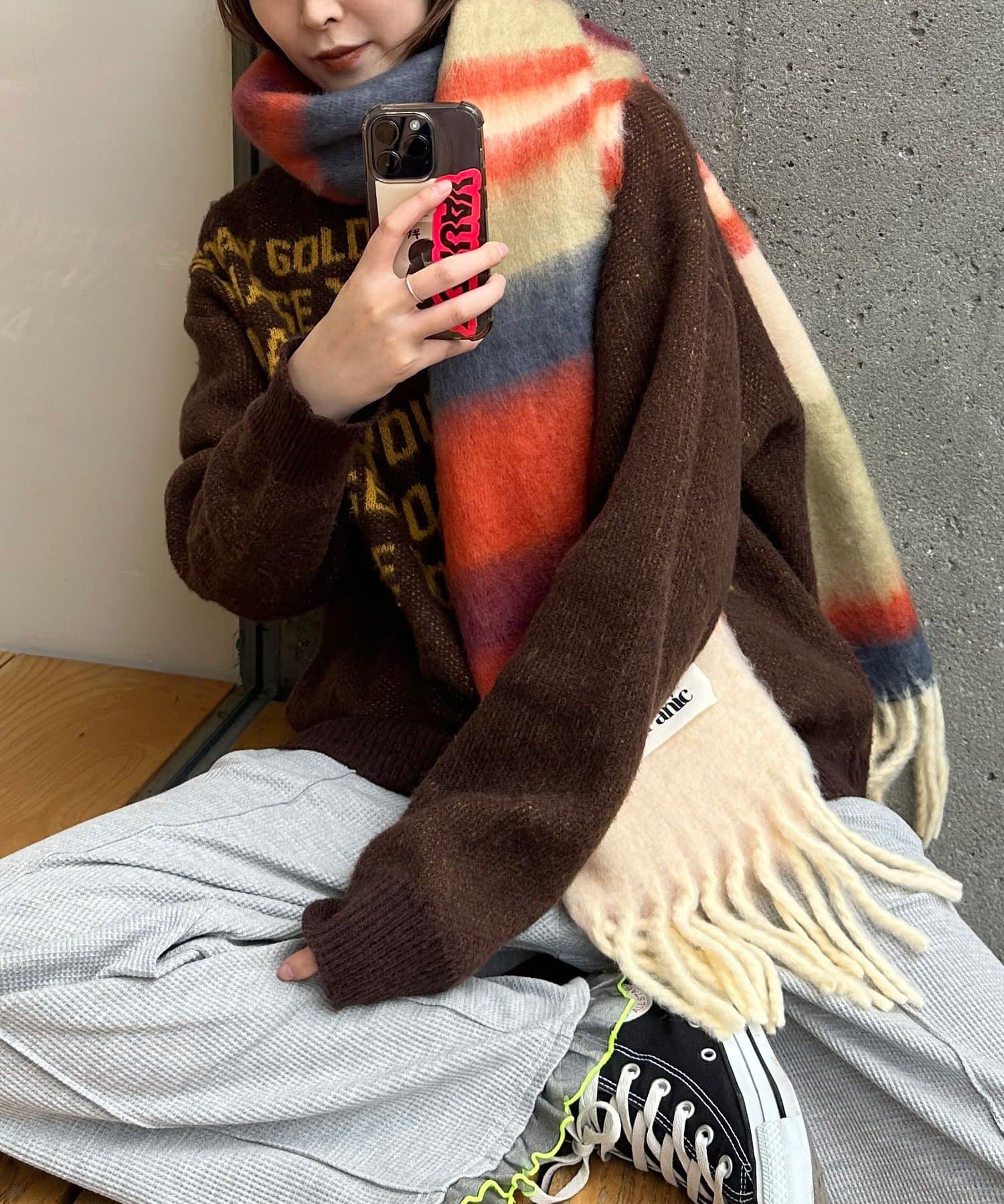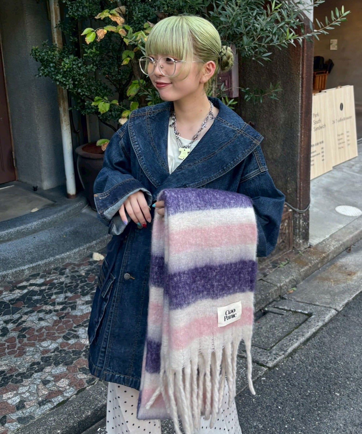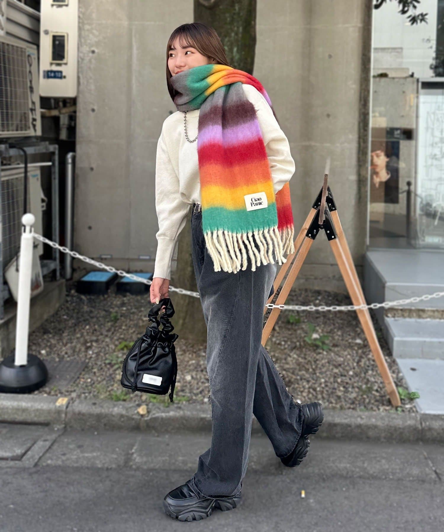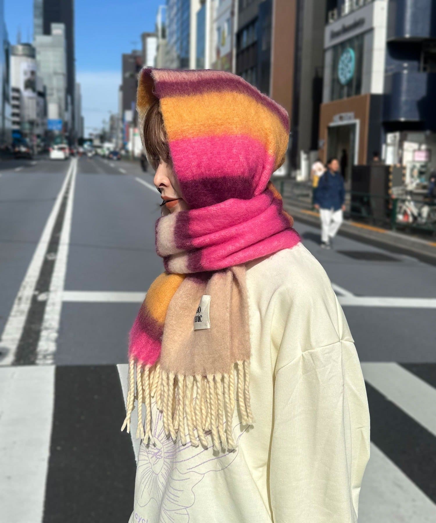 ボリューム感のある大判なマフラーなので巻き方のアレンジが楽しめます◎