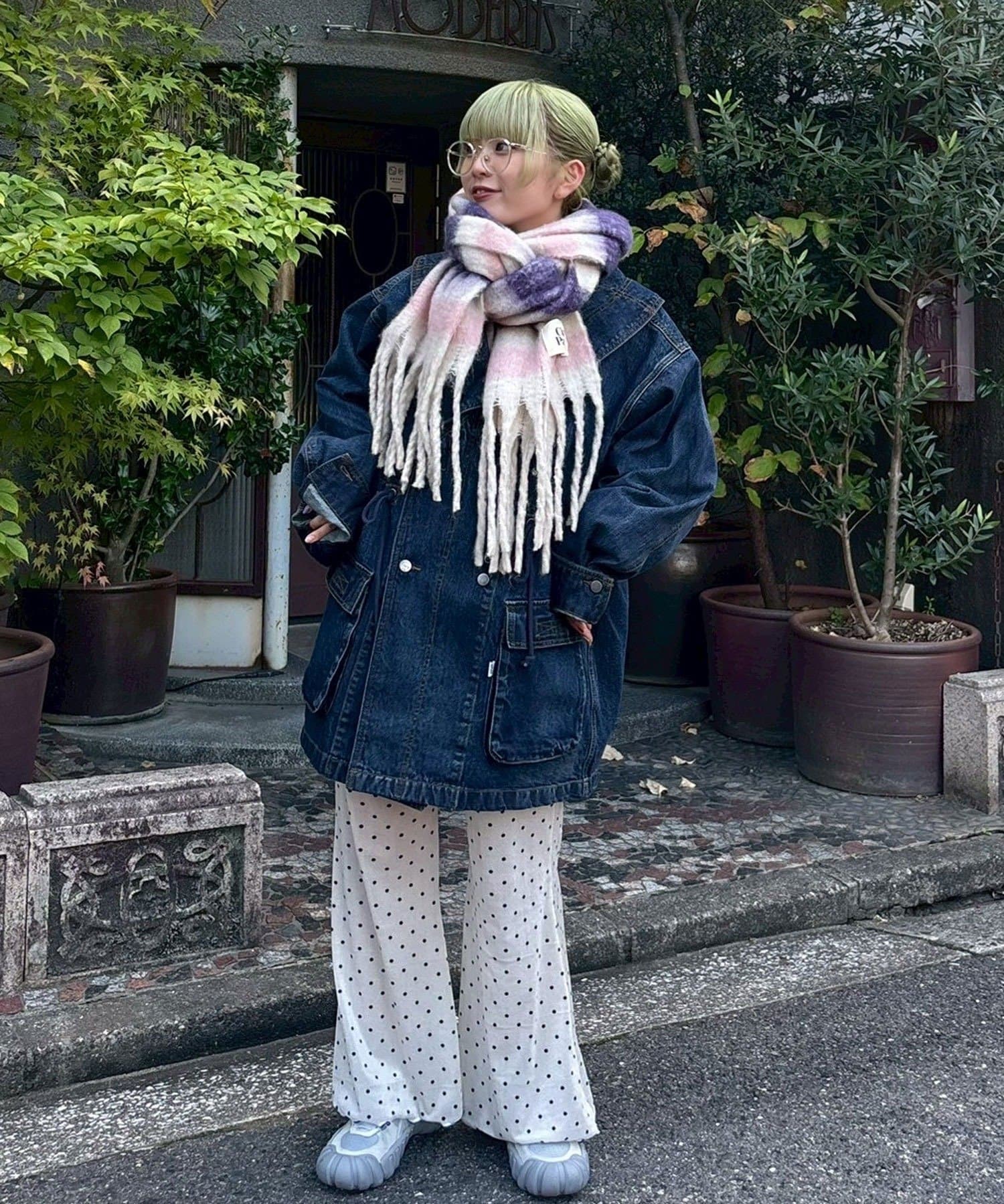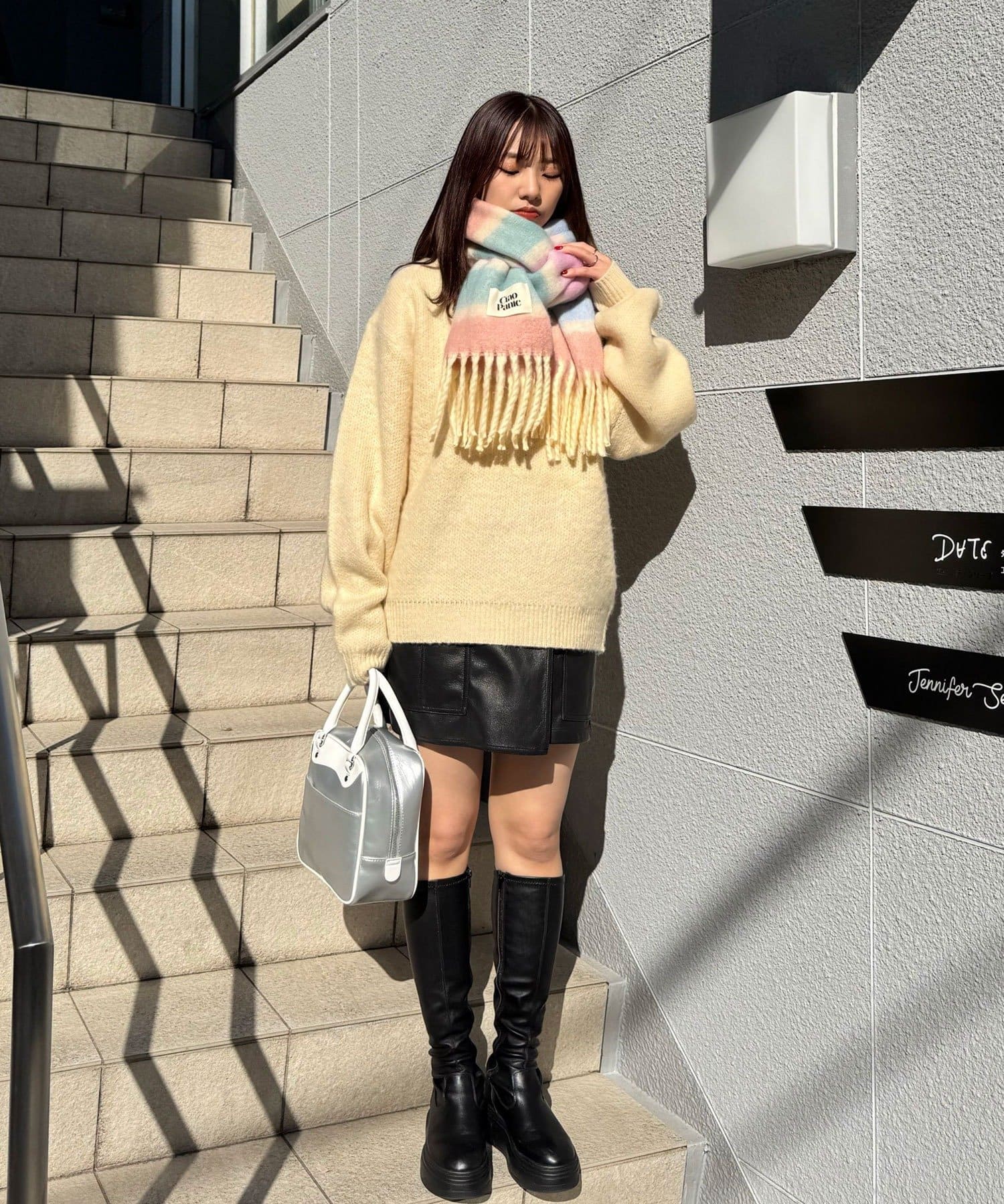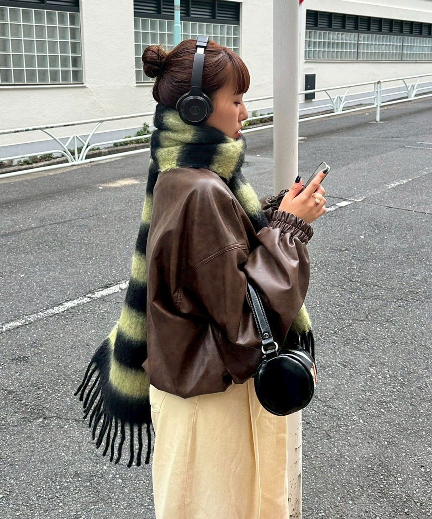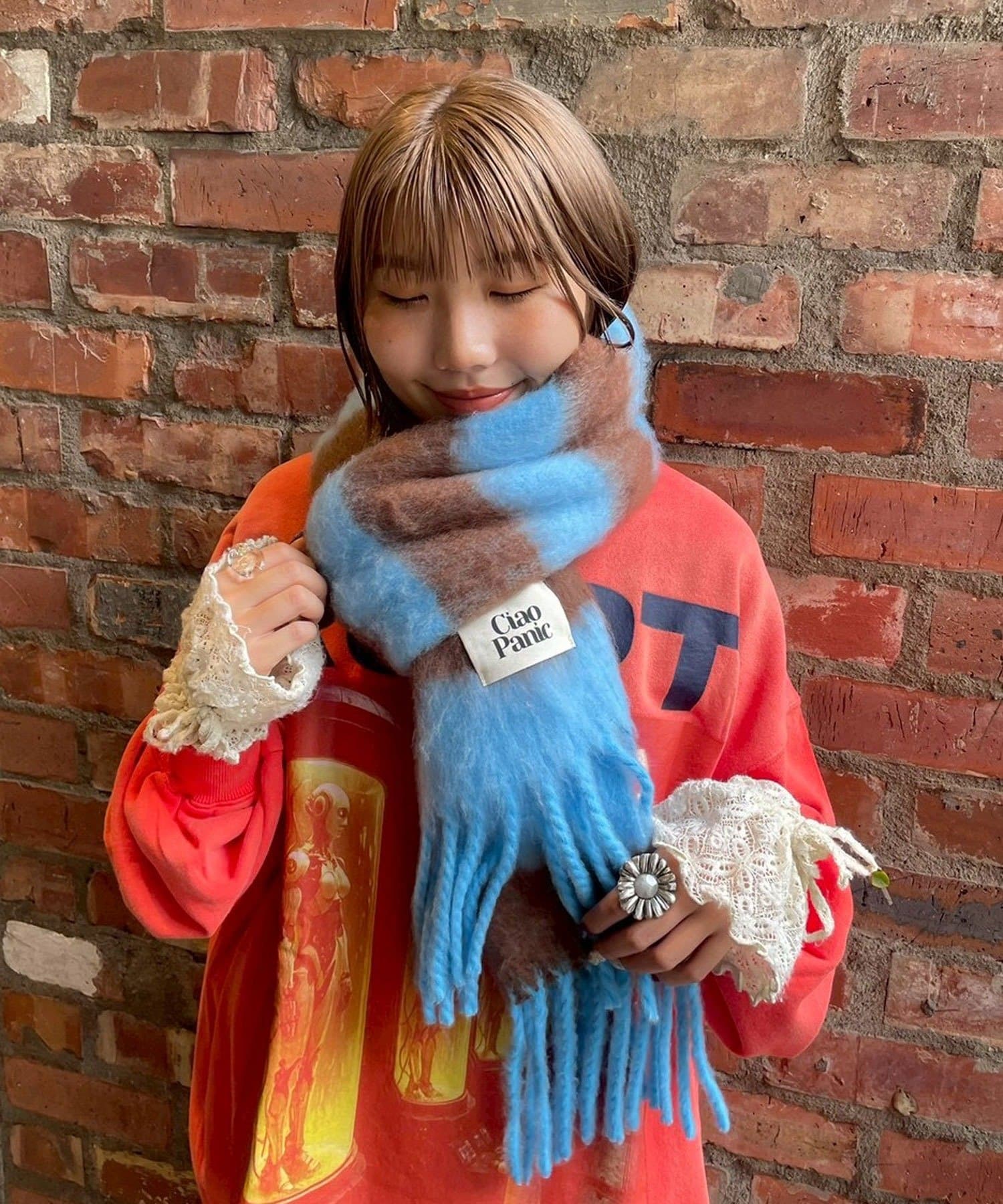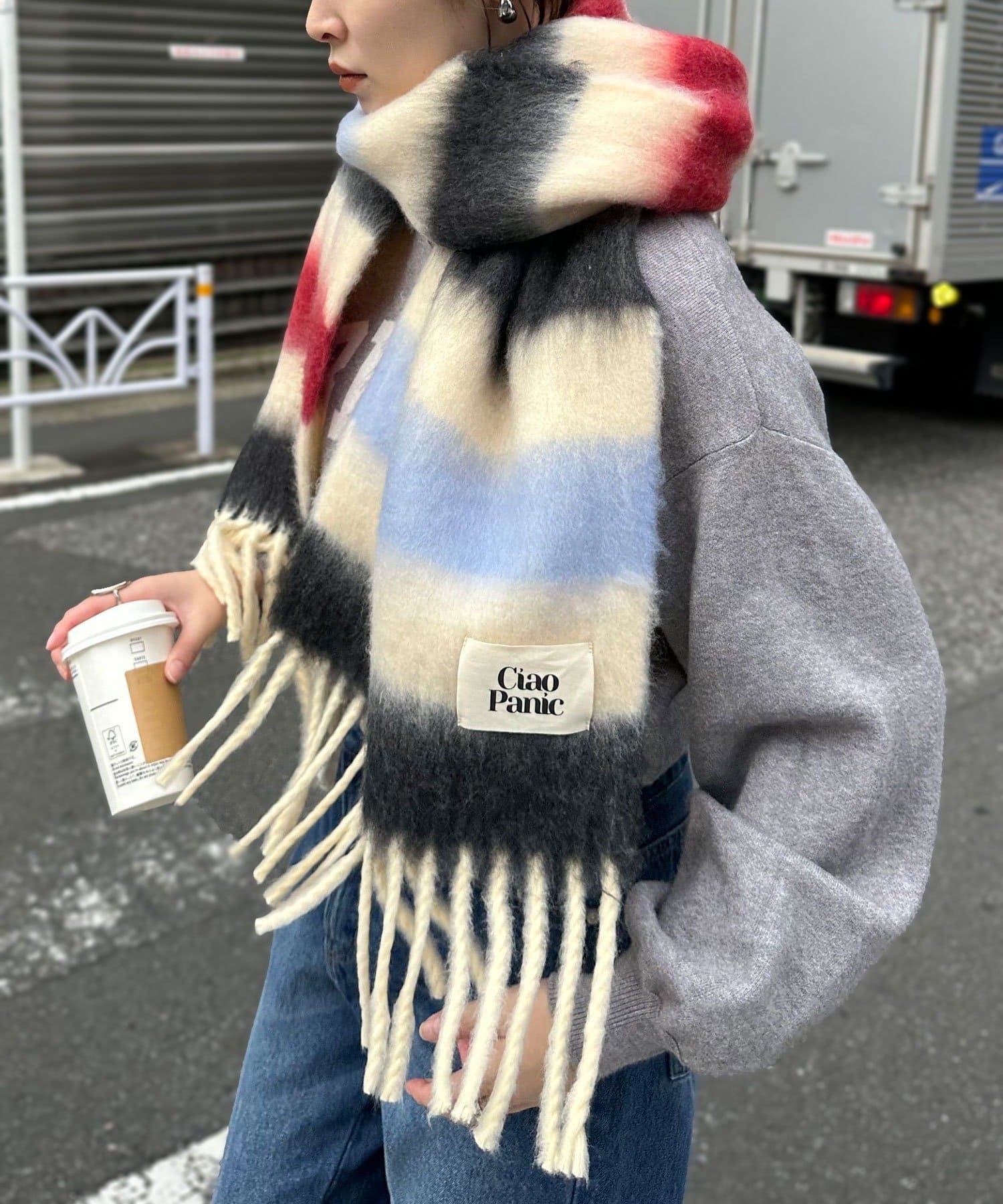 ボリューム感のある大判なマフラーなので巻き方のアレンジが楽しめます◎