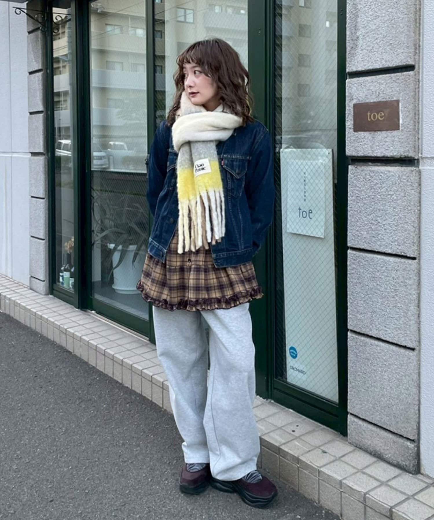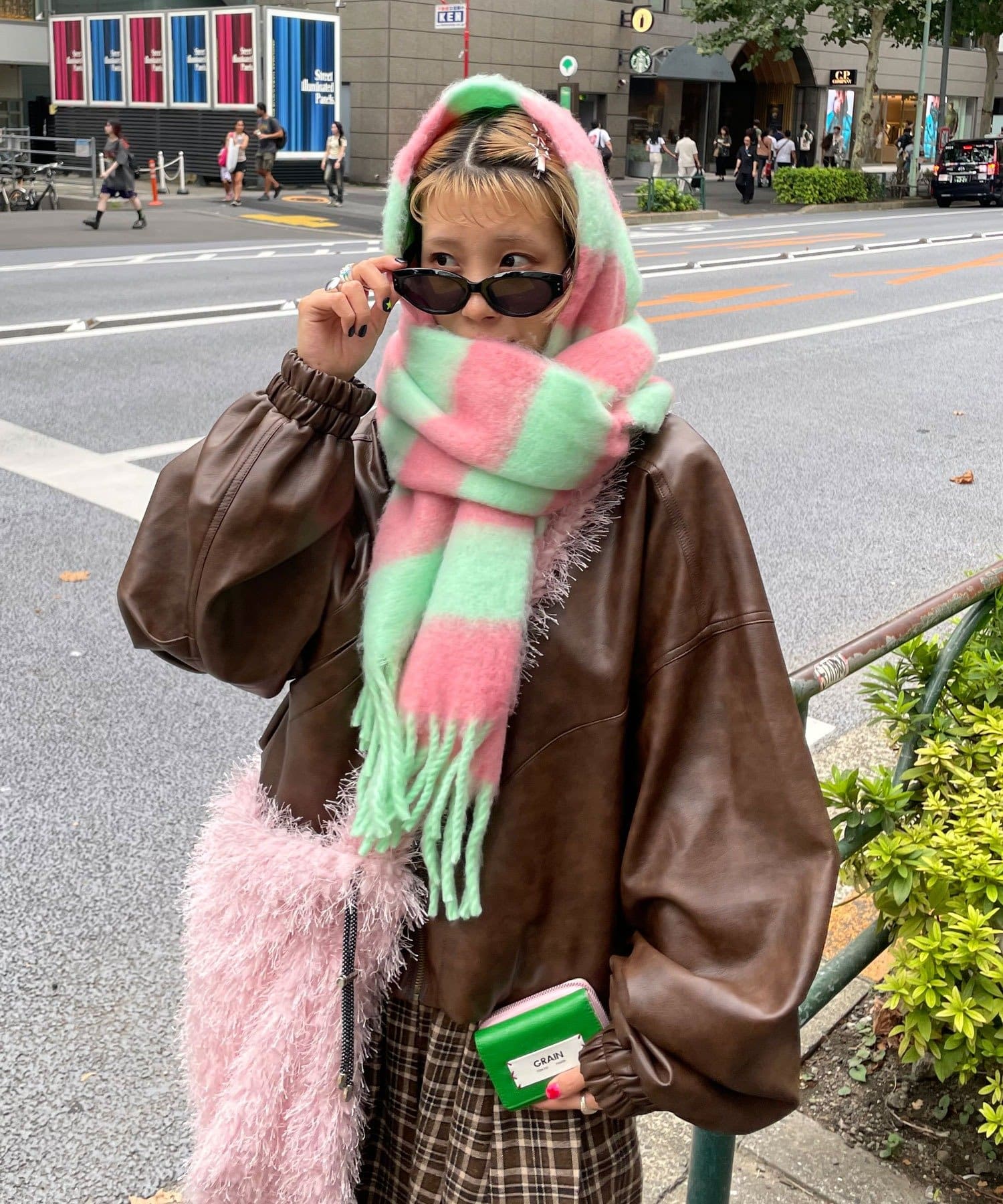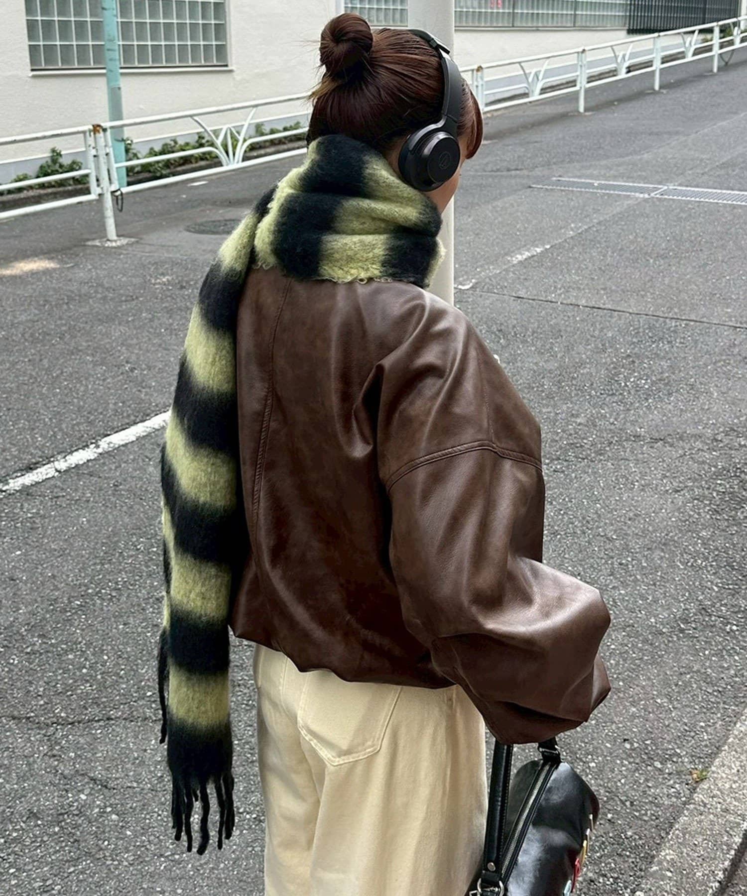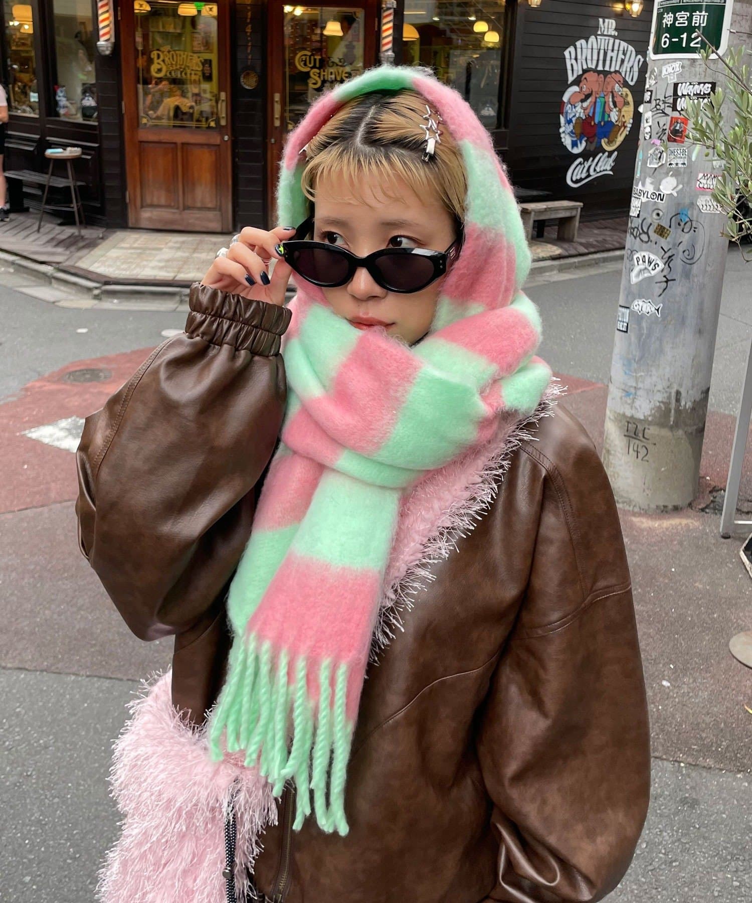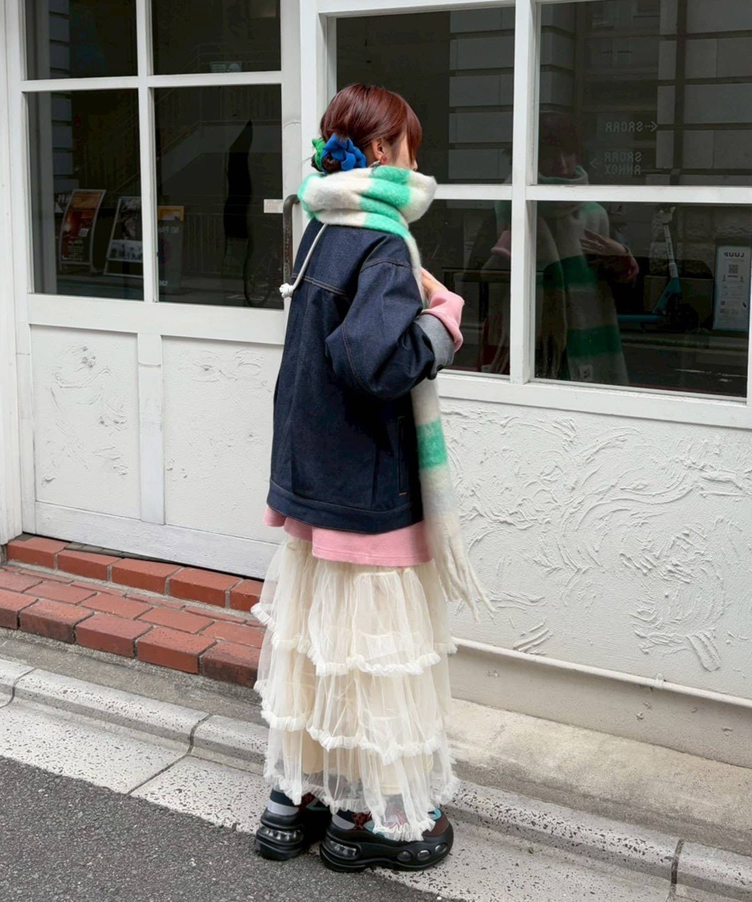 ボリューム感のある大判なマフラーなので巻き方のアレンジが楽しめます◎