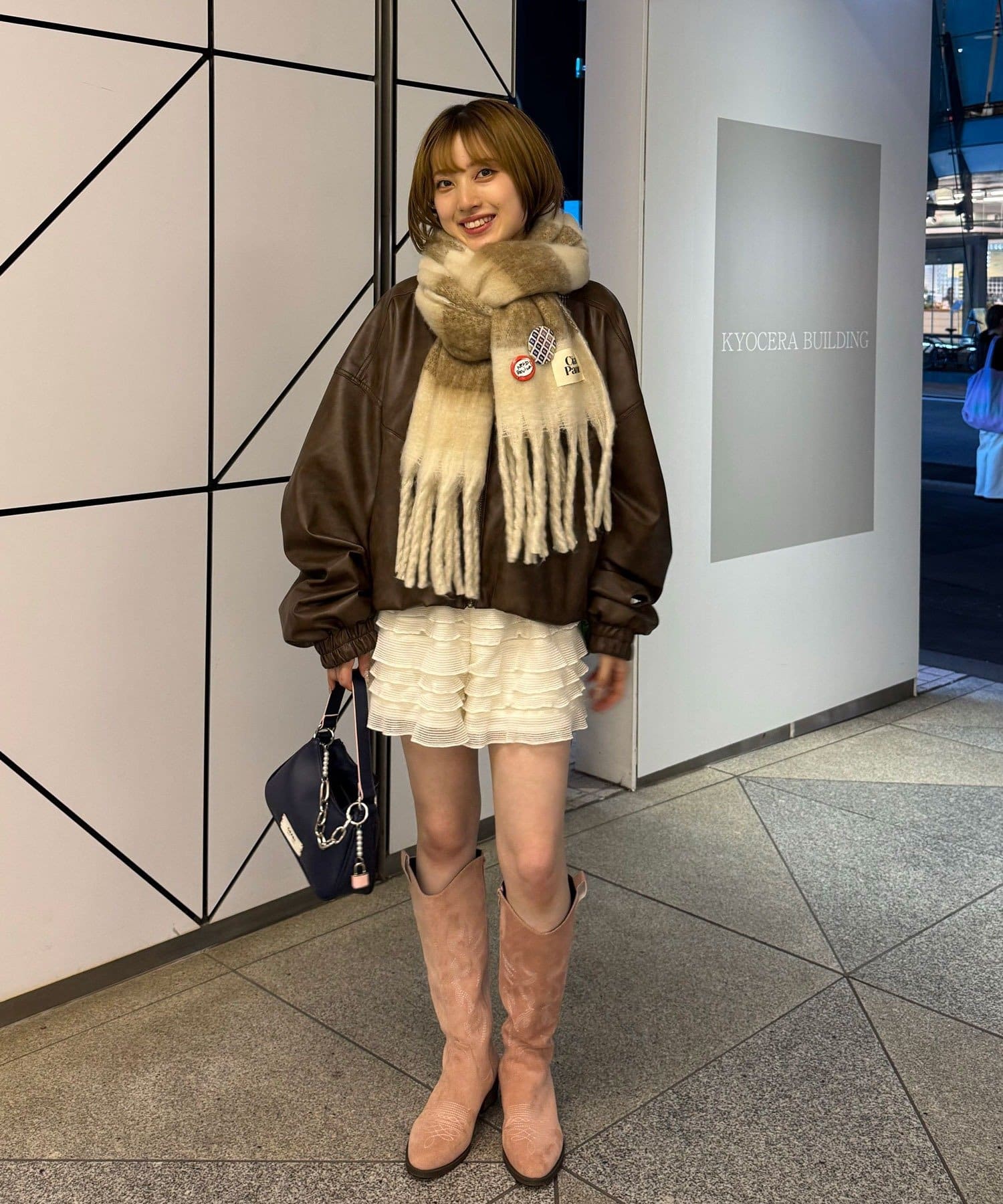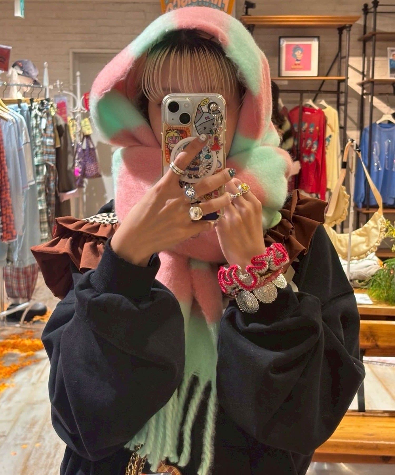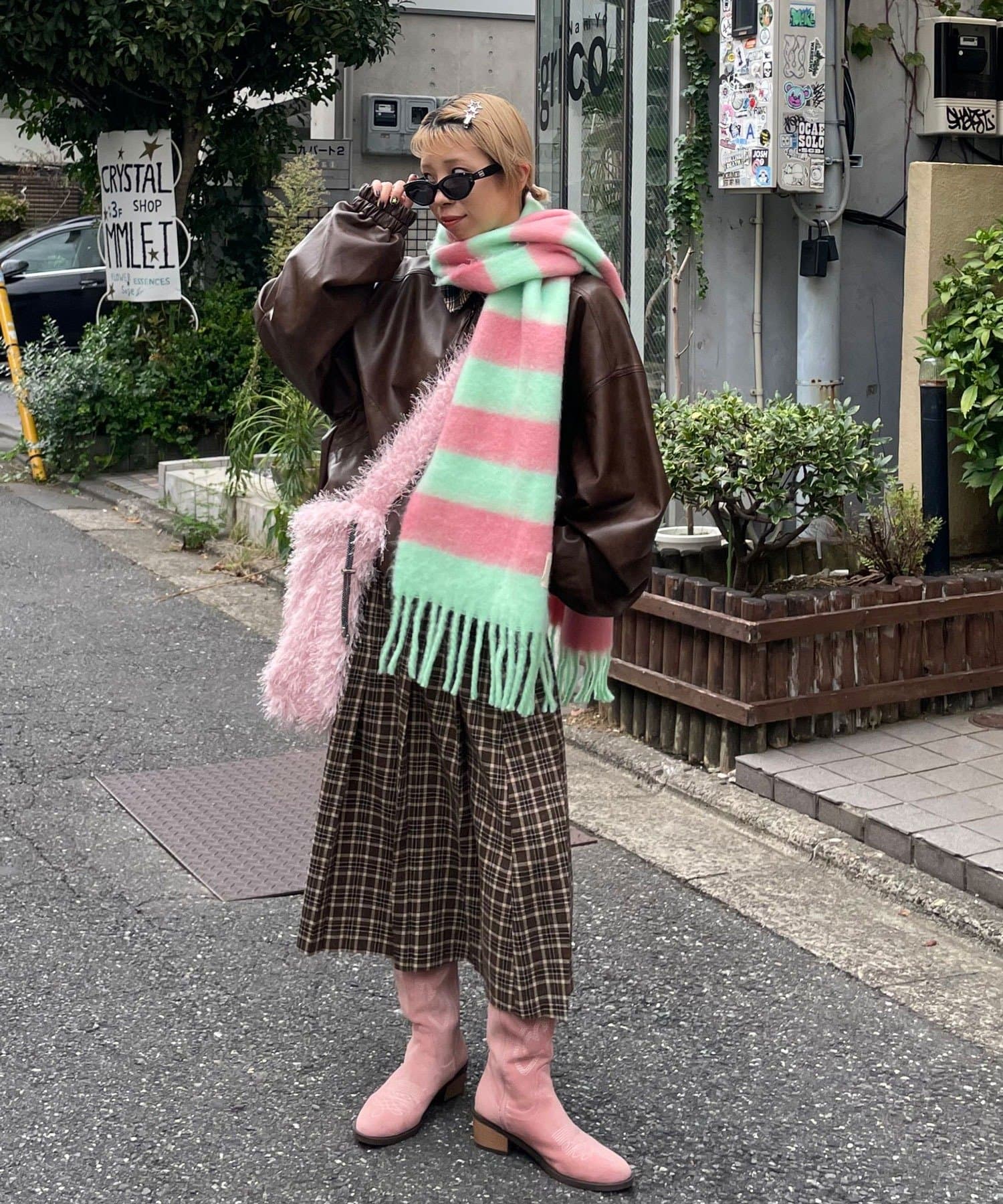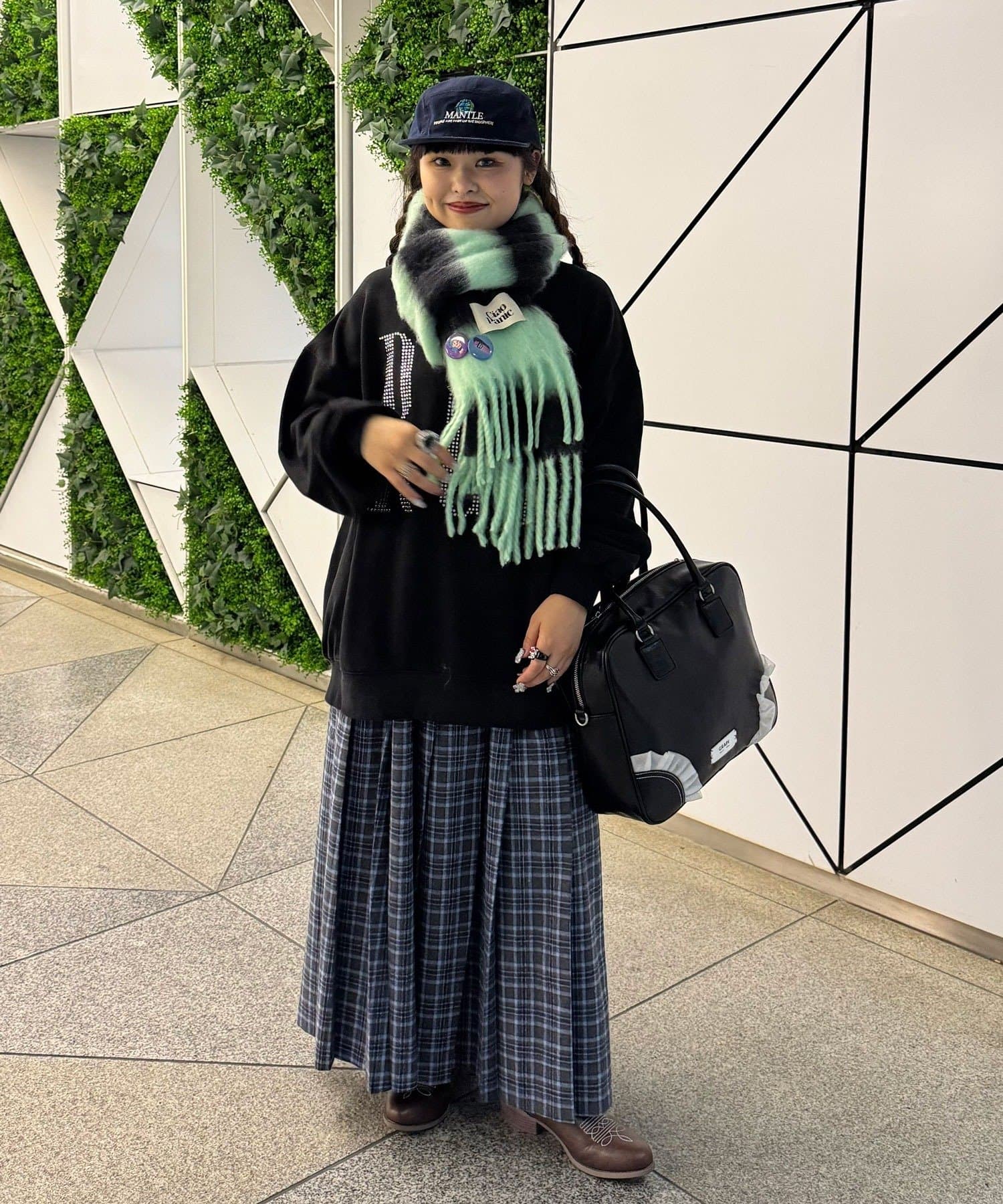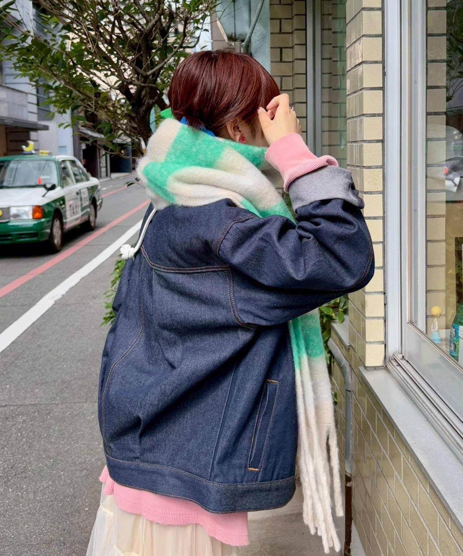ボリューム感のある大判なマフラーなので巻き方のアレンジが楽しめます◎