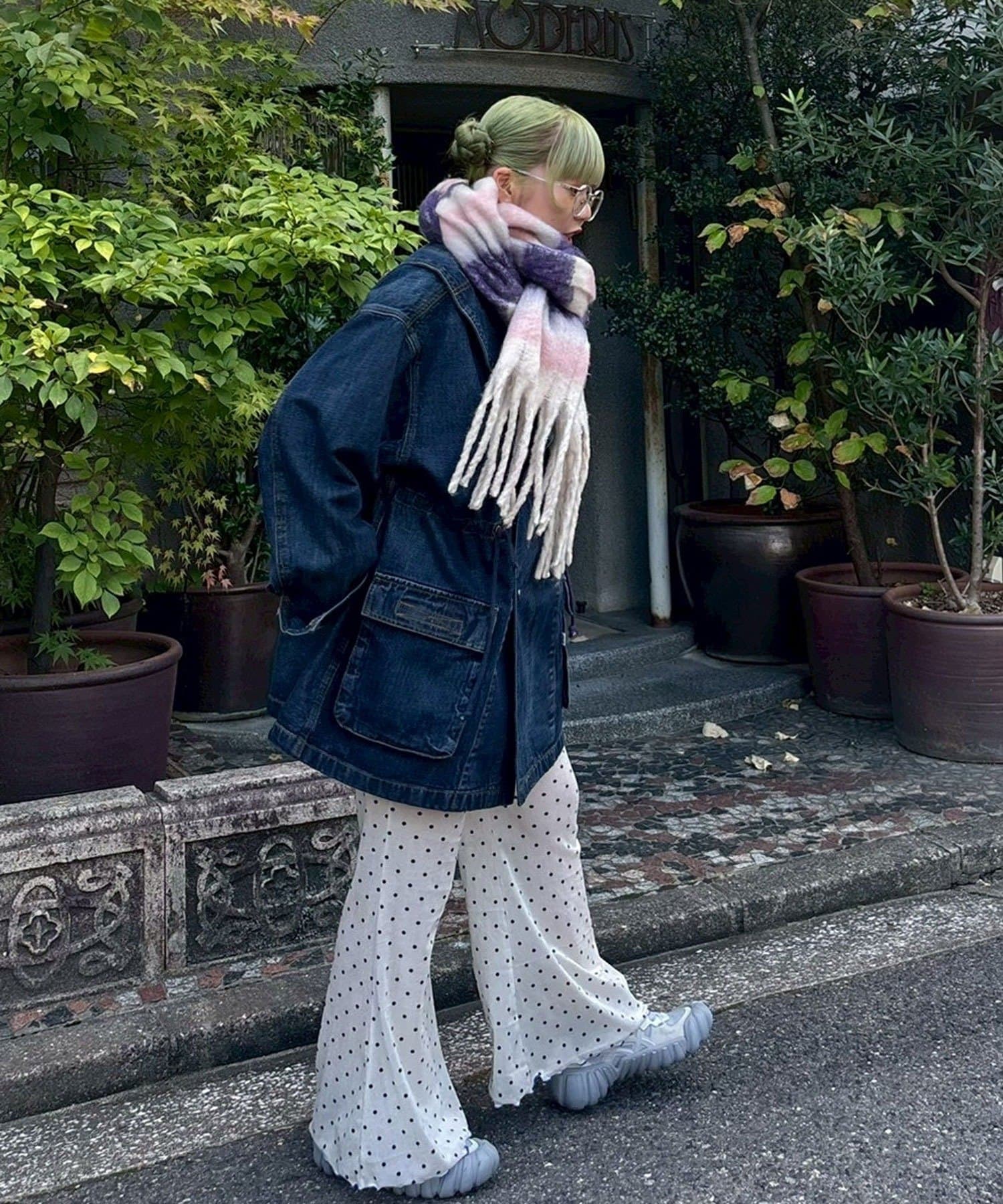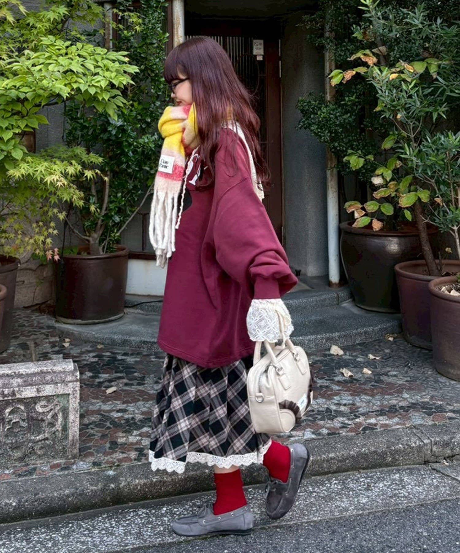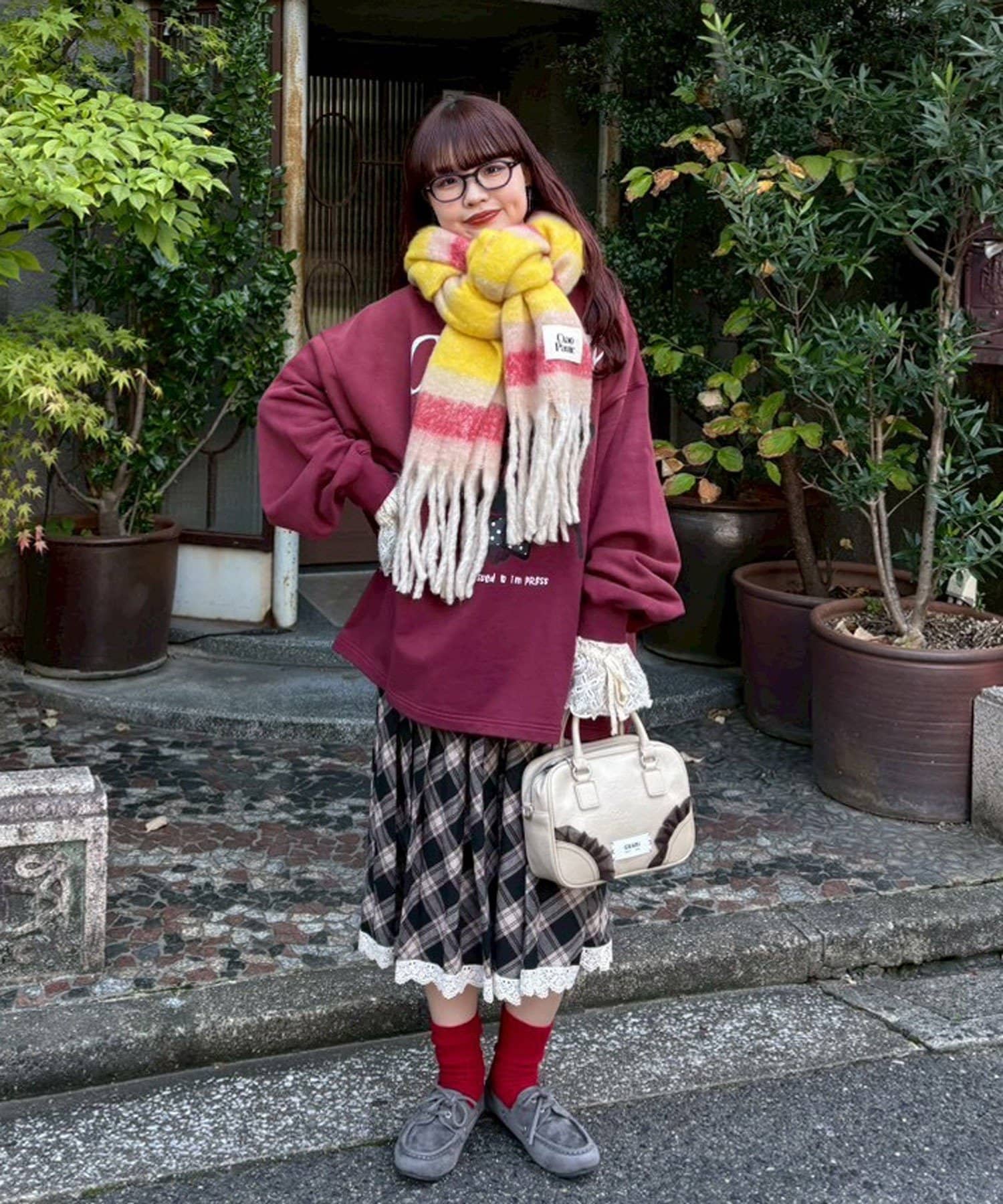 コートやジャケットなど、どんなアウターにも合わせやすく、ベーシックなコーディネートに温かみをプラスできます。