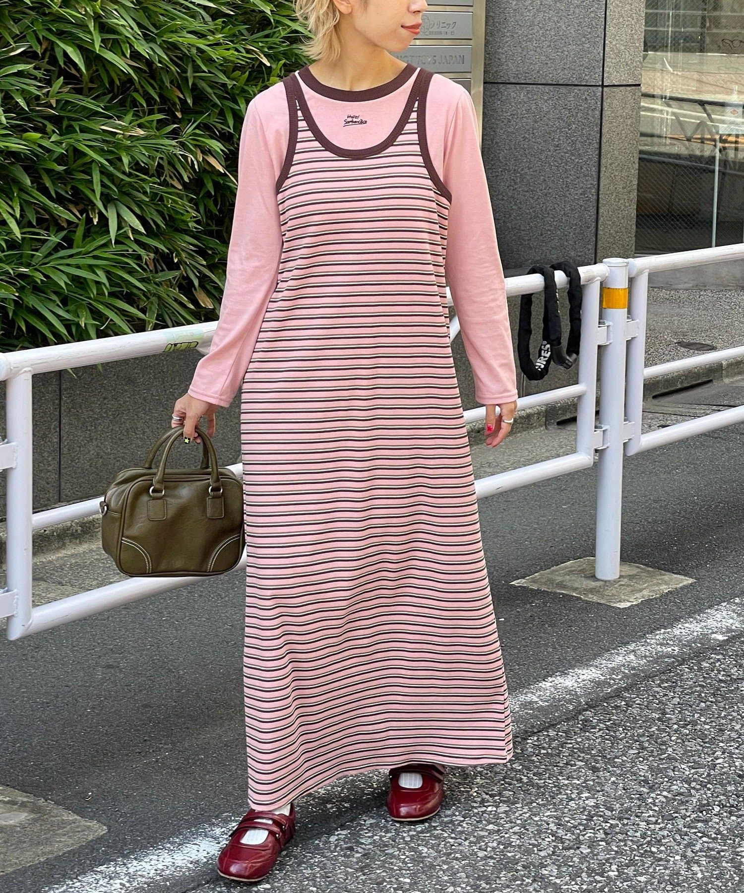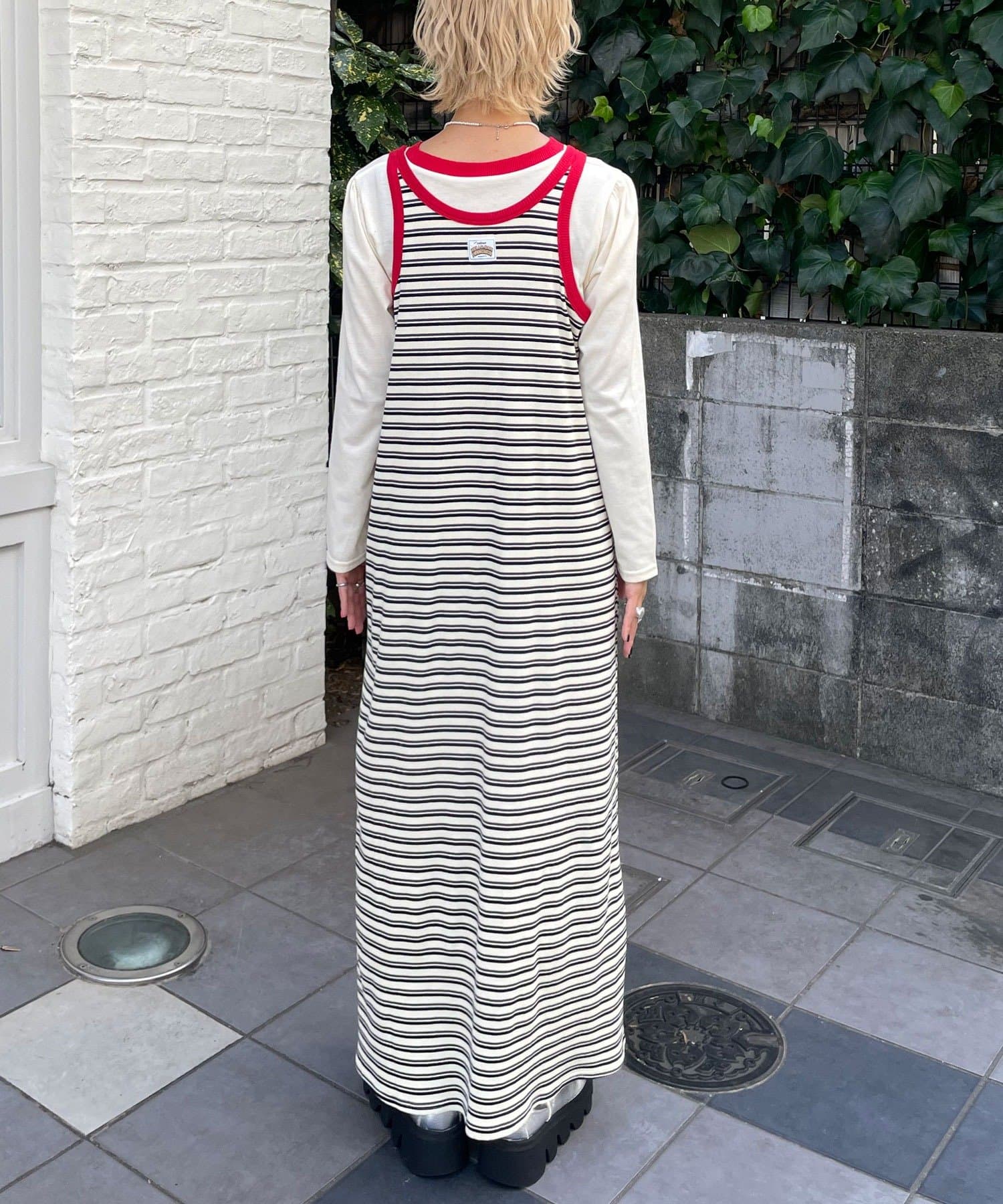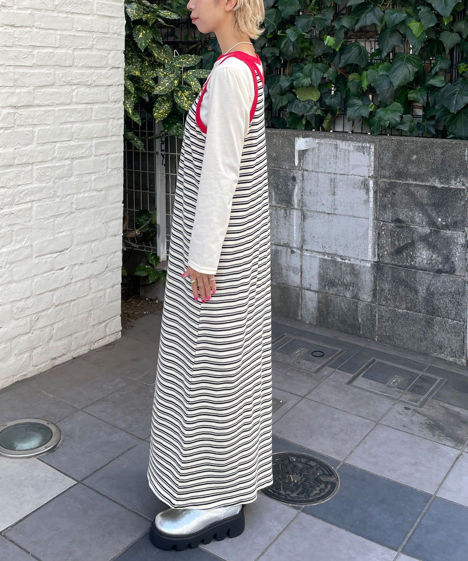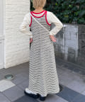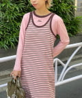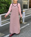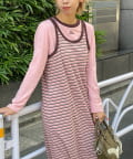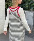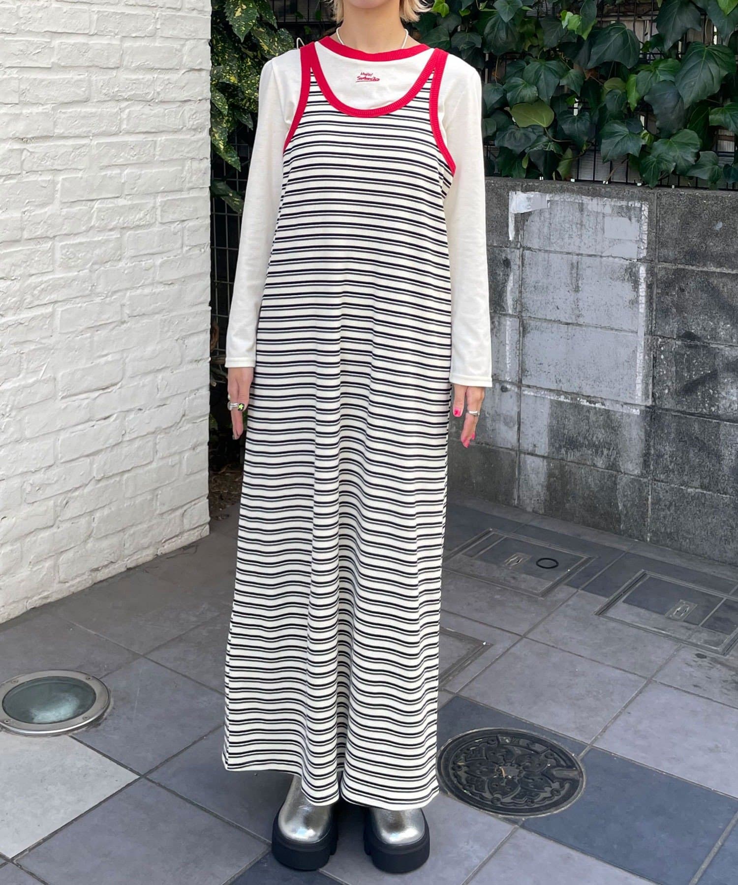 ボーダーキャミワンピ×ロンTのセットアイテム。