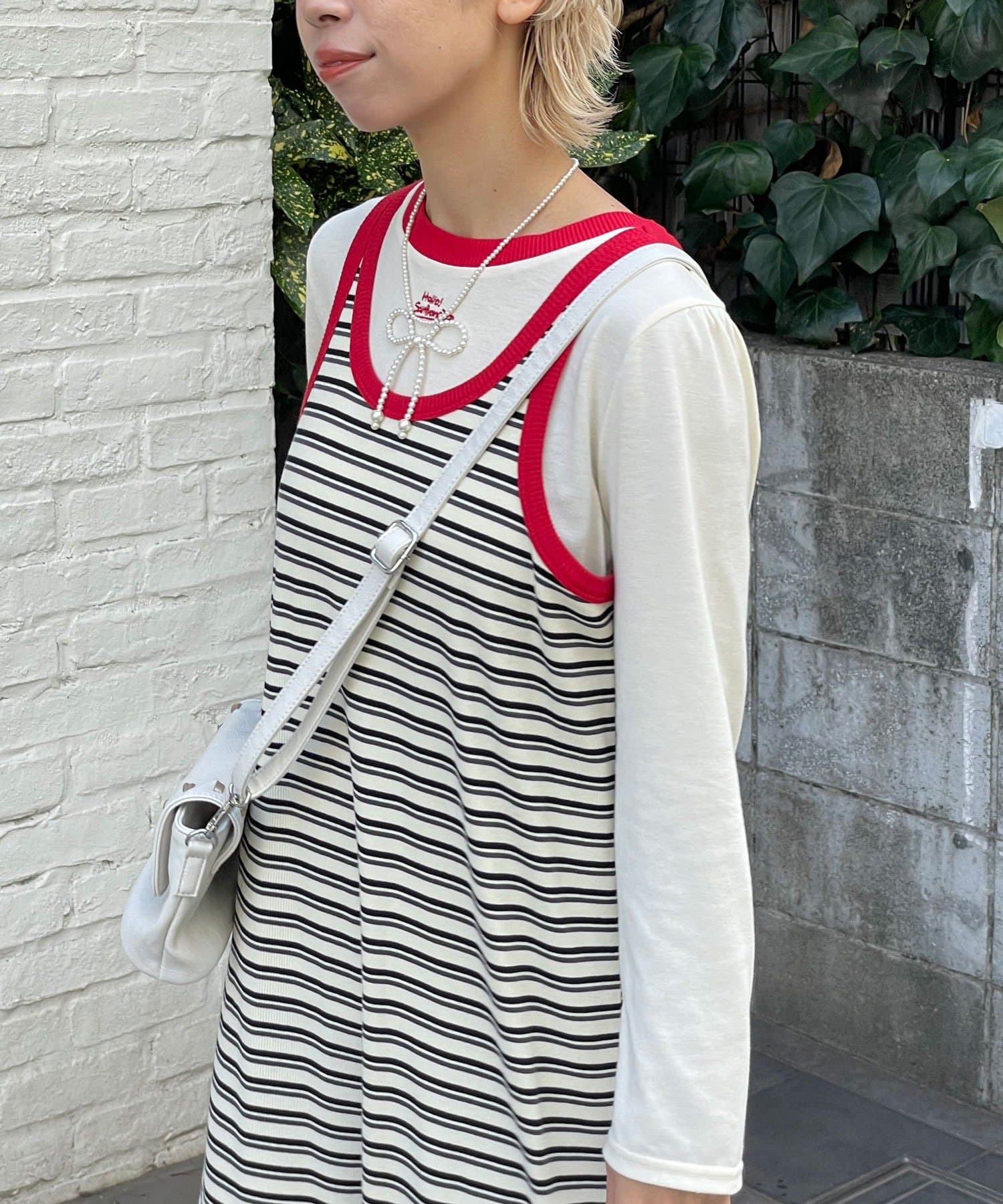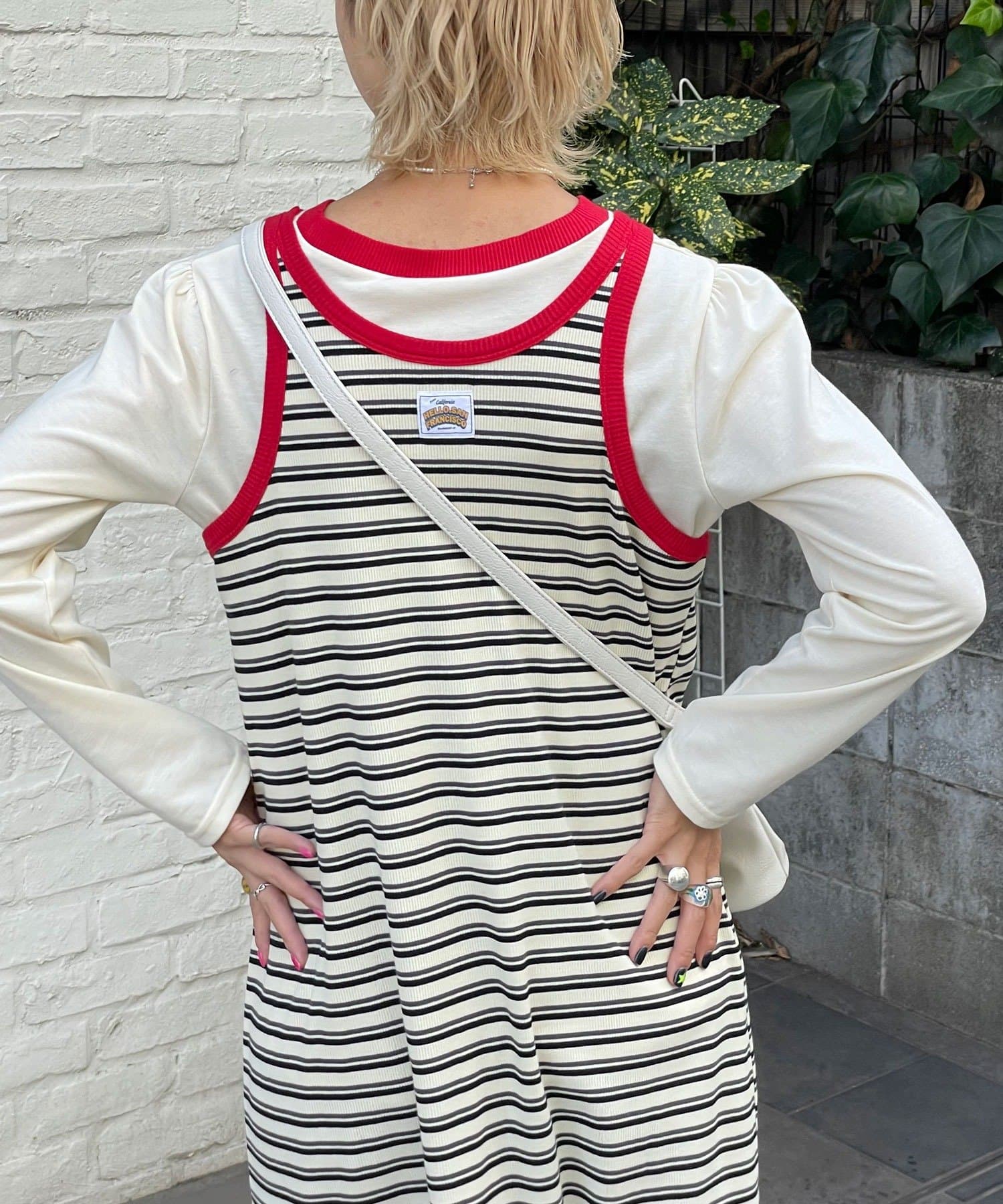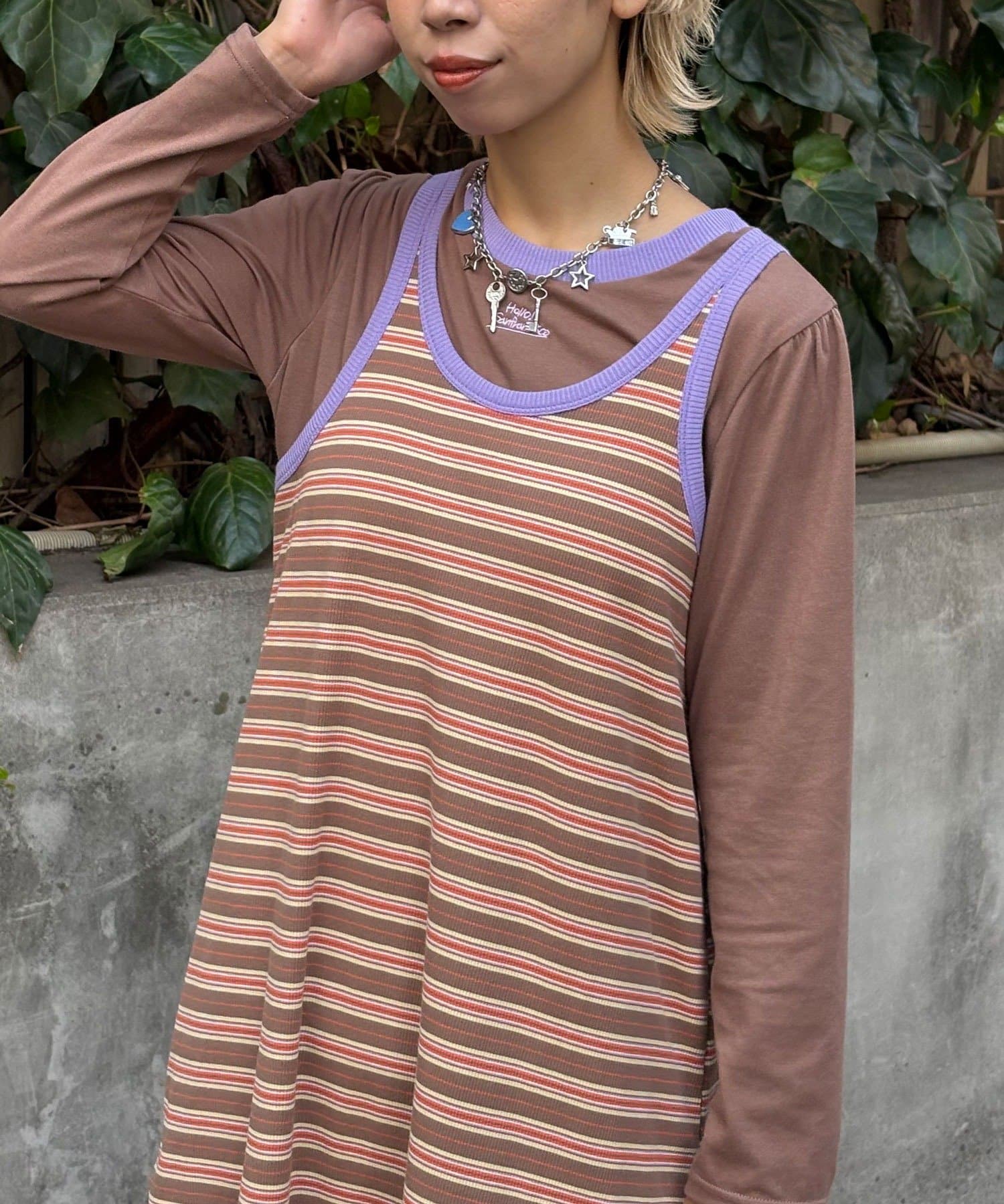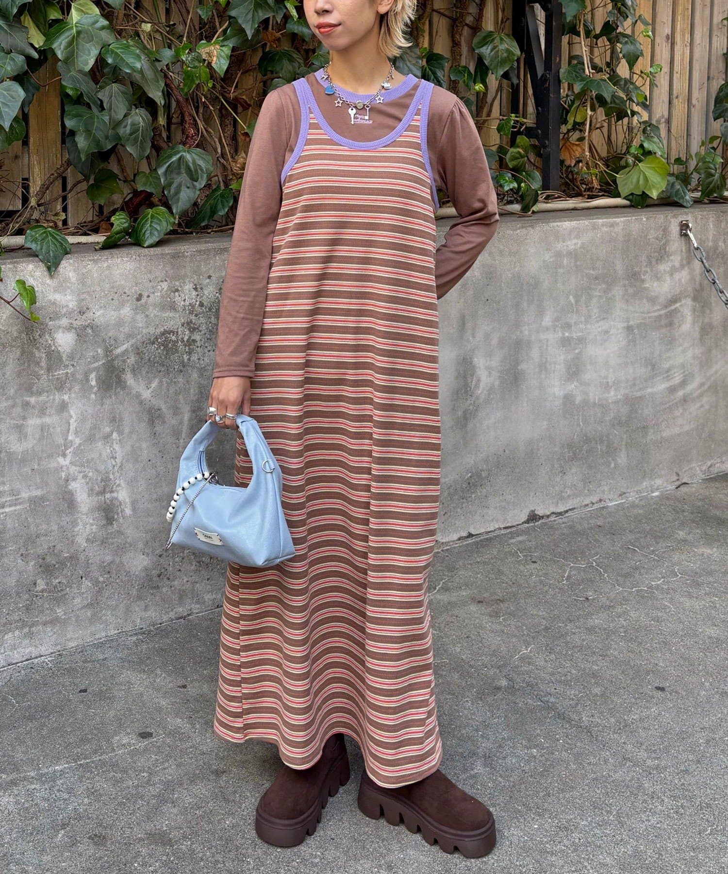 ボーダーキャミワンピ×ロンTのセットアイテム。