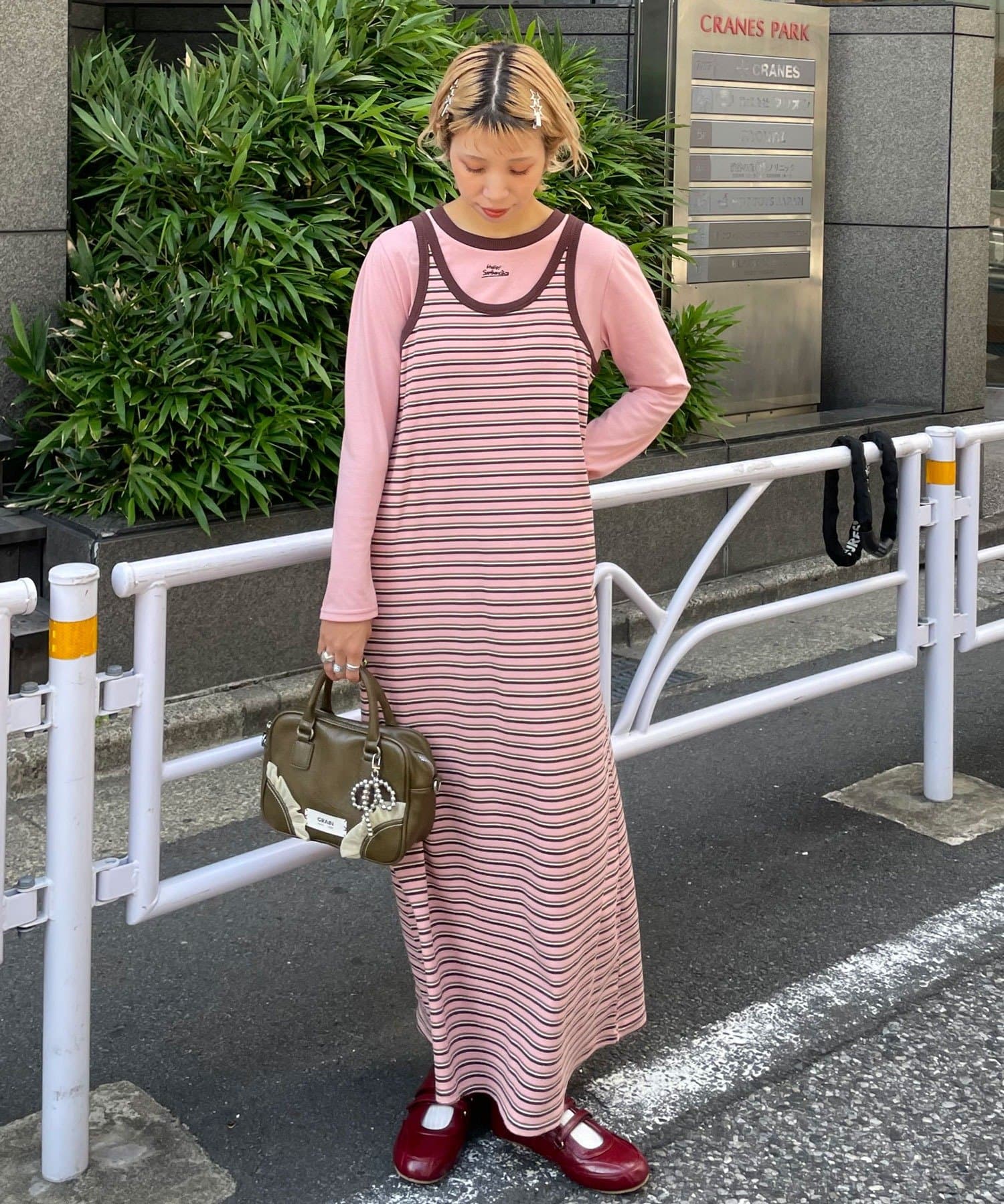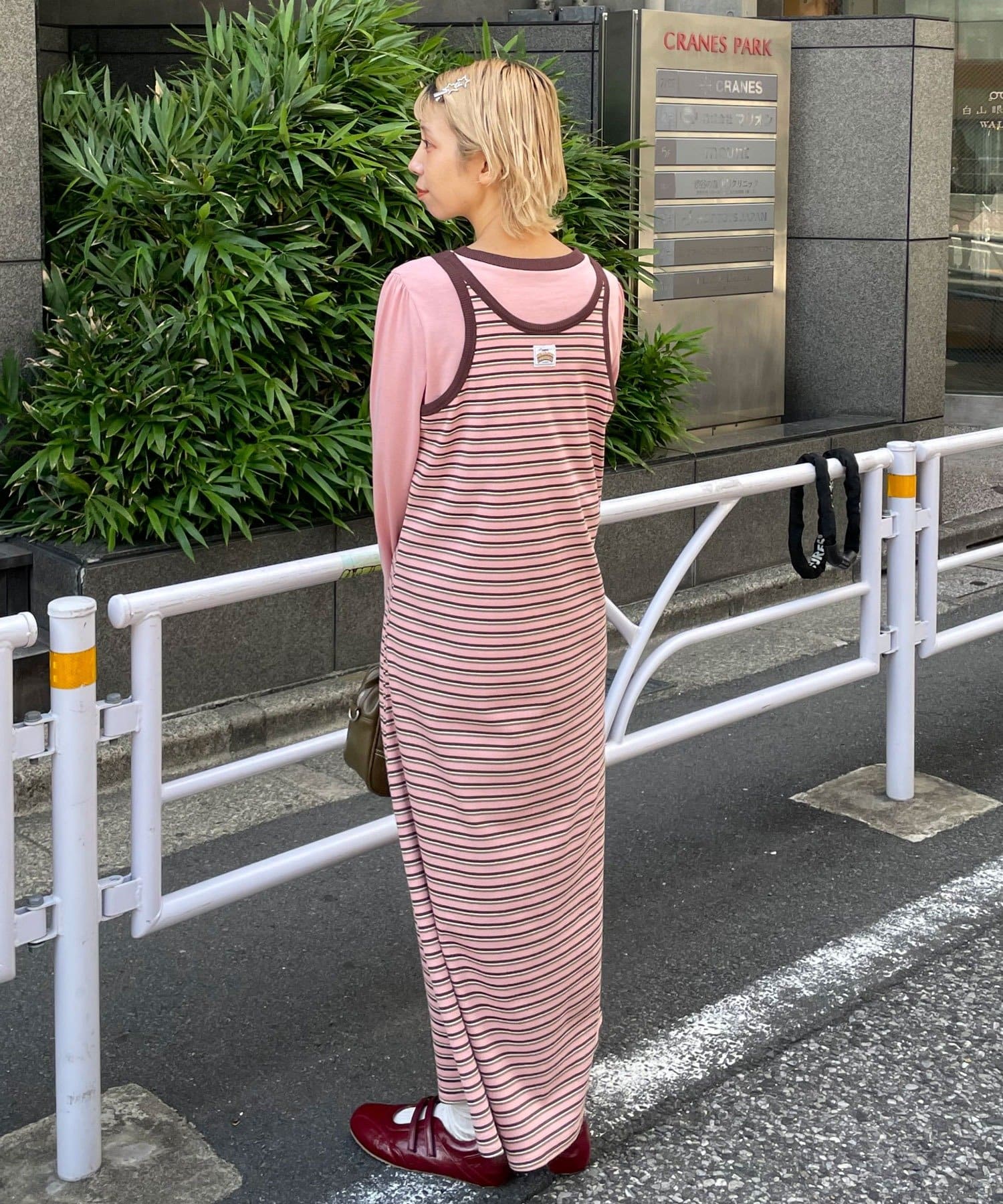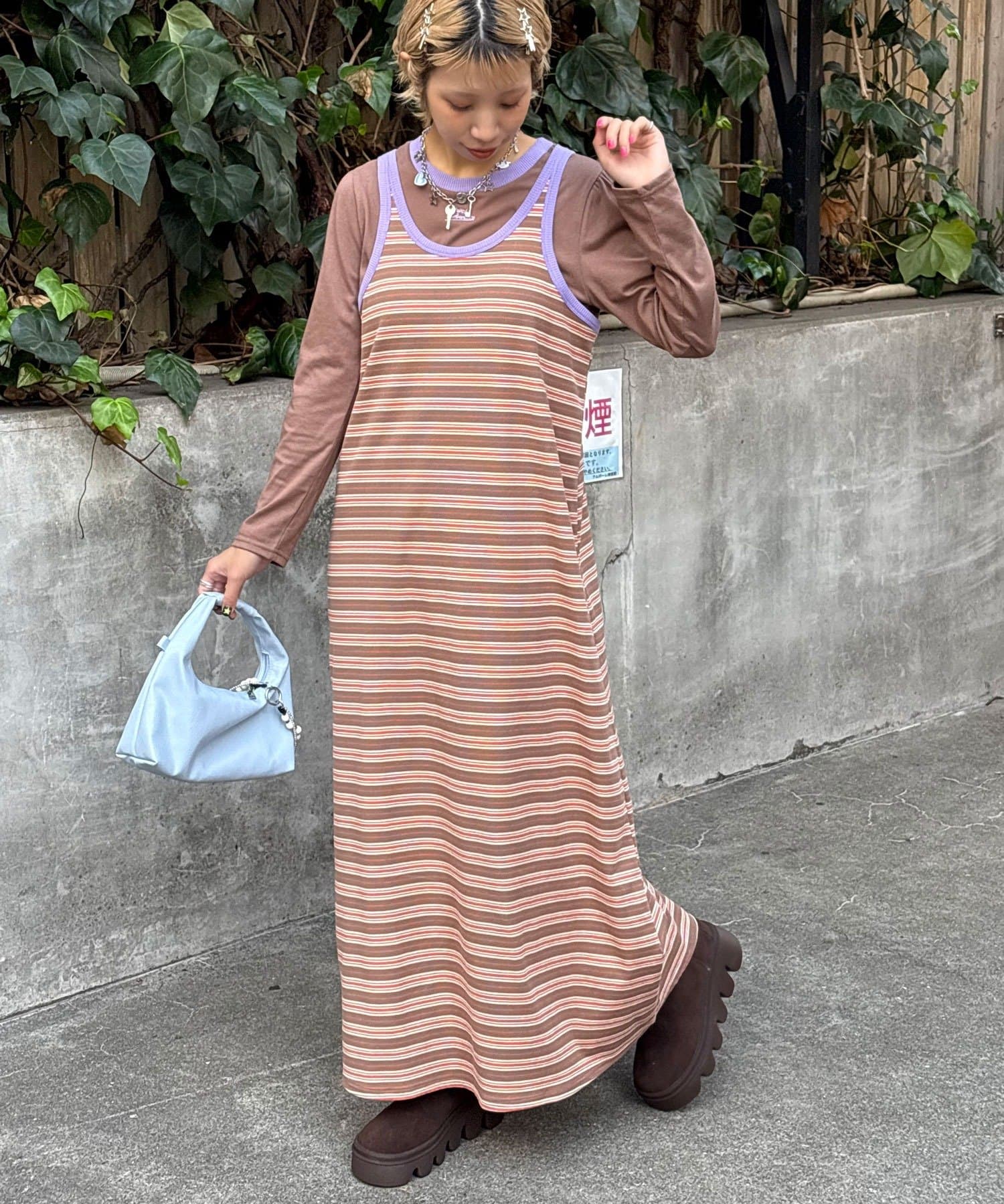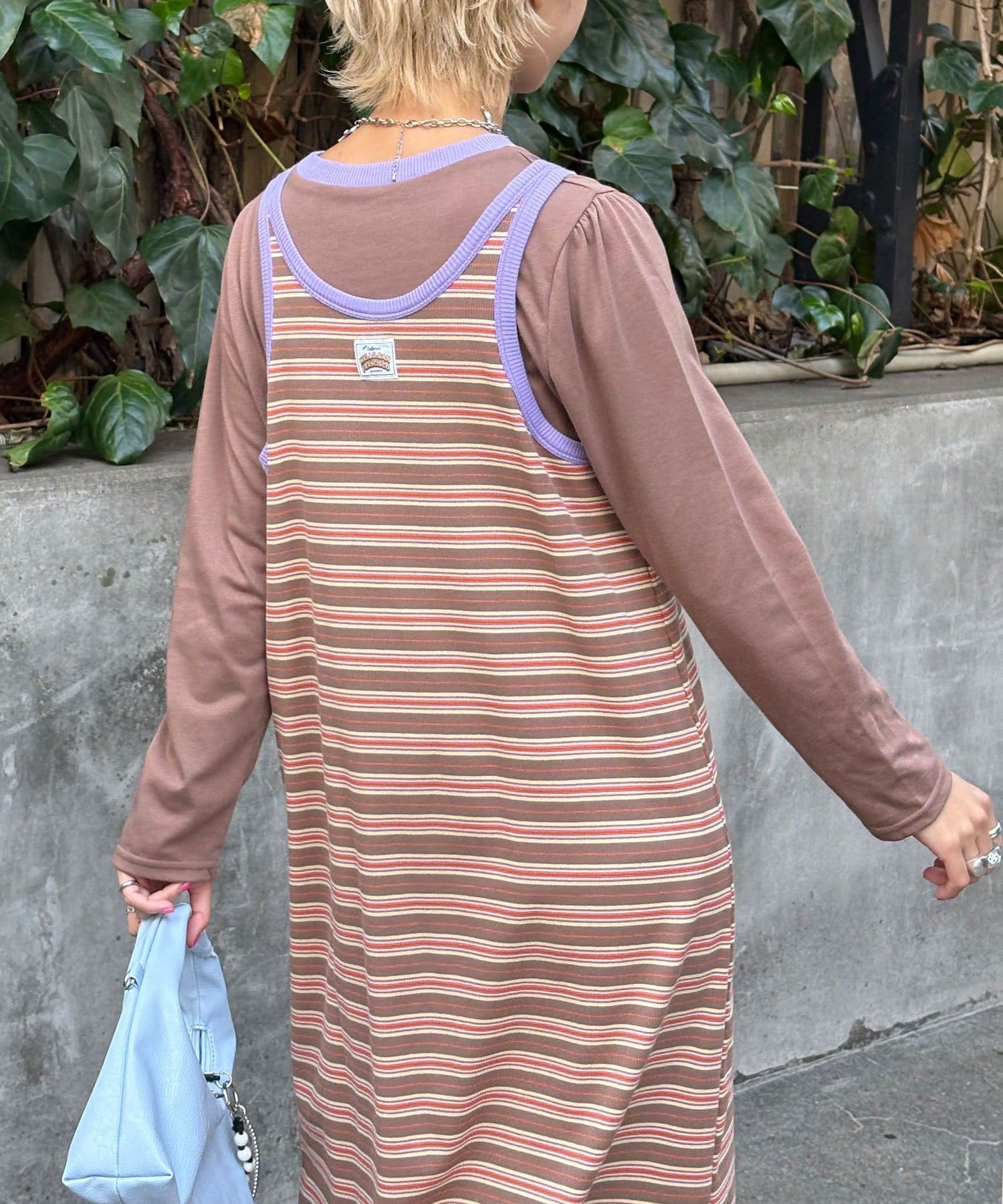 ボーダーキャミワンピ×ロンTのセットアイテム。