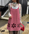 TOP > CIAOPANIC > レディース > ワンピース > チュニック > 【HELLO.SANFRANCISCO/ハローサンフランシスコ】ボーダーフラワーカットキャミチュニック