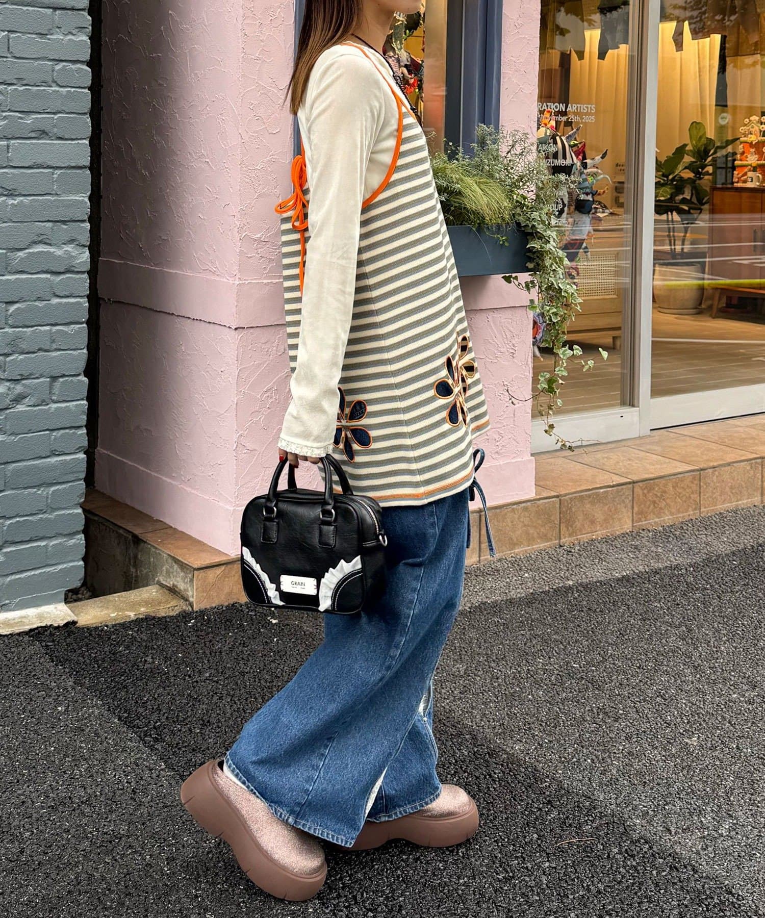 ショート丈トップスの下に重ねて裾だけ見せるのも◎