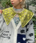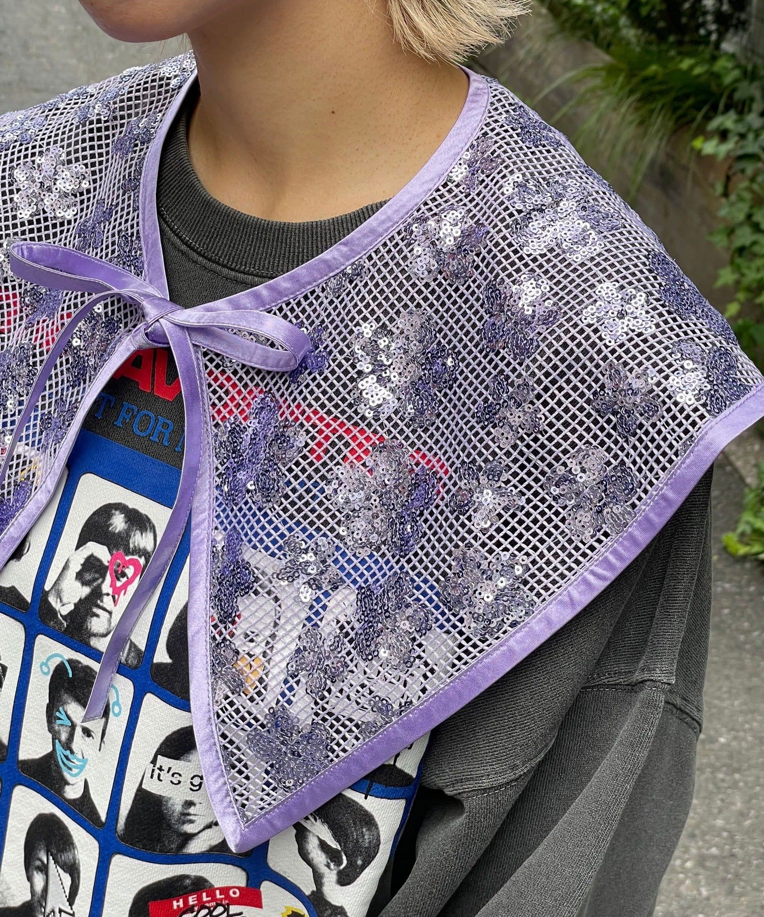 顔まわりにきらめきを添えるスパンコールつけ襟。