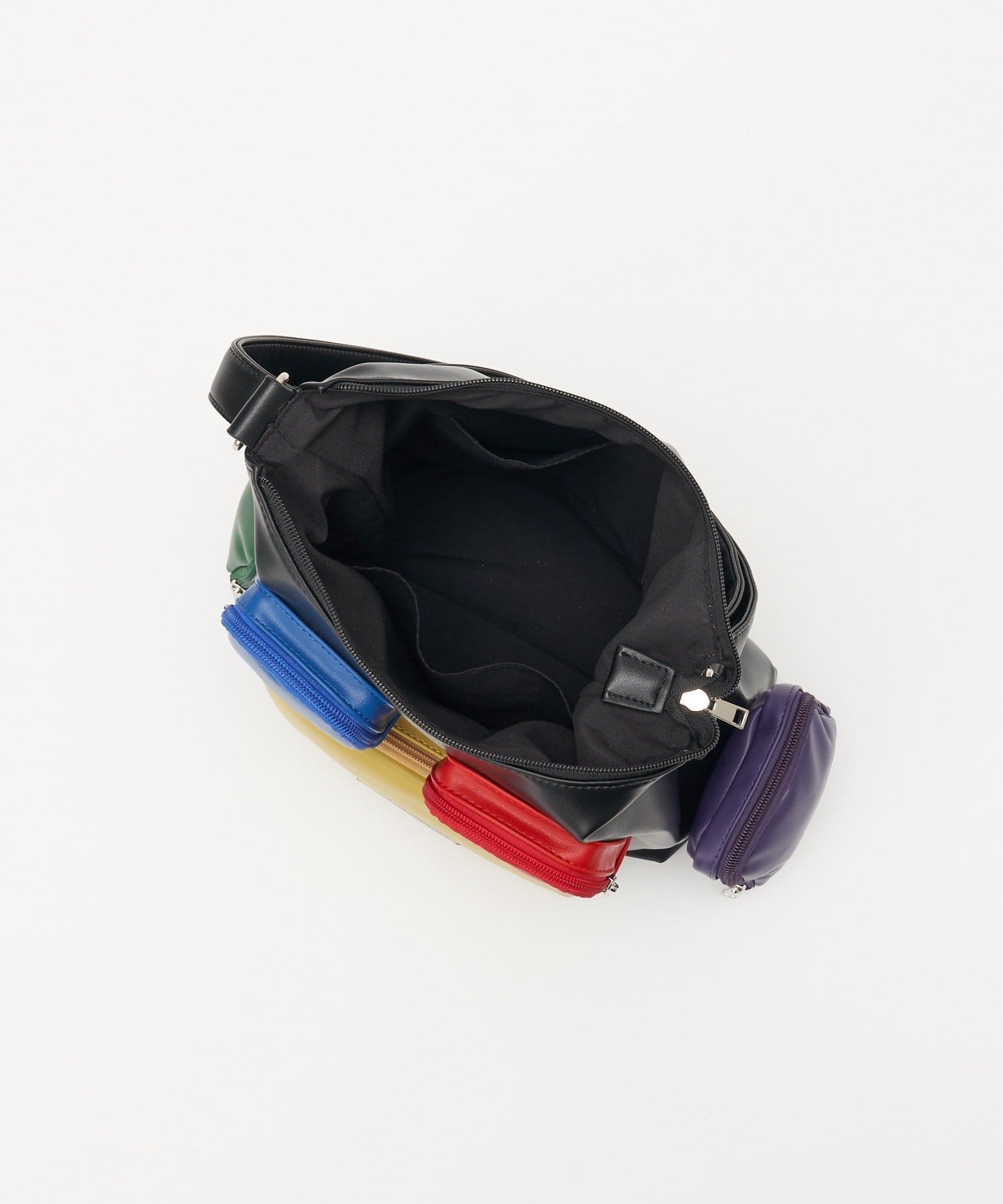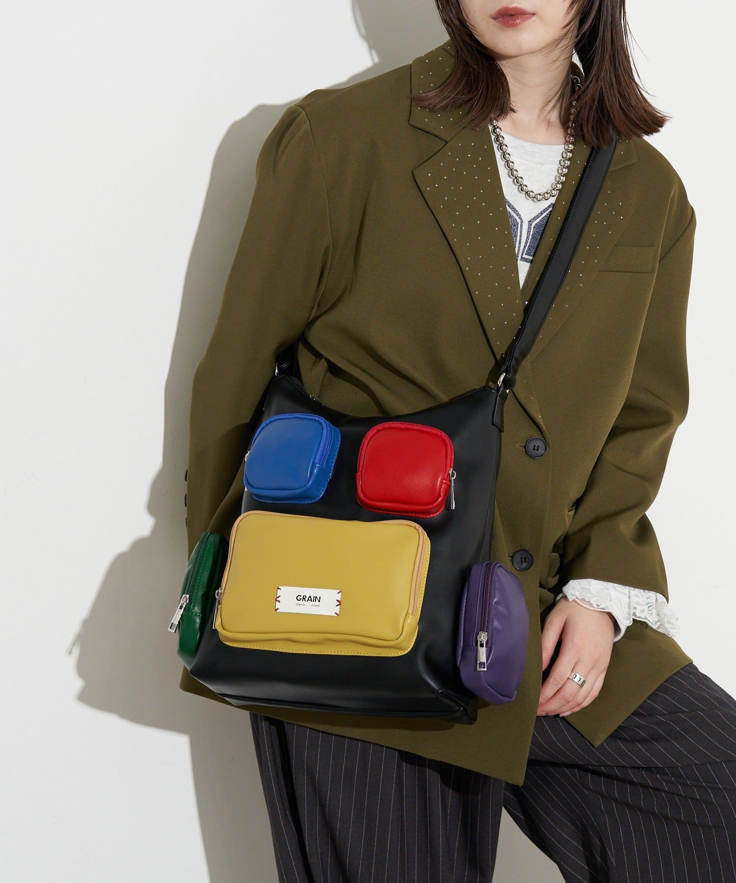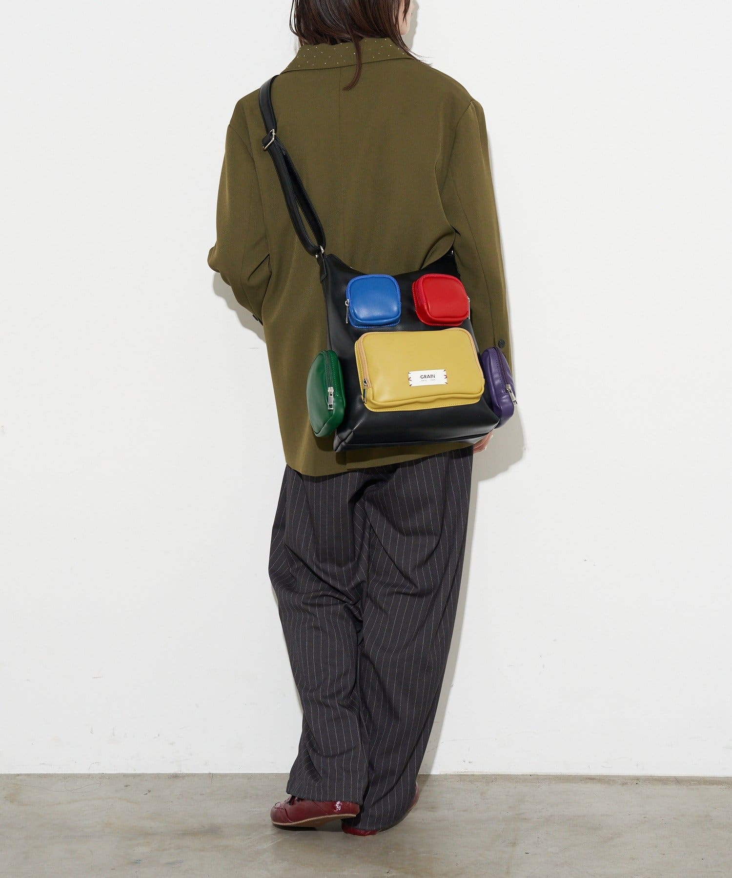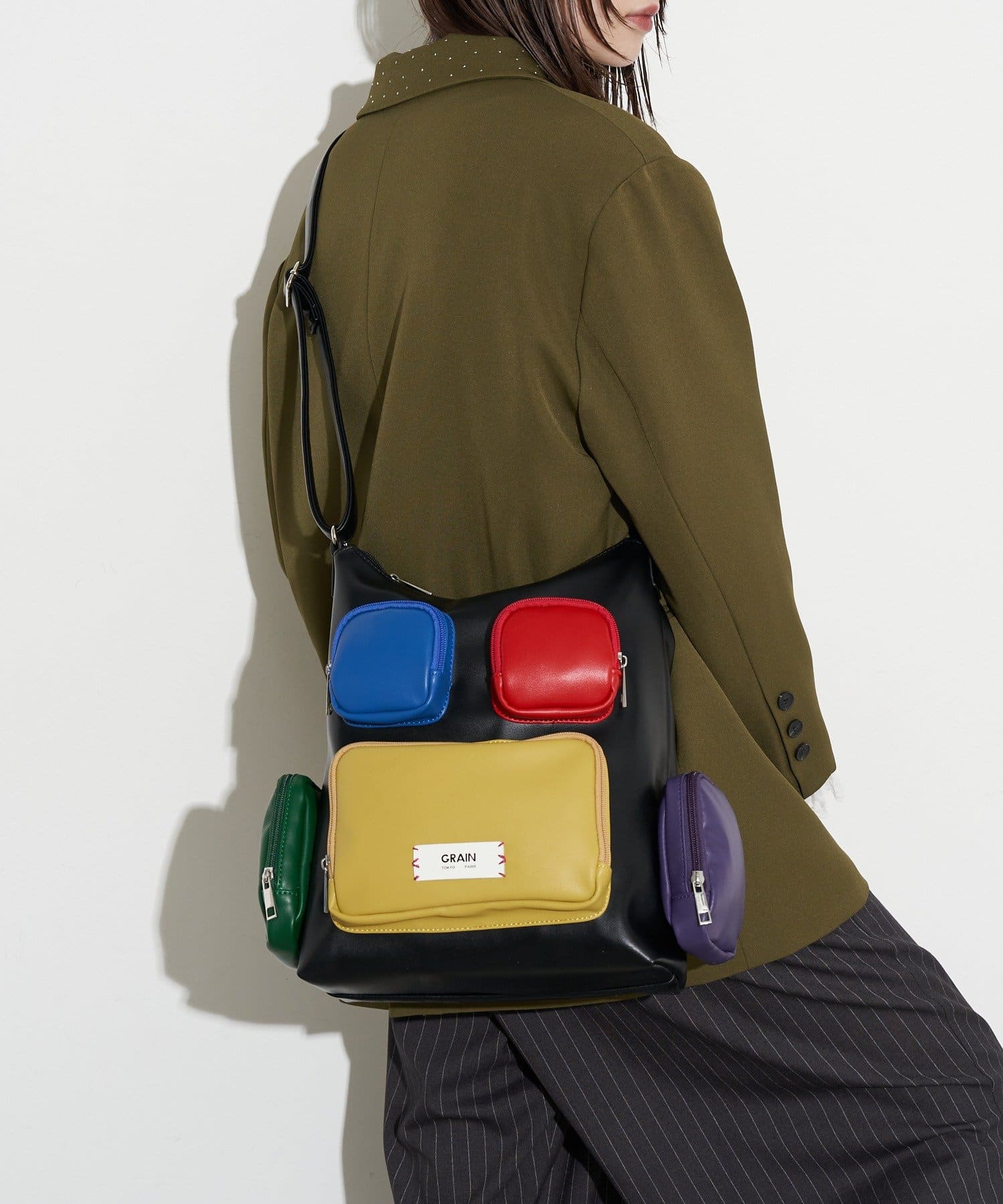 遊び心あるカラーポケットが目を引くマルチショルダーバッグ。