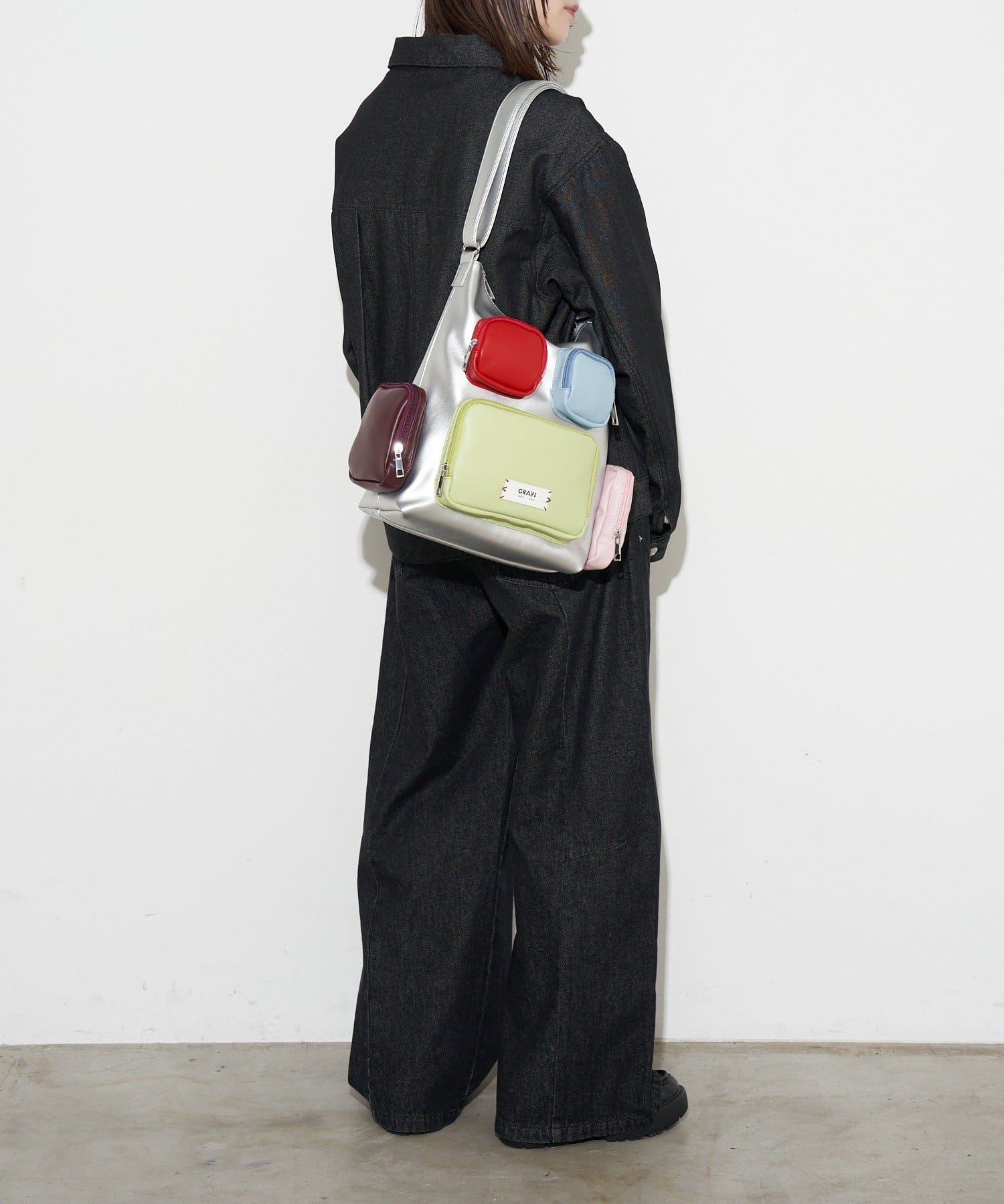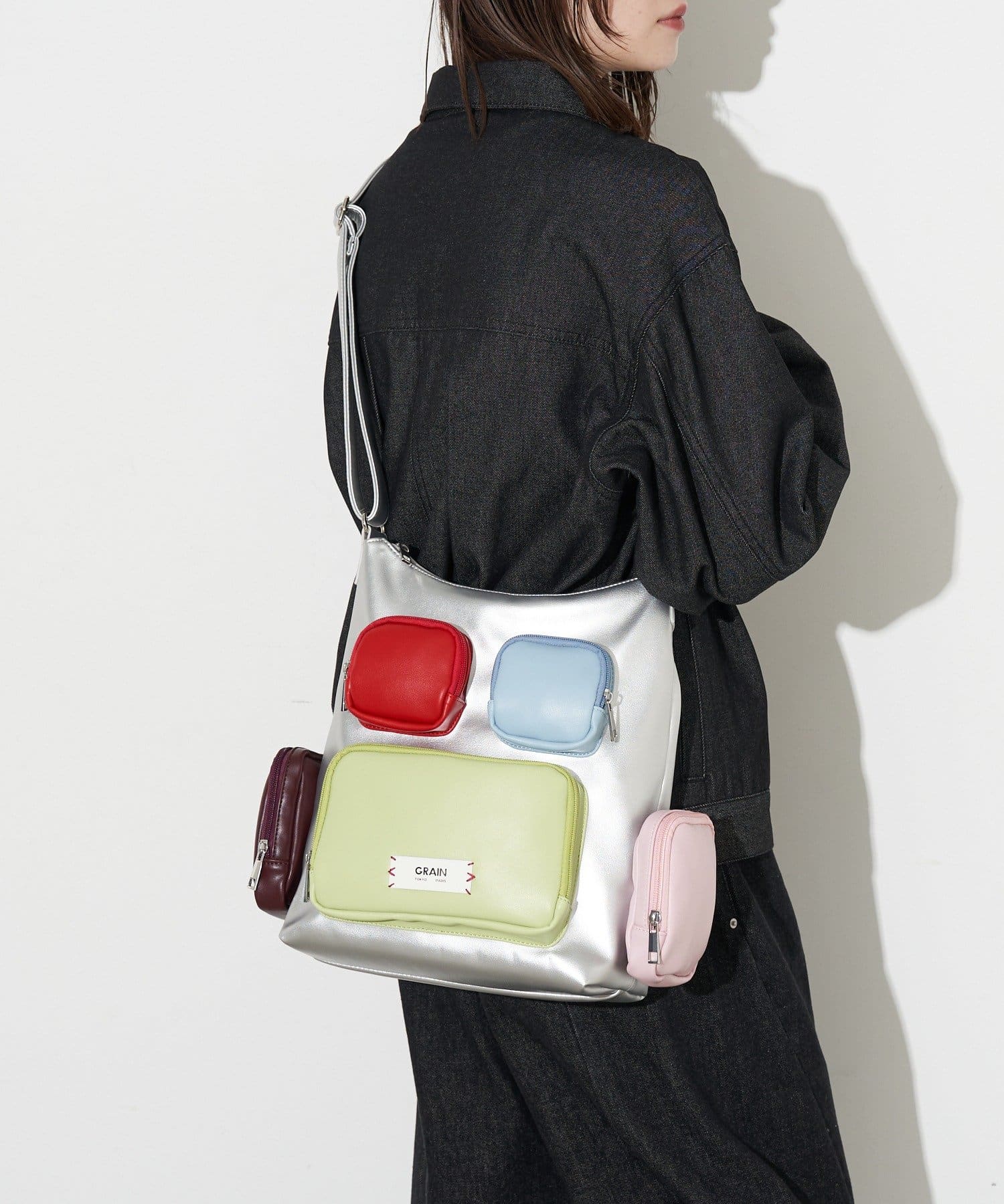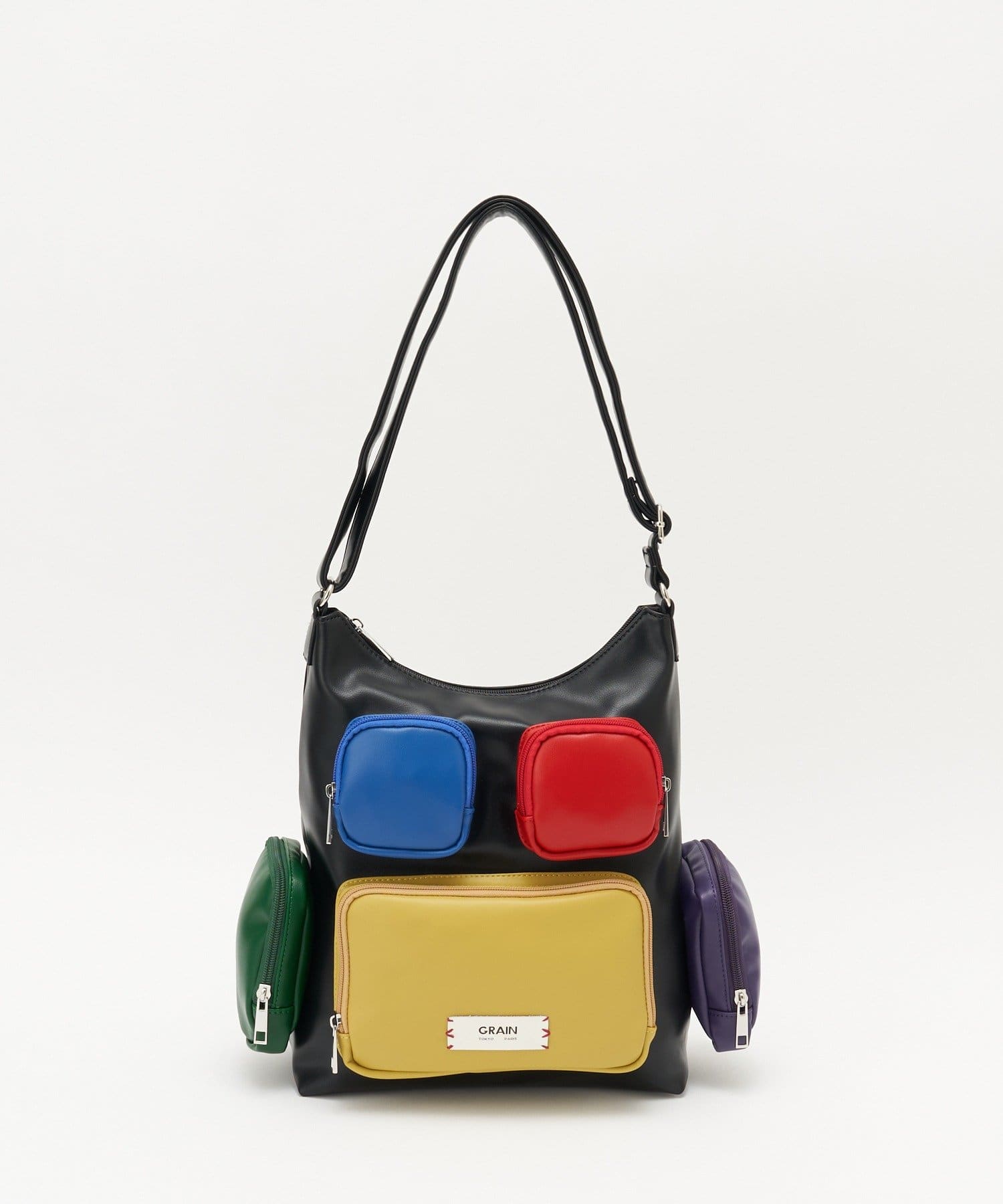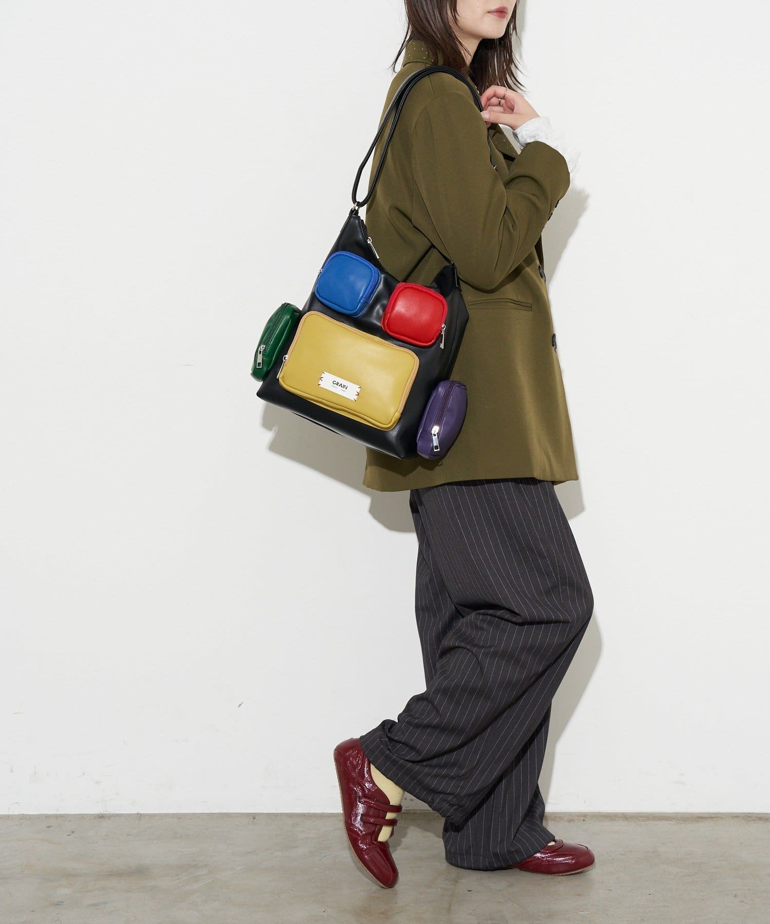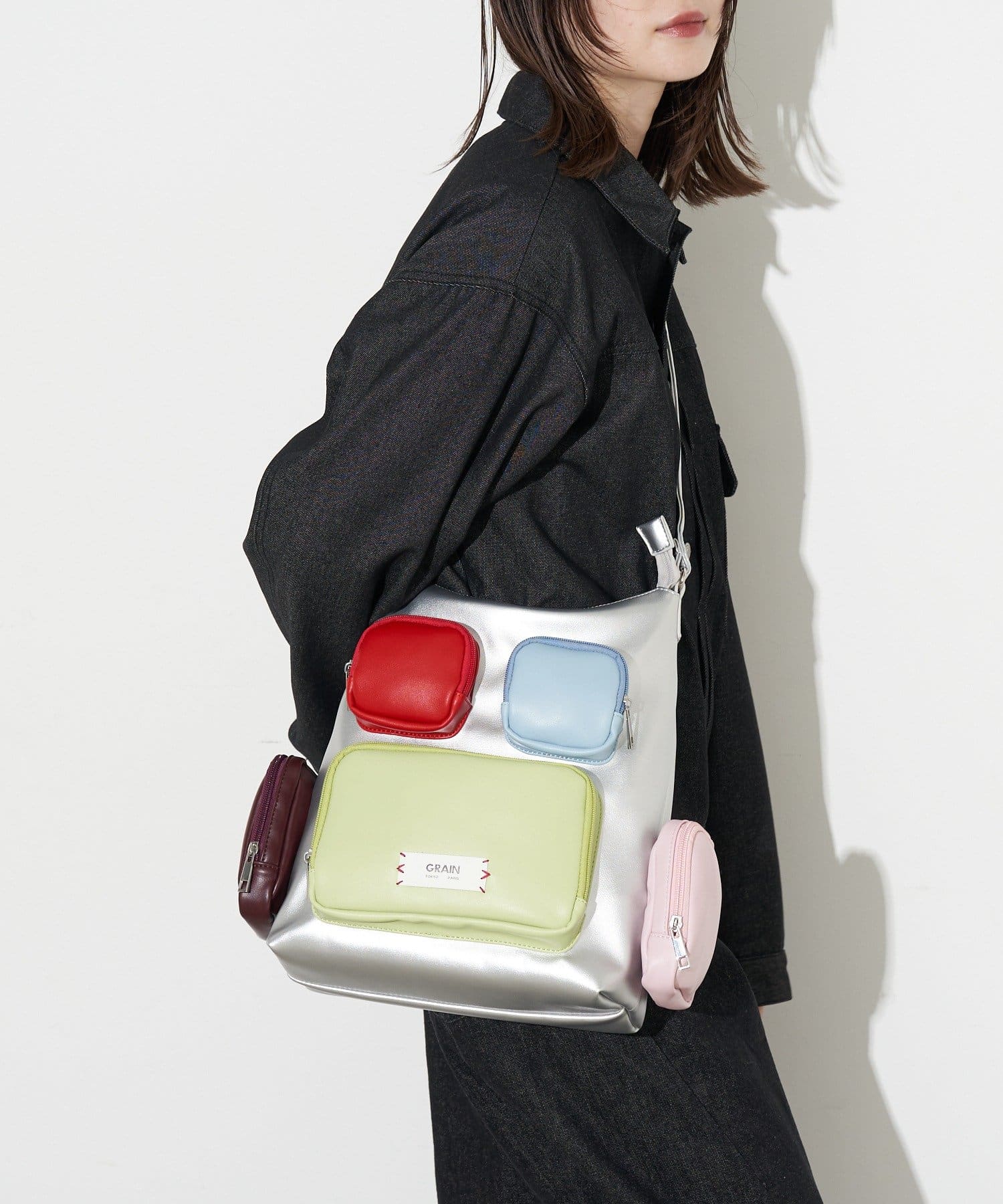 遊び心あるカラーポケットが目を引くマルチショルダーバッグ。