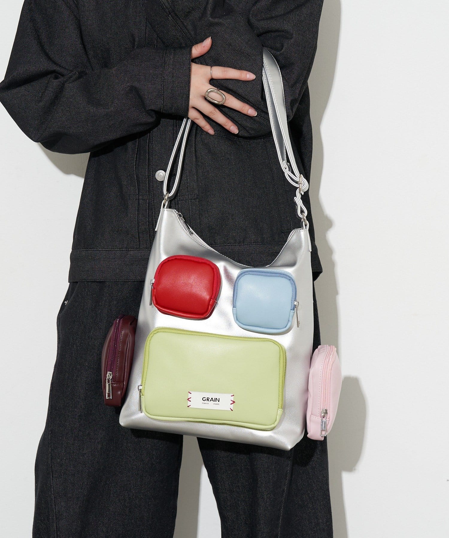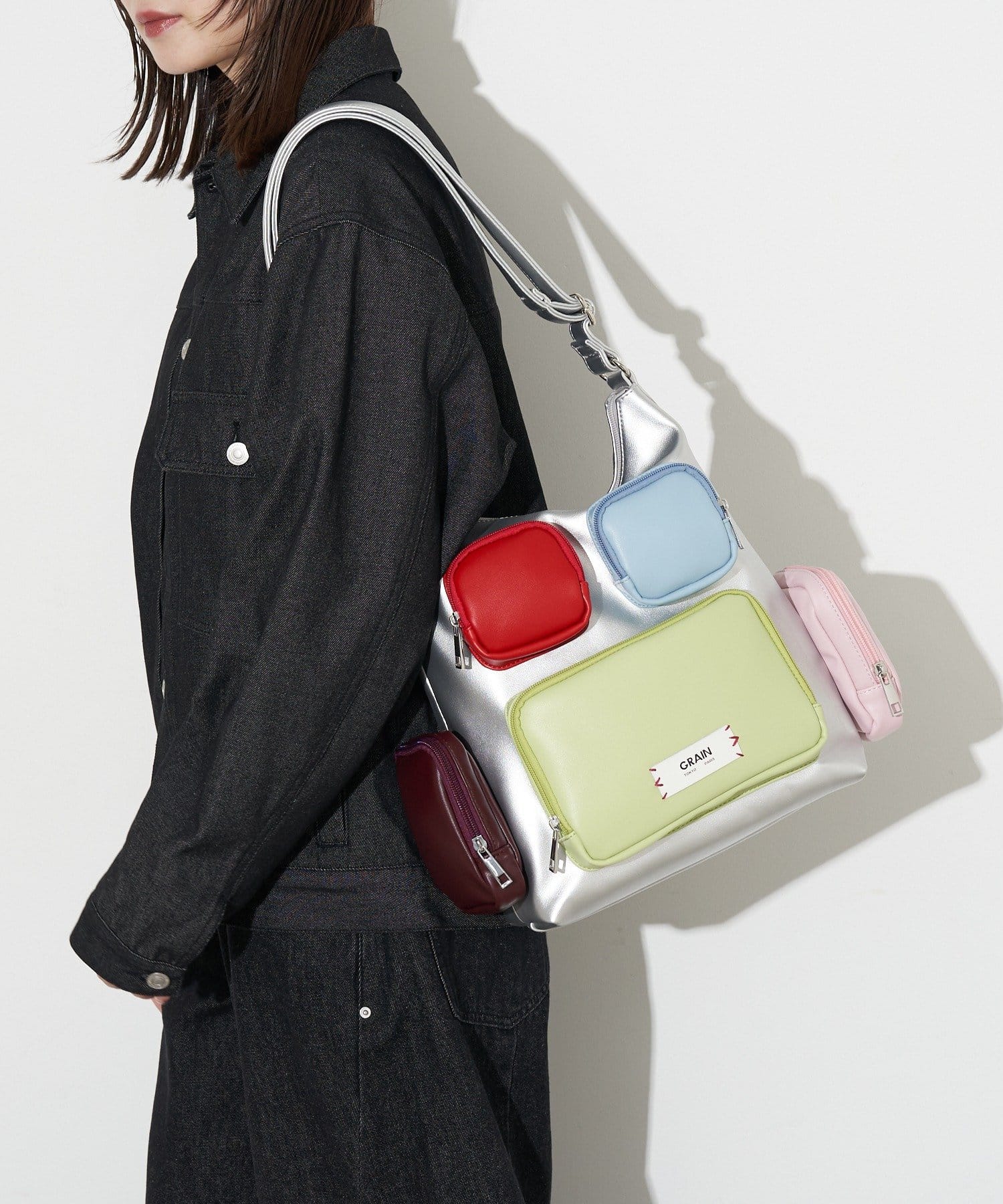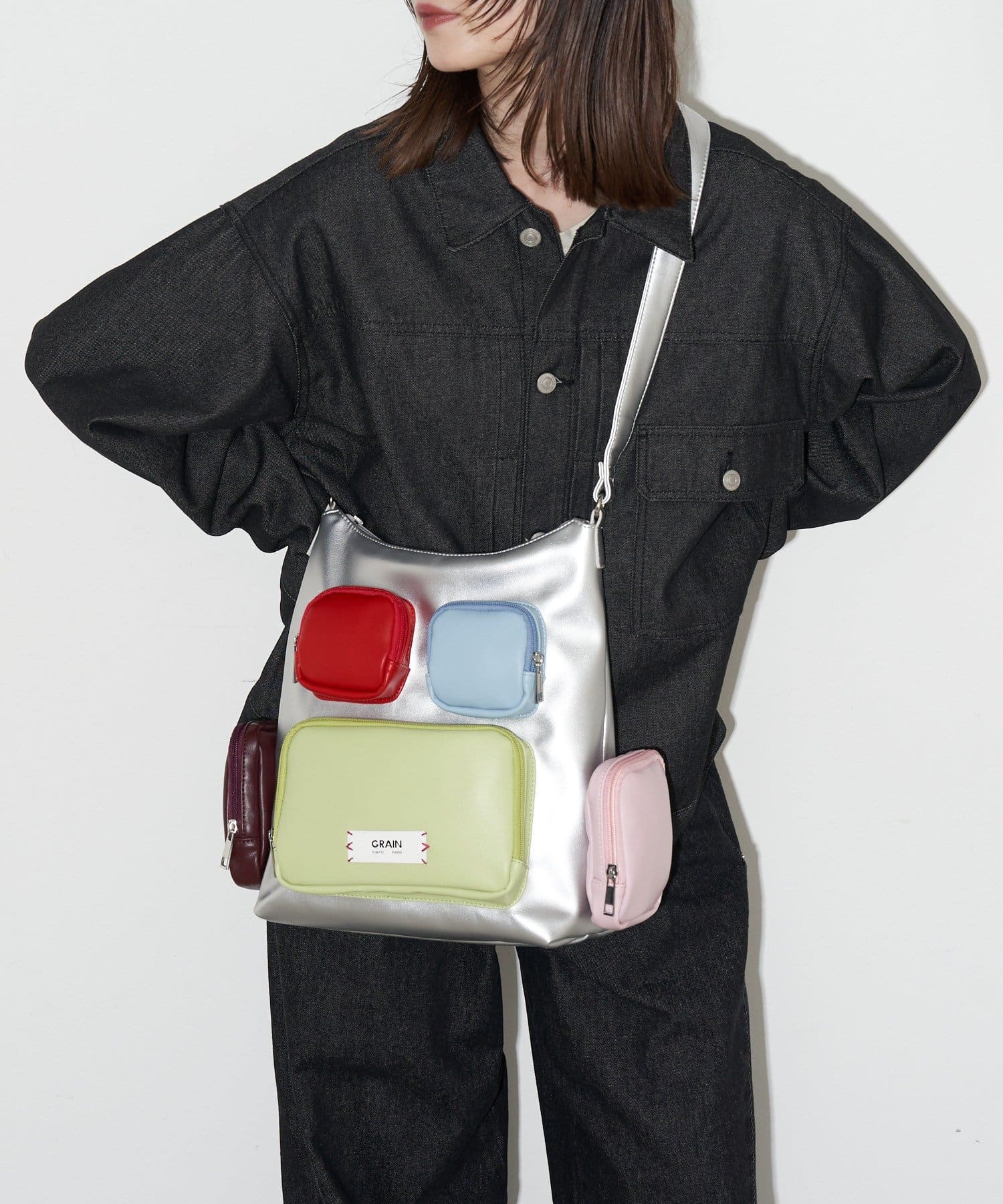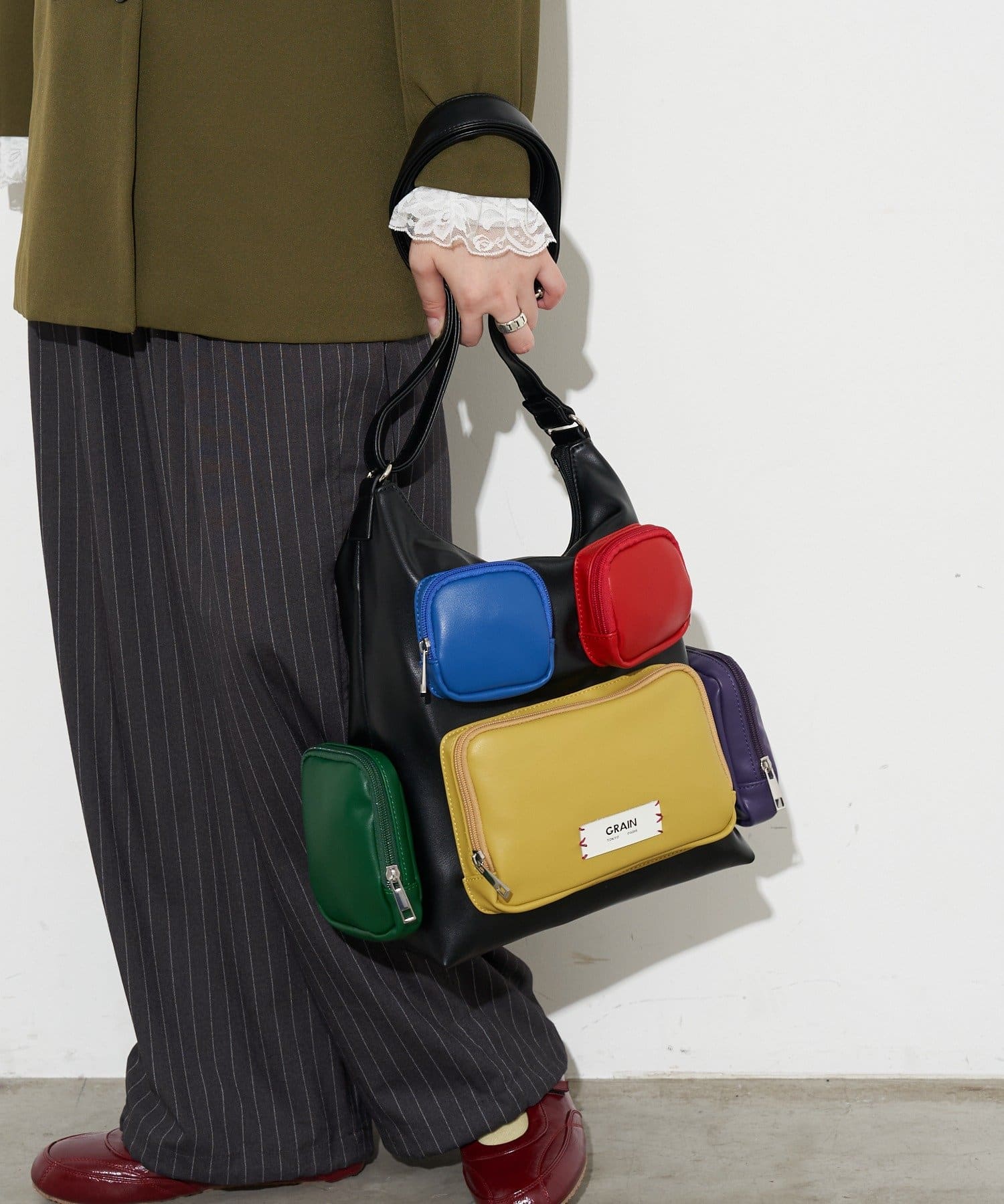 遊び心あるカラーポケットが目を引くマルチショルダーバッグ。