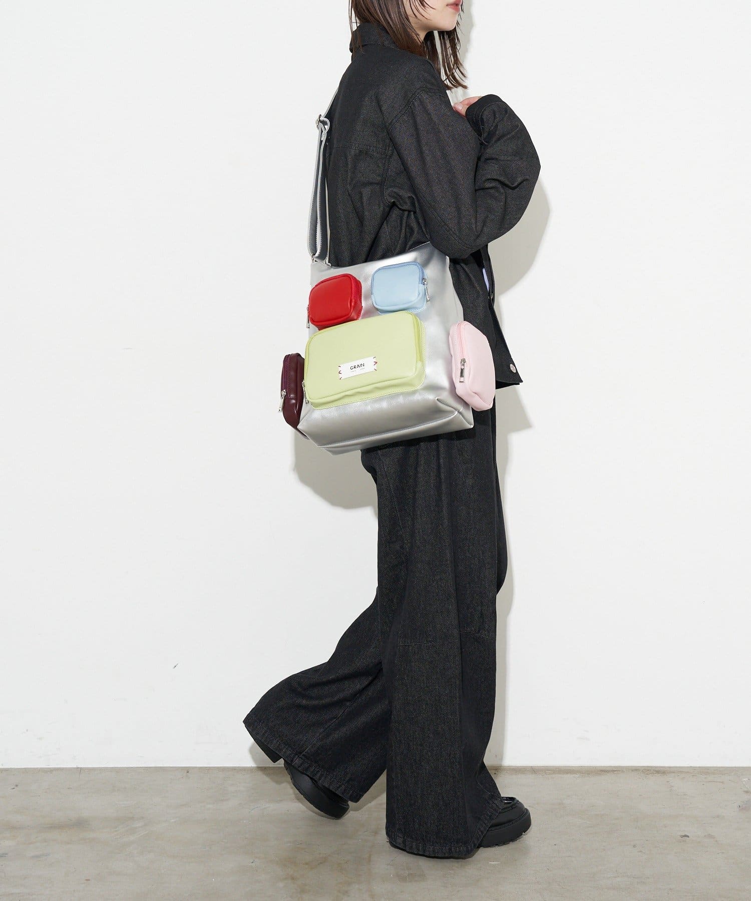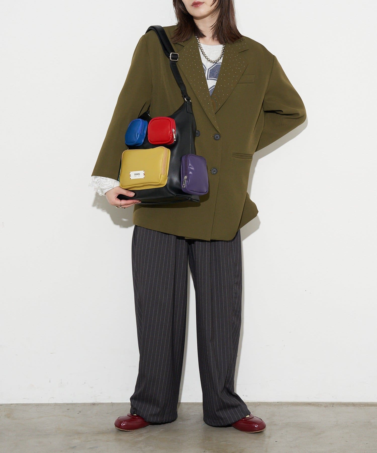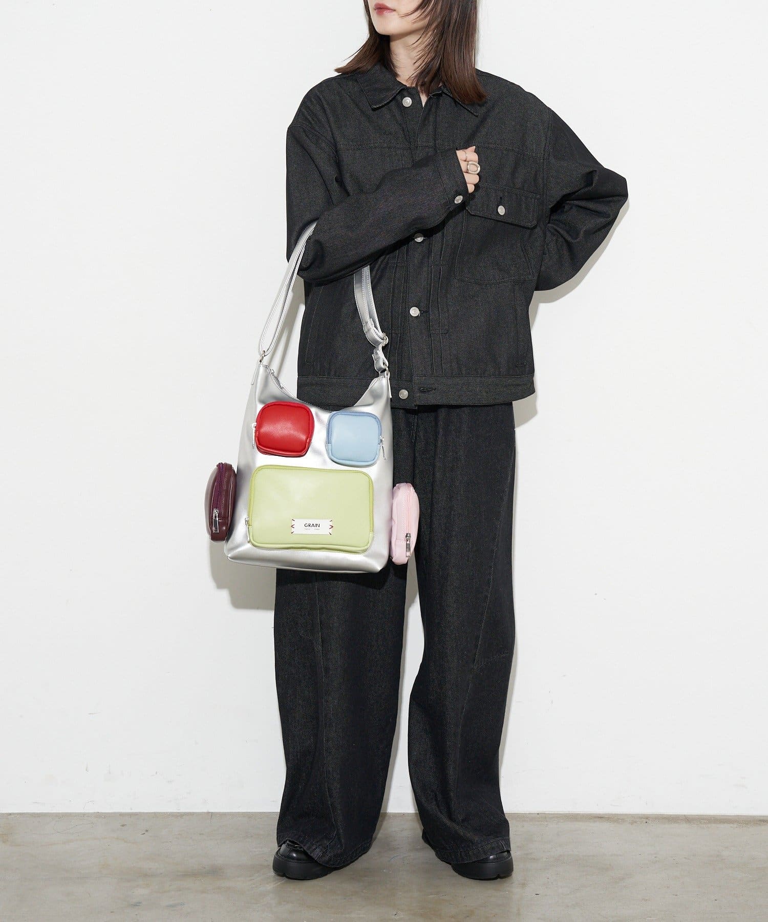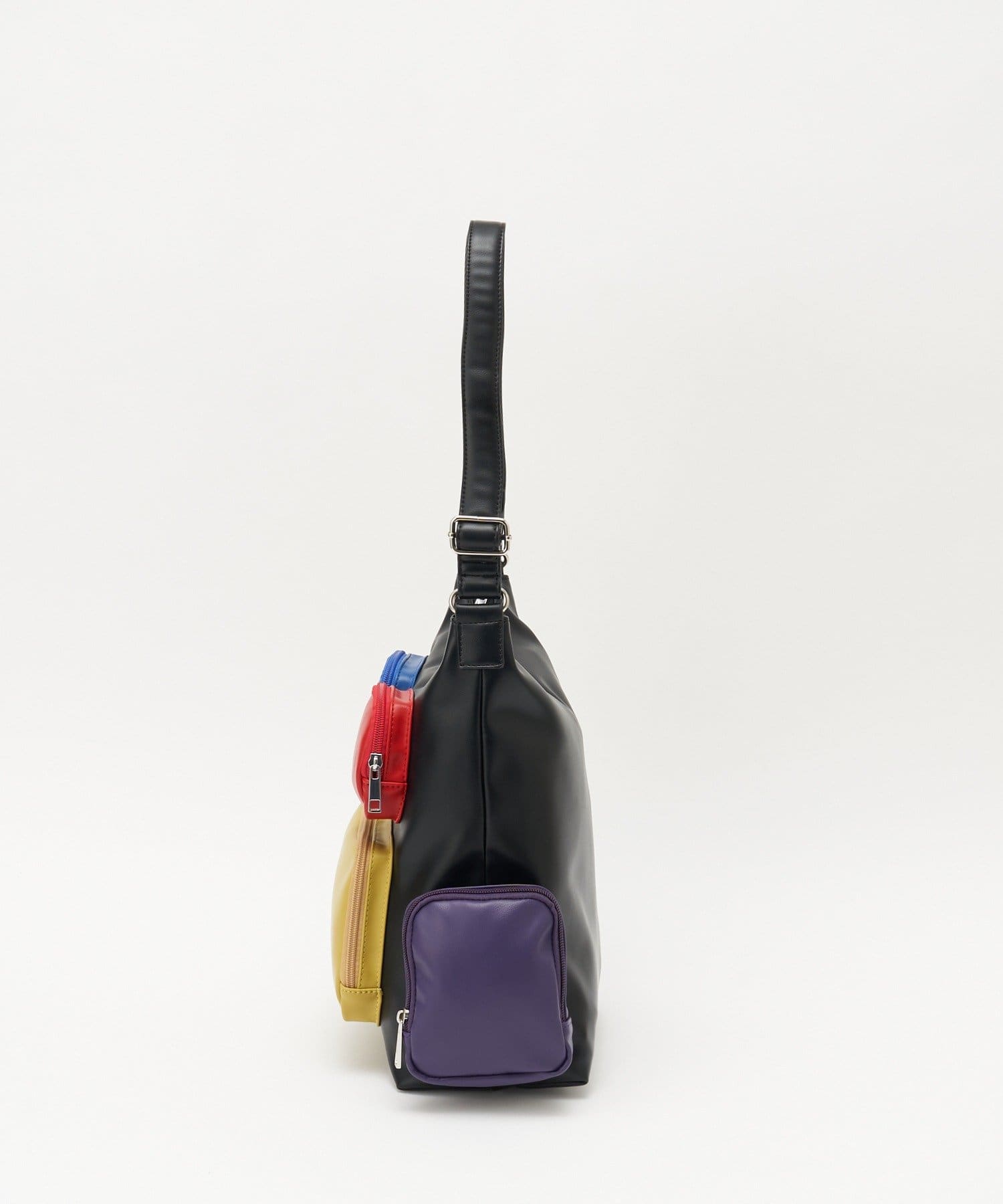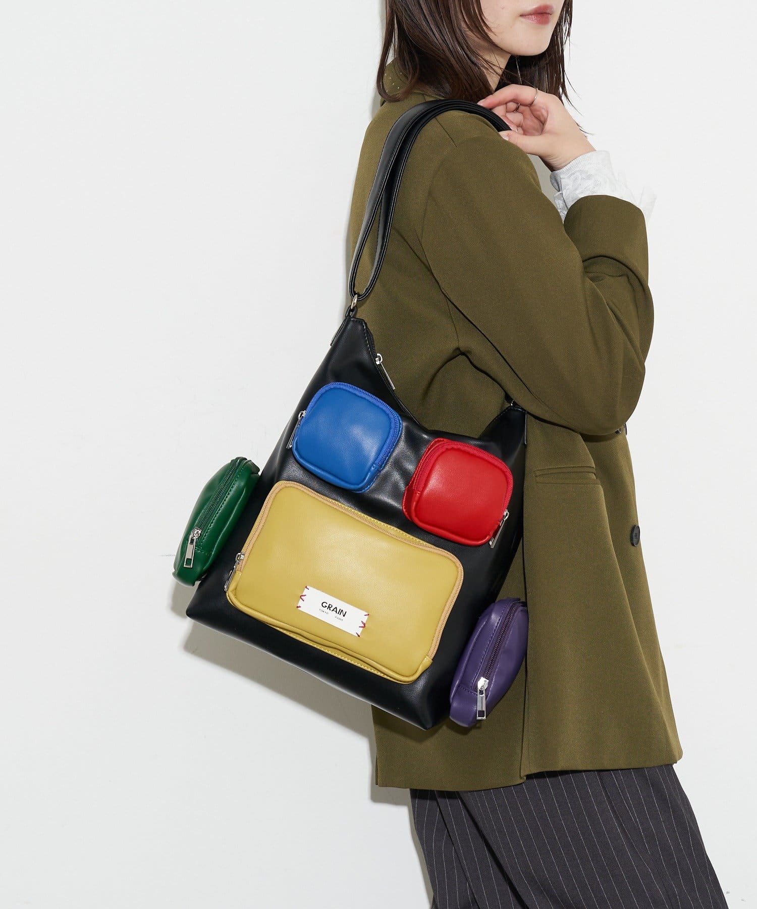 遊び心あるカラーポケットが目を引くマルチショルダーバッグ。