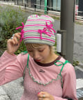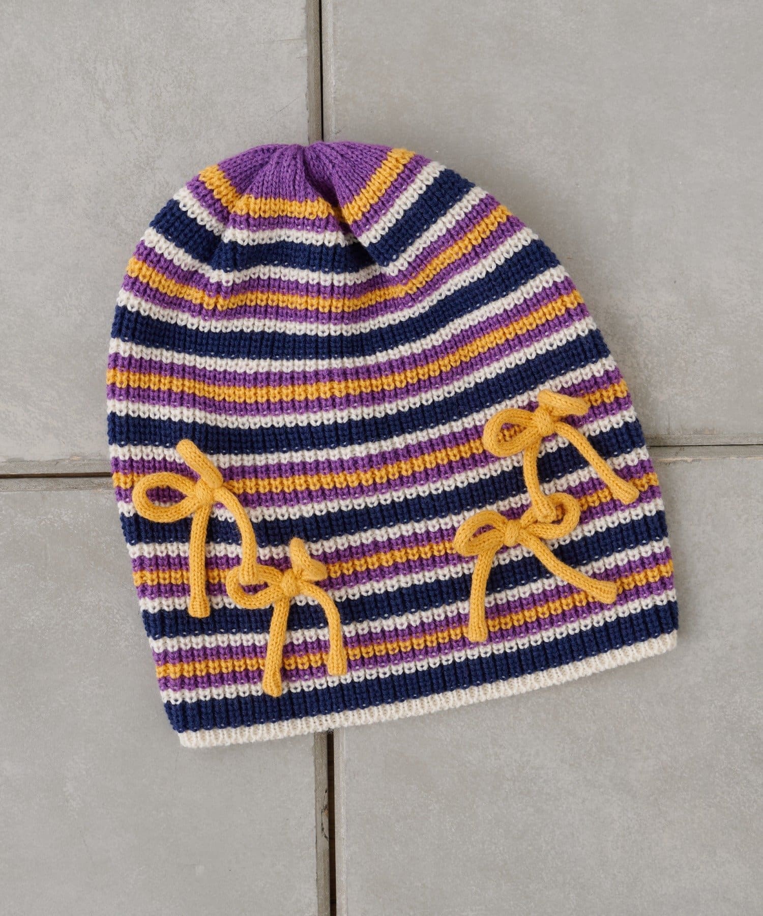 【HELLO.SANFRANCISCO/ハローサンフランシスコ】リボン付きマルチボーダービーニー帽