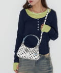 ドット柄が目を惹く、チャーム付きバイカラーミニショルダー。
