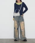 メタル×パールのチャームが上品なポイントになり、ガーリーなドット柄を大人っぽく引き締めてくれます。