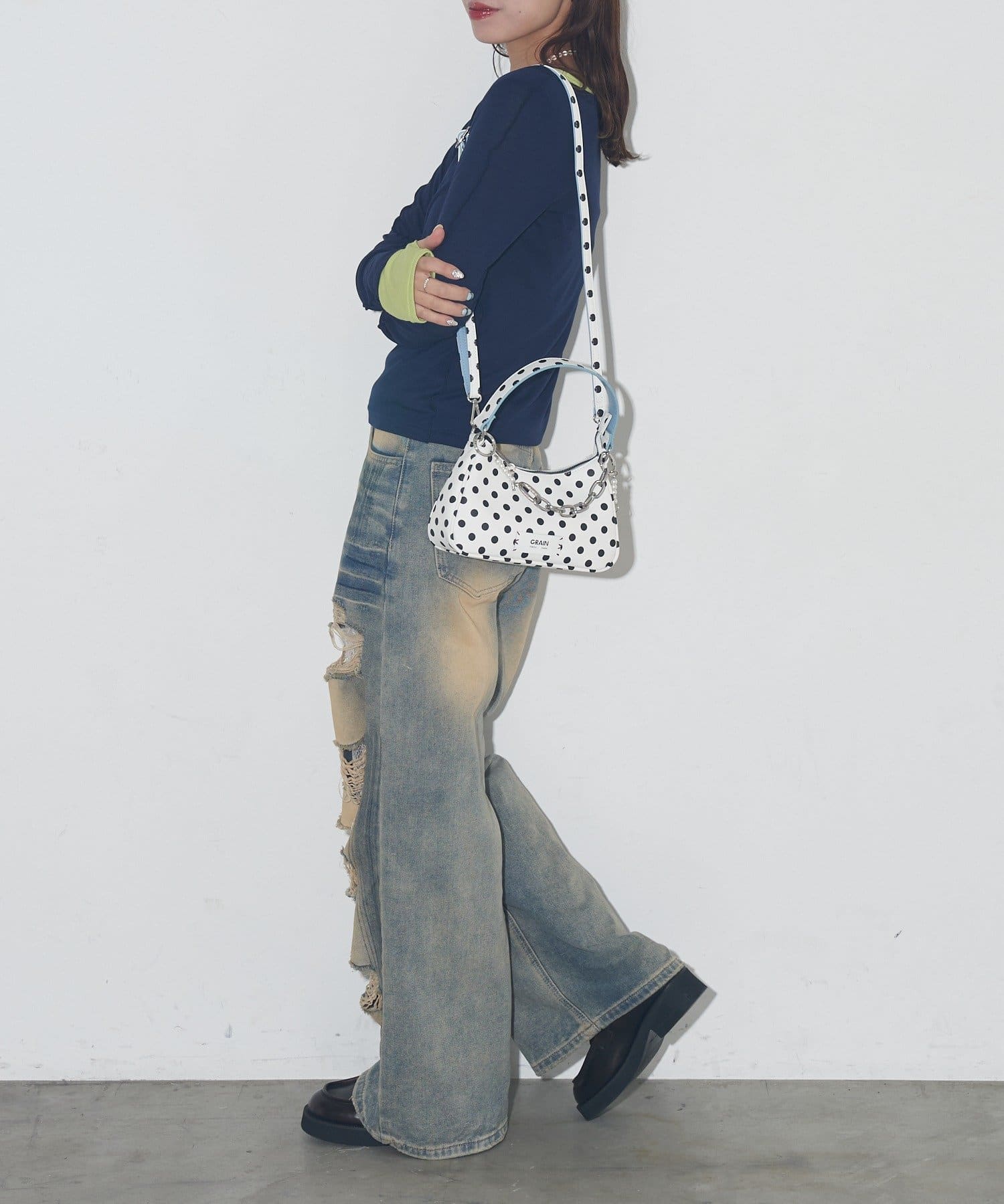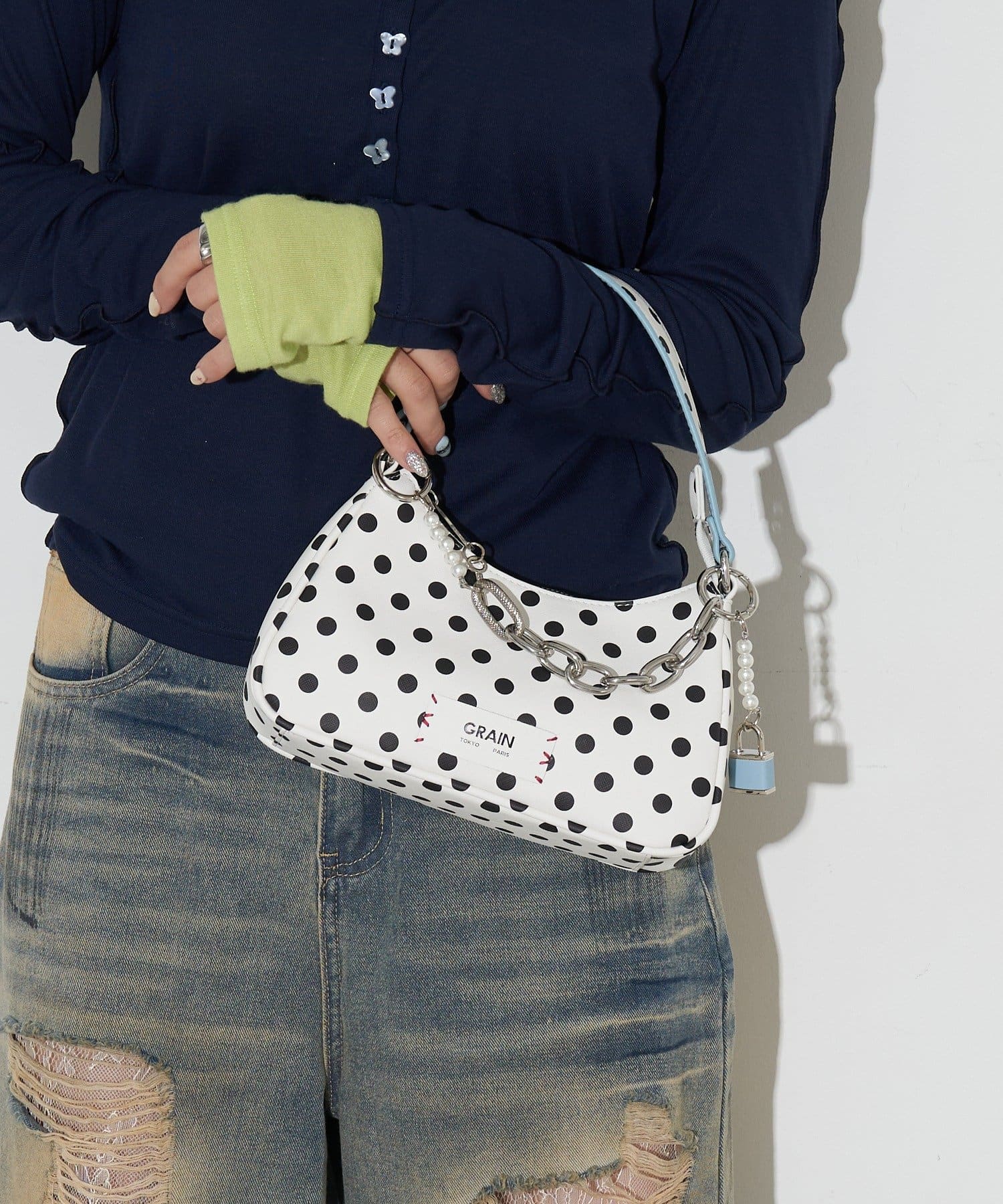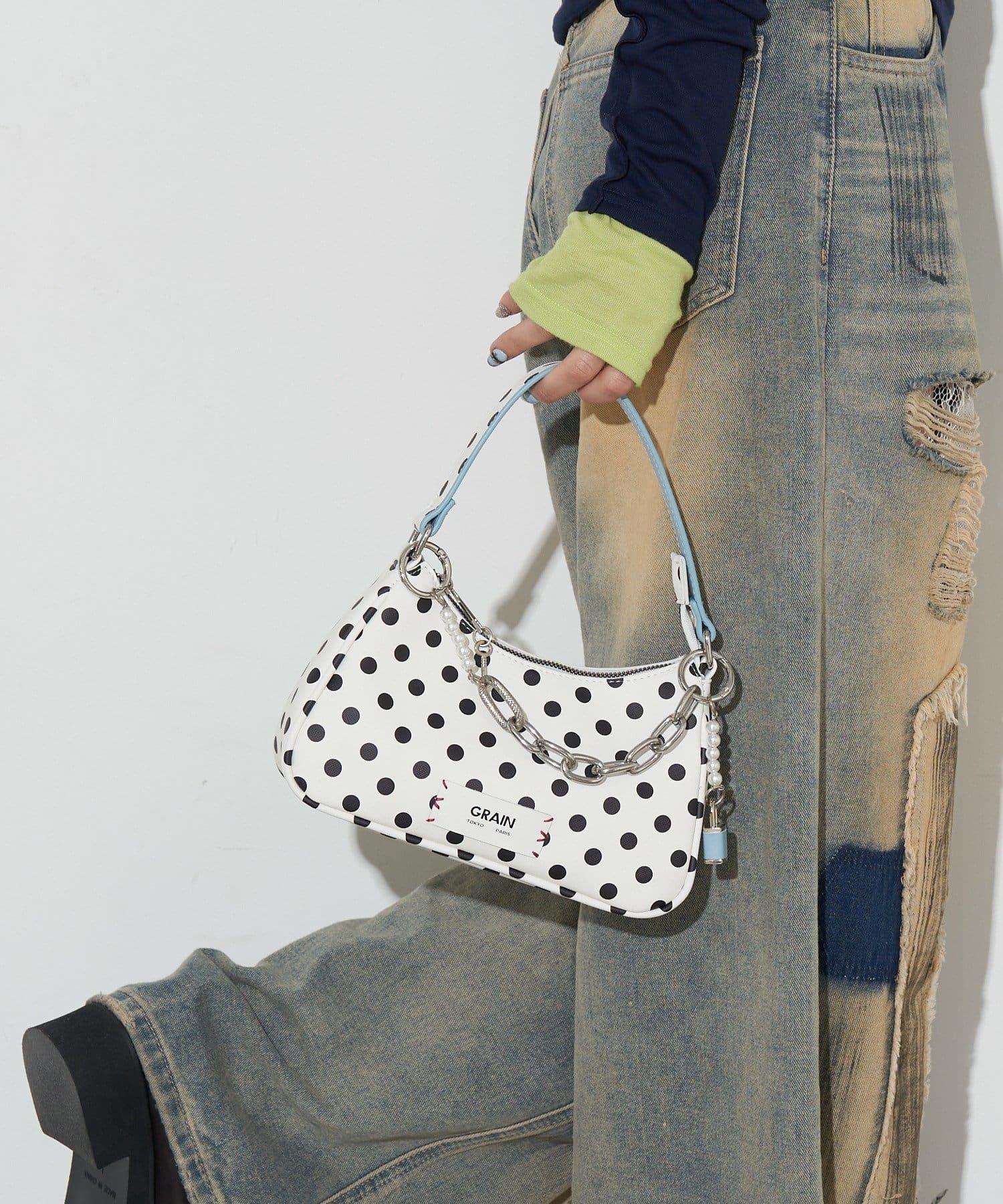 【GRAIN/グレイン】チャーム付き水玉2WAYハンドバック