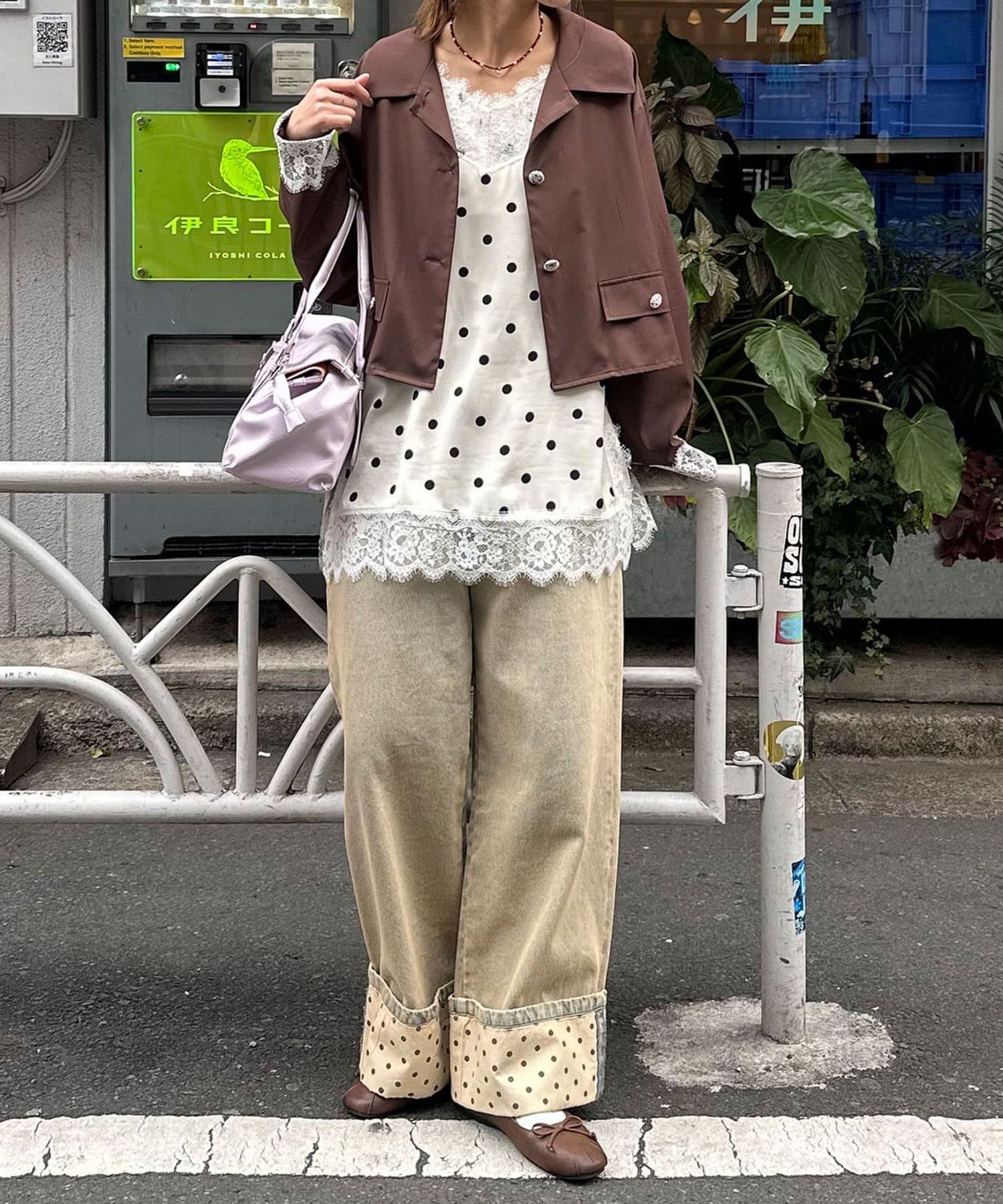 ロールアップドットワイドデニムパンツ
