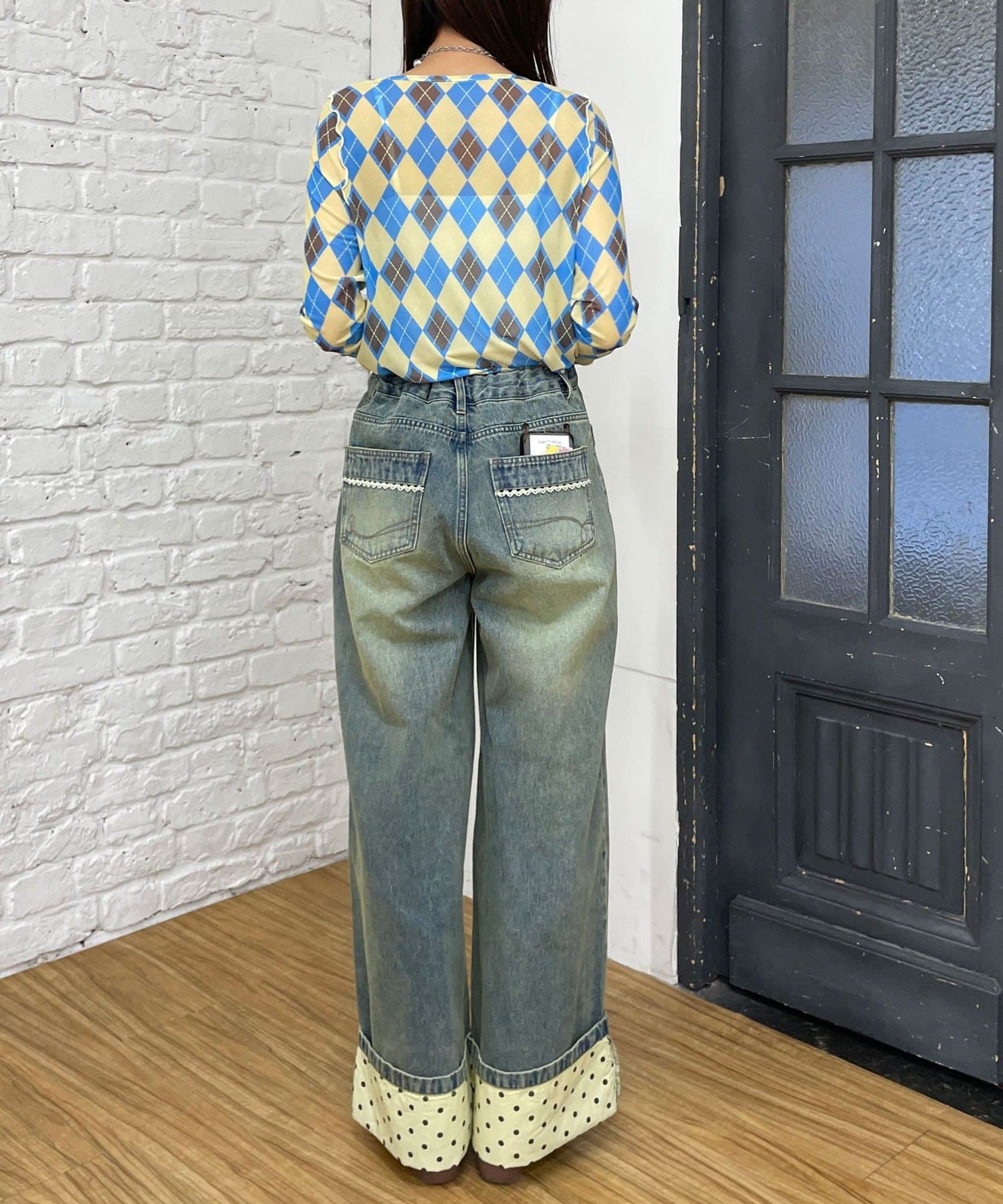 アーガイル柄メローシアートップス