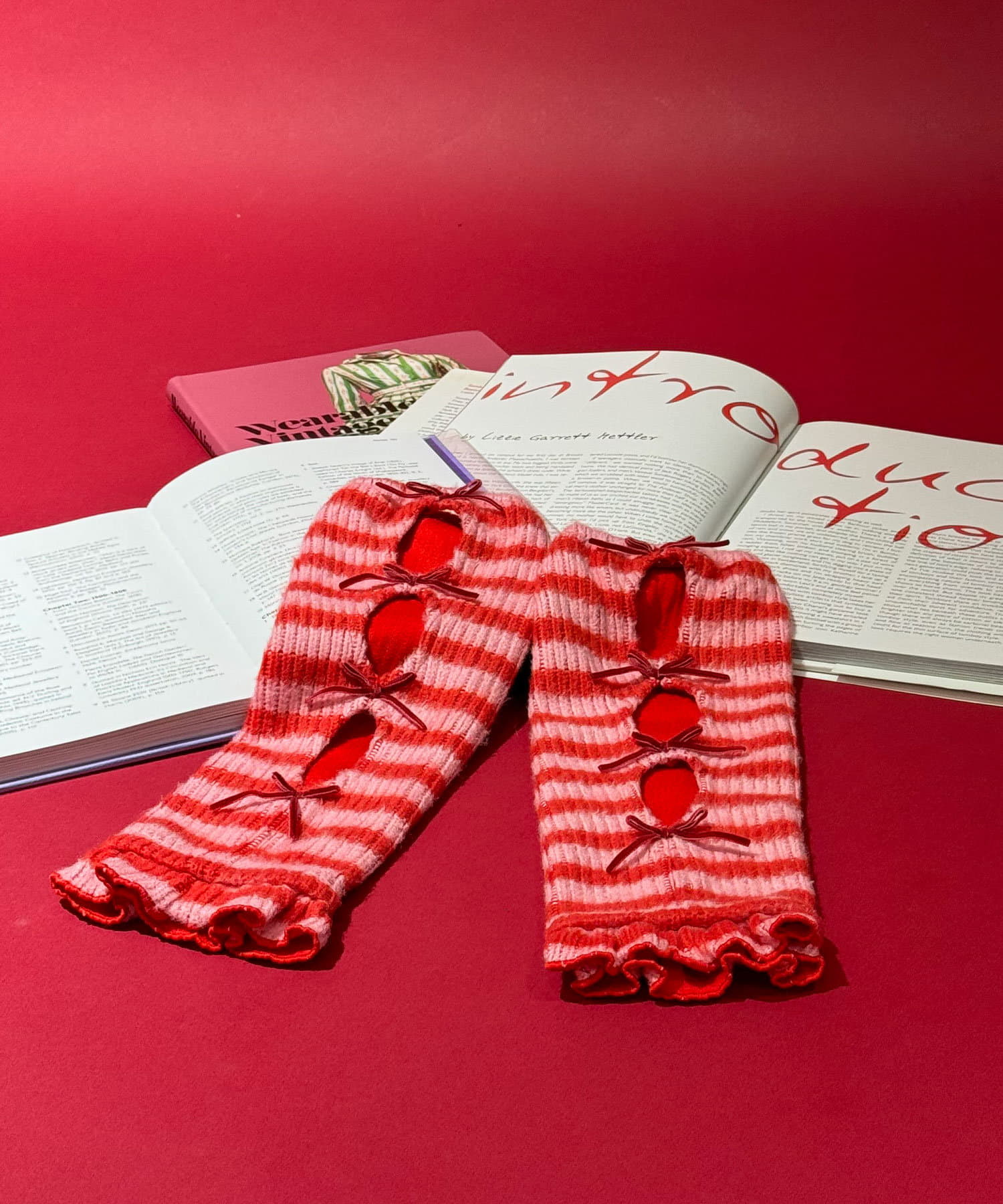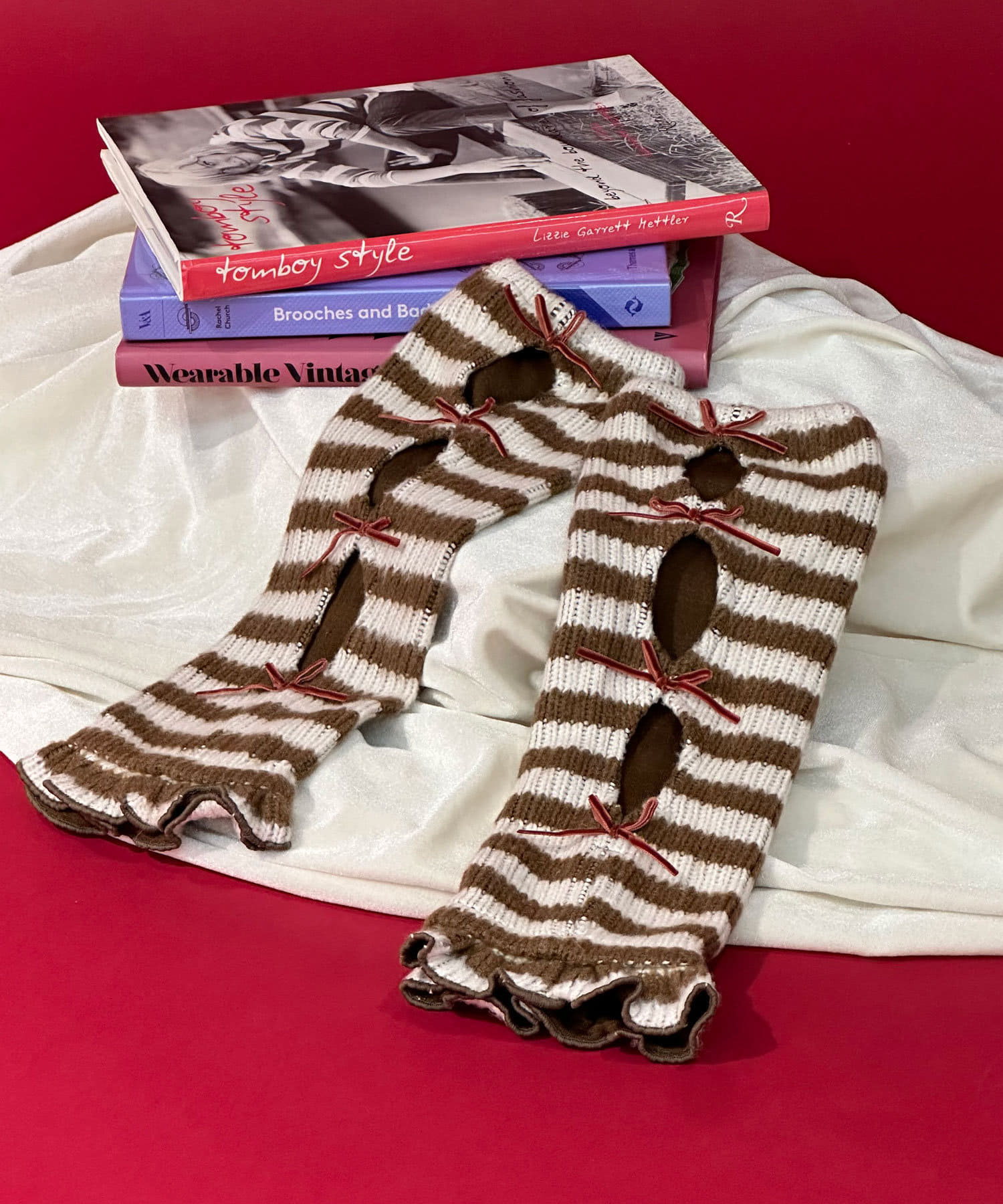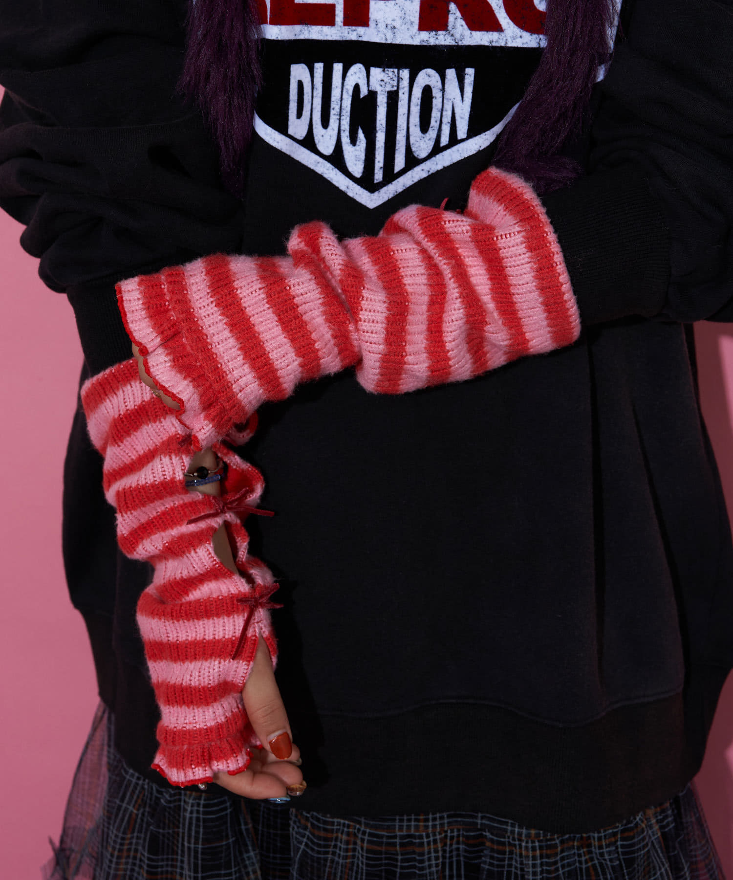 【@yuna_maruu企画】【Me+Me/ミープラスミー】ボーダーリボンアームウォーマ