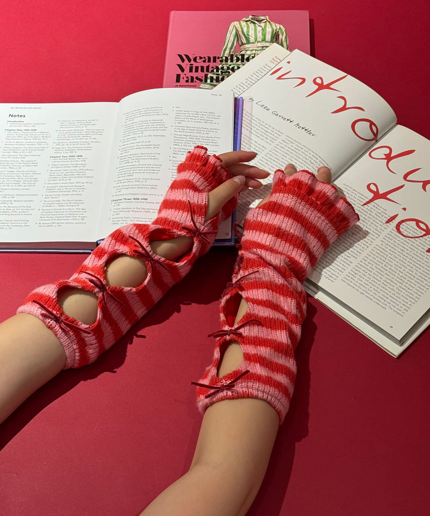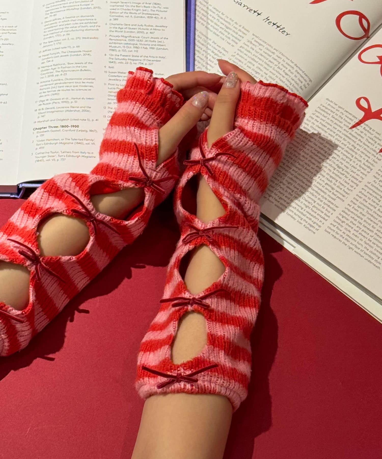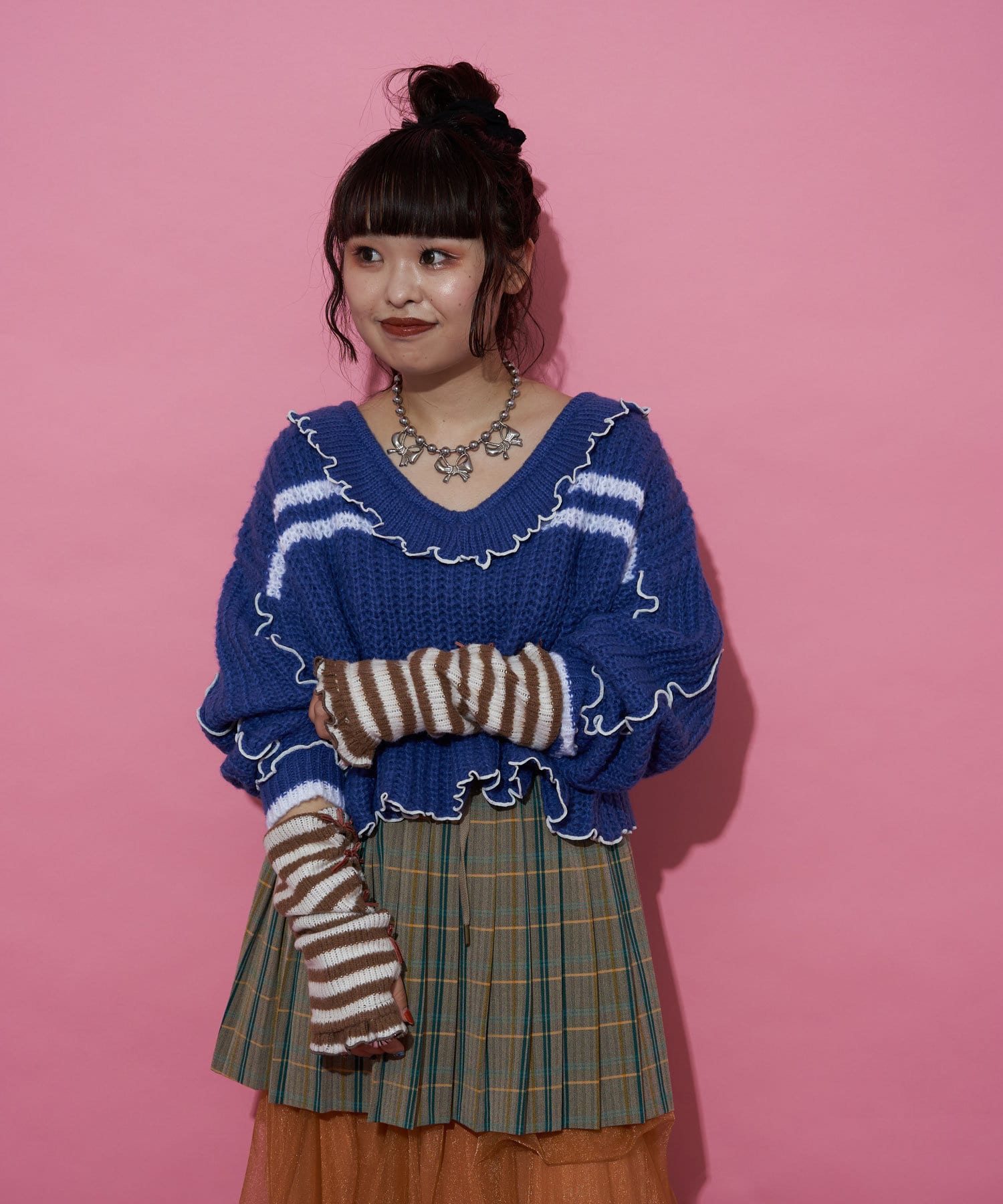 【@yuna_maruu企画】【Me+Me/ミープラスミー】ボーダーリボンアームウォーマ