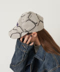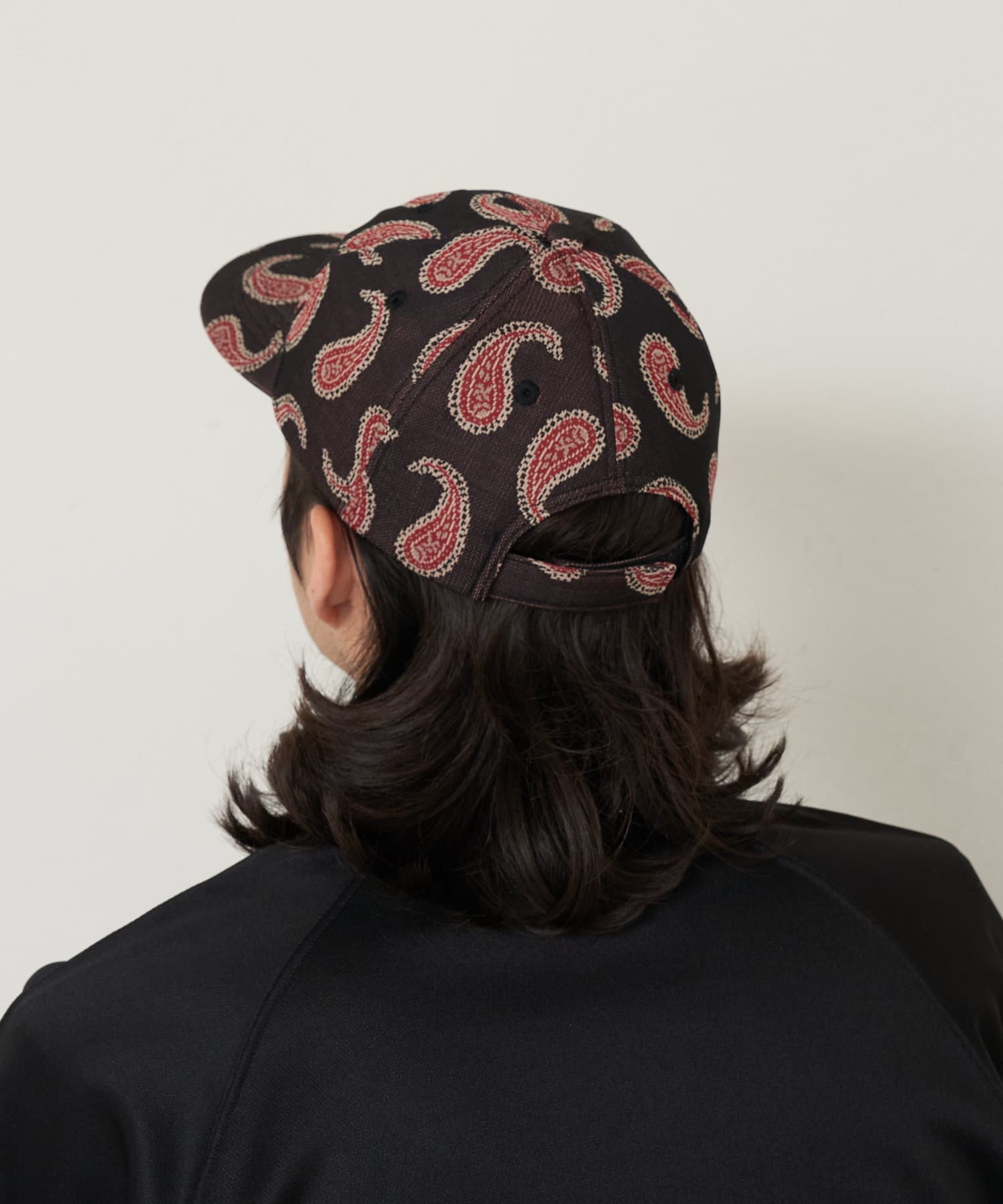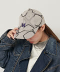 今シーズンのコレクションで採用されている、オリジナルのジャカード素材で制作されたベースボールキャップ。フロント中央にはパピヨン(蝶)の刺繍がアクセントとして施されています。バックにベルクロのベルトが取り付けられ、フリーでサイズ調整が可能な仕様にアップデートされています。