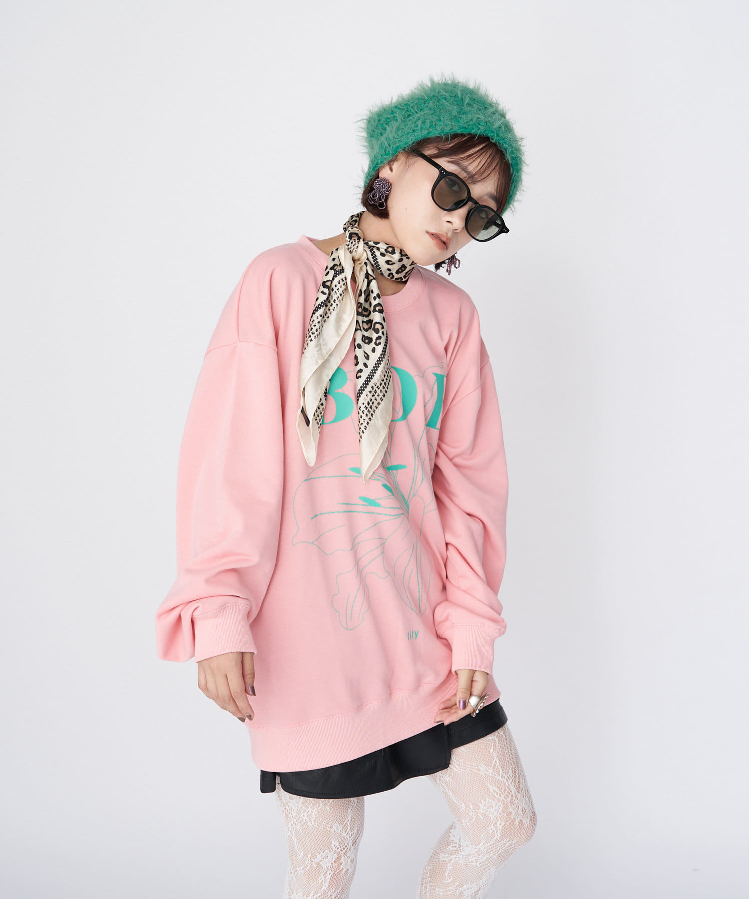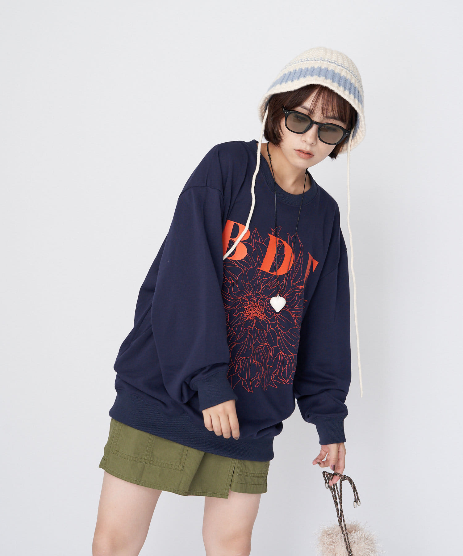 華やかなフラワープリントが目を惹く、リラックス感たっぷりのオーバースウェット。