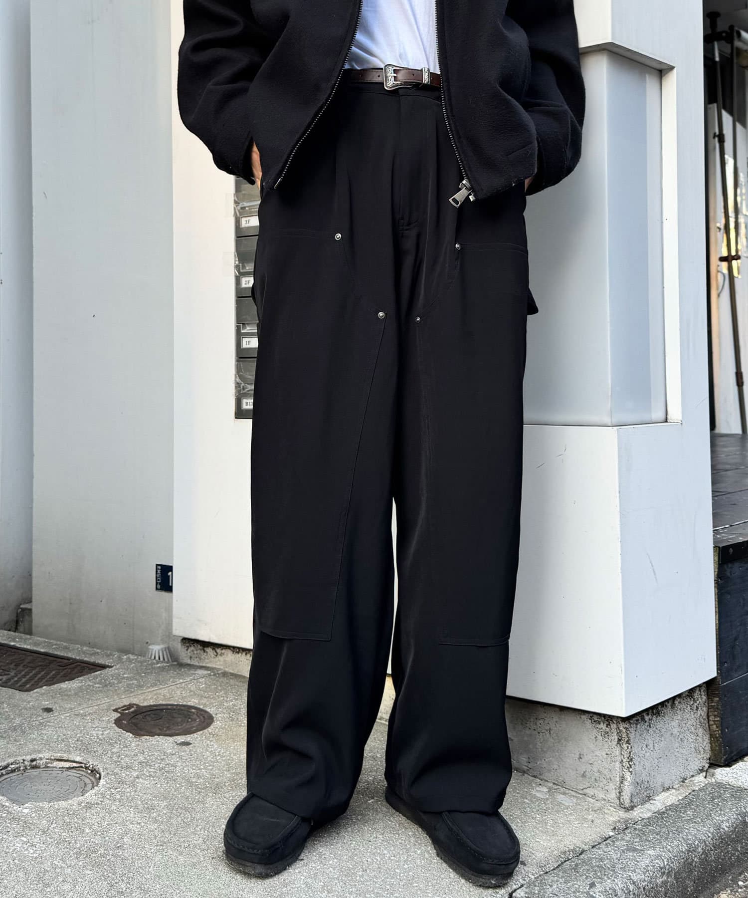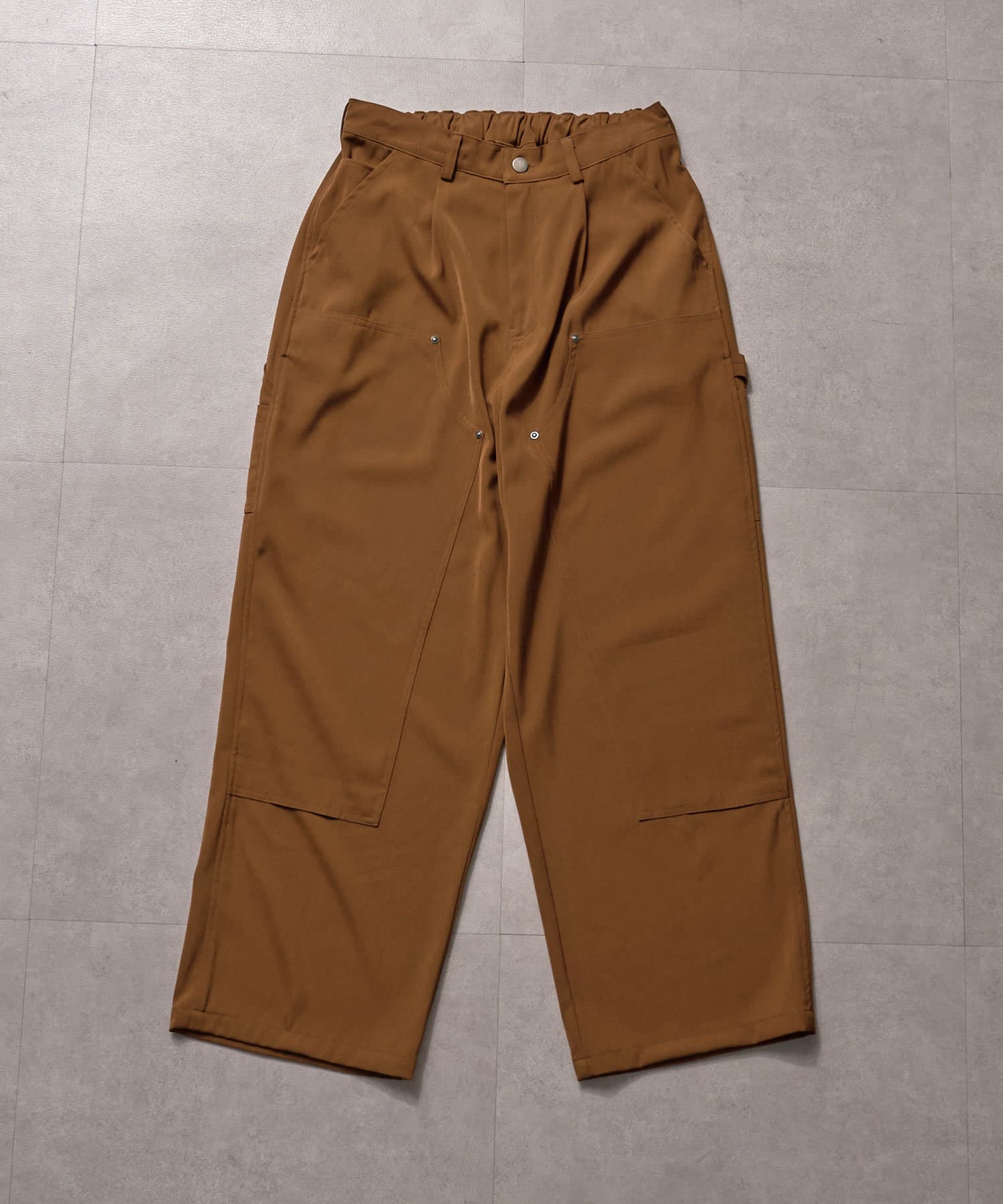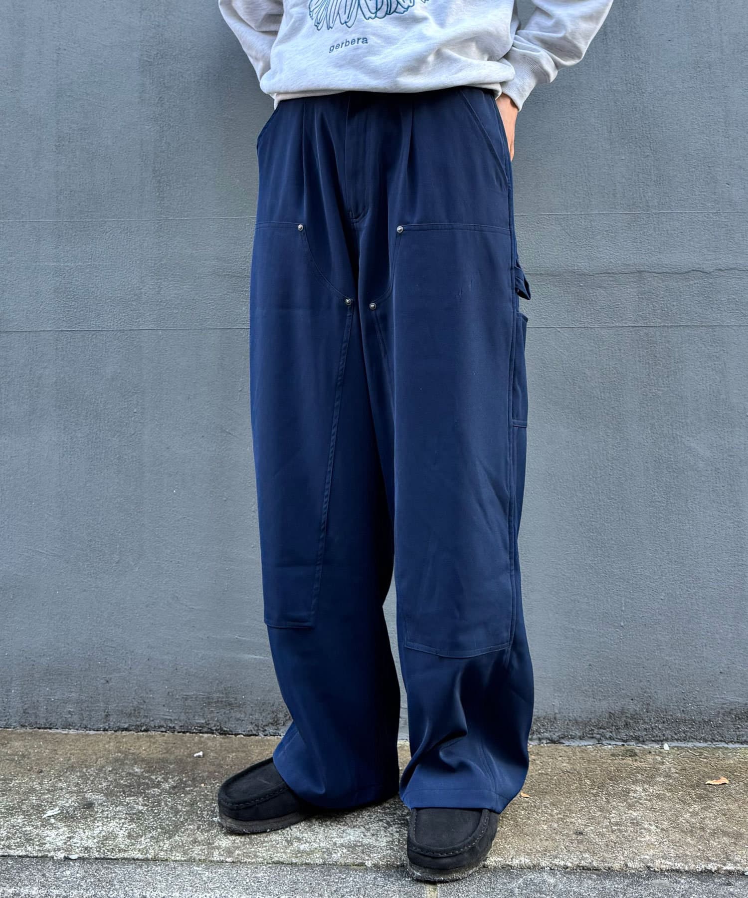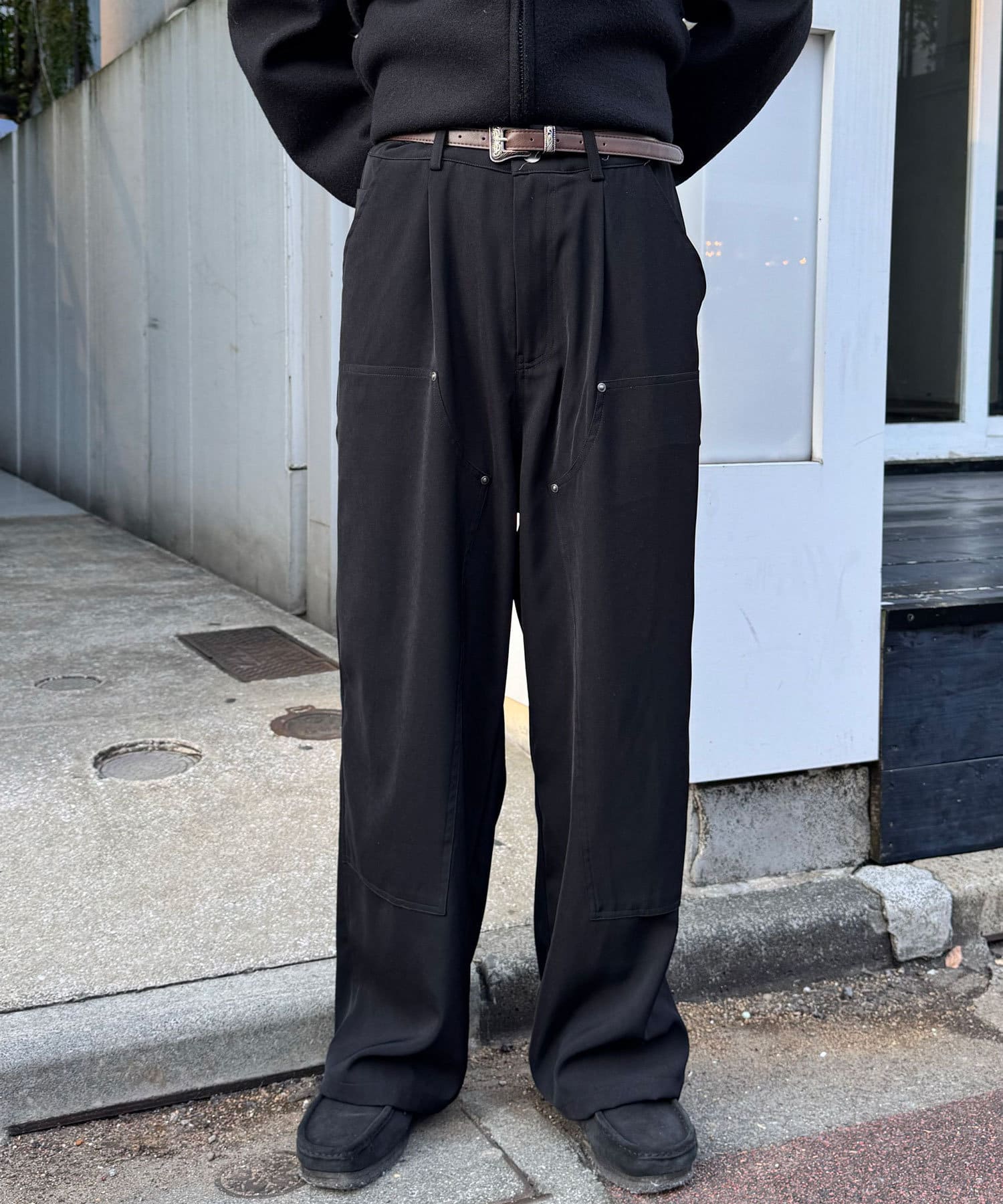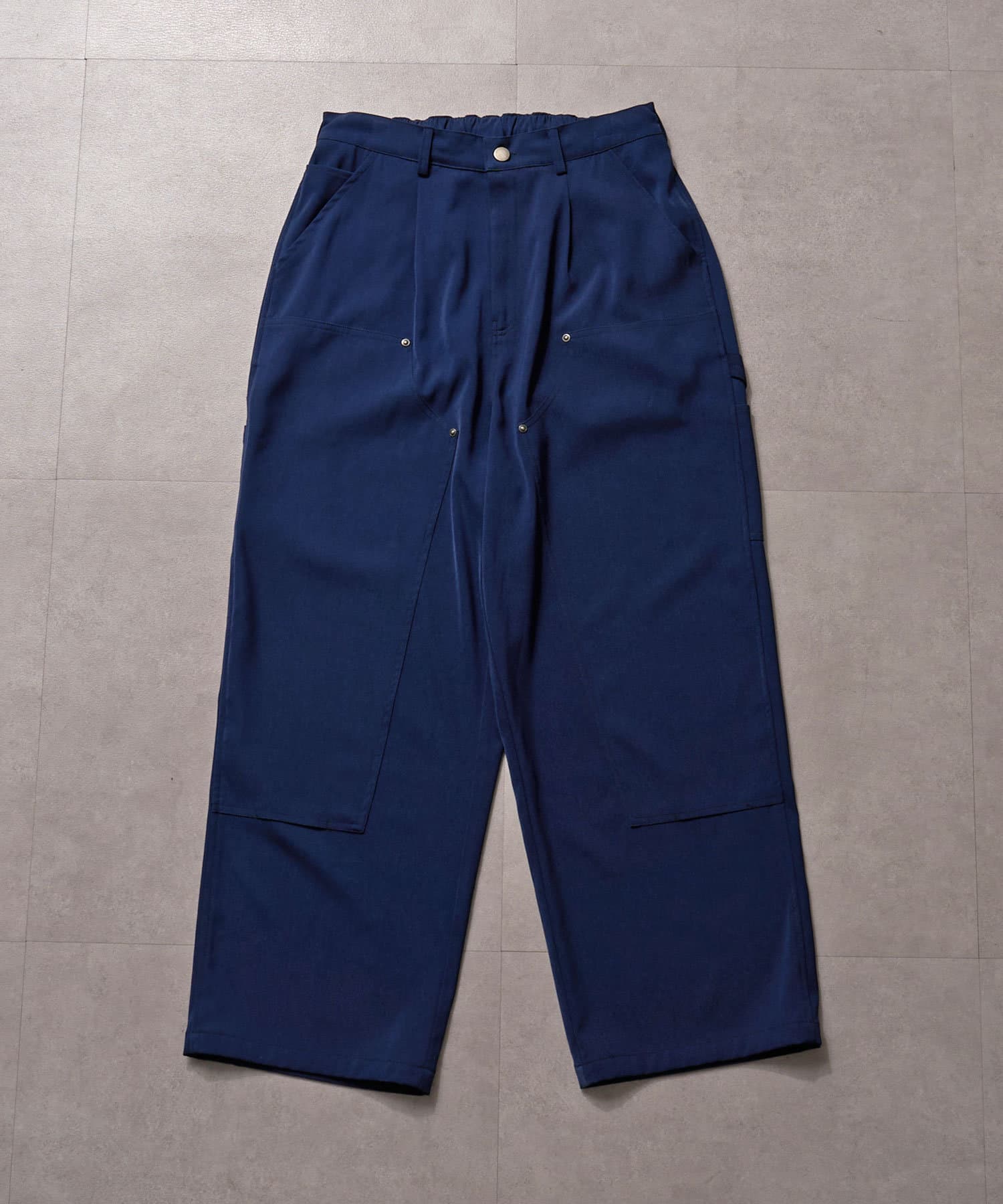 ワークウェアの象徴ともいえるペインターパンツのディテールを取り入れた、ダブルニースラックス。