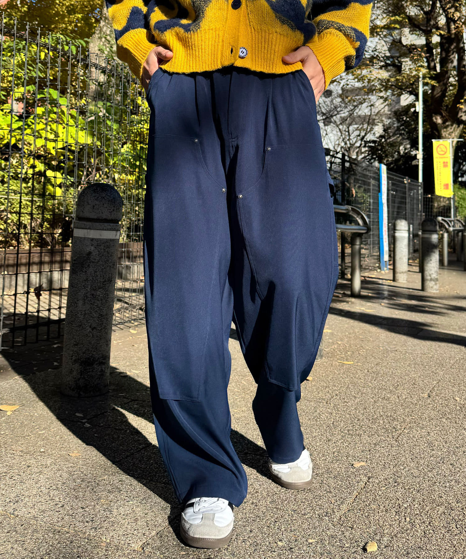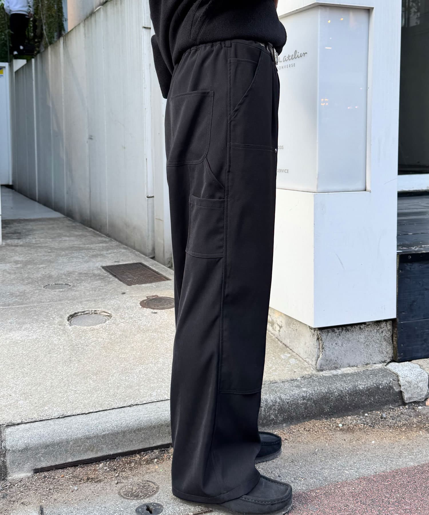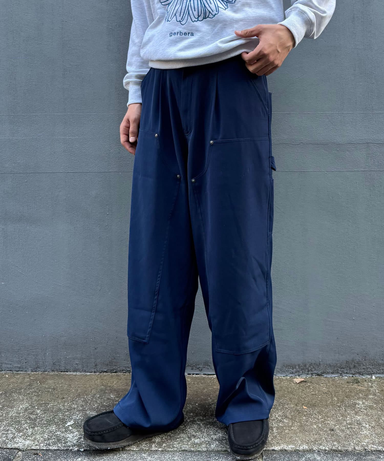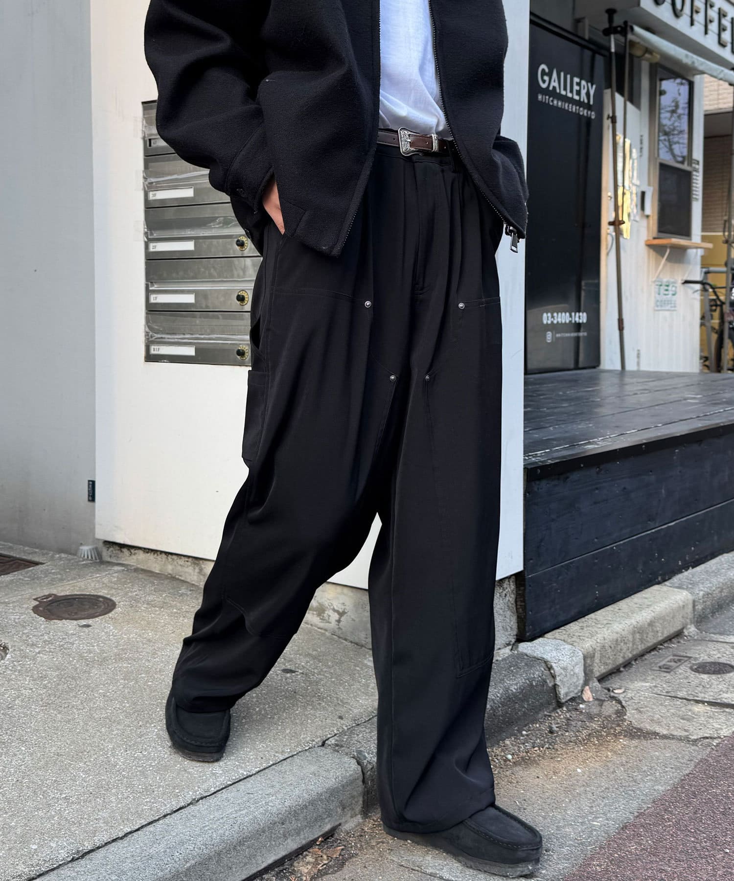 ワークウェアの象徴ともいえるペインターパンツのディテールを取り入れた、ダブルニースラックス。