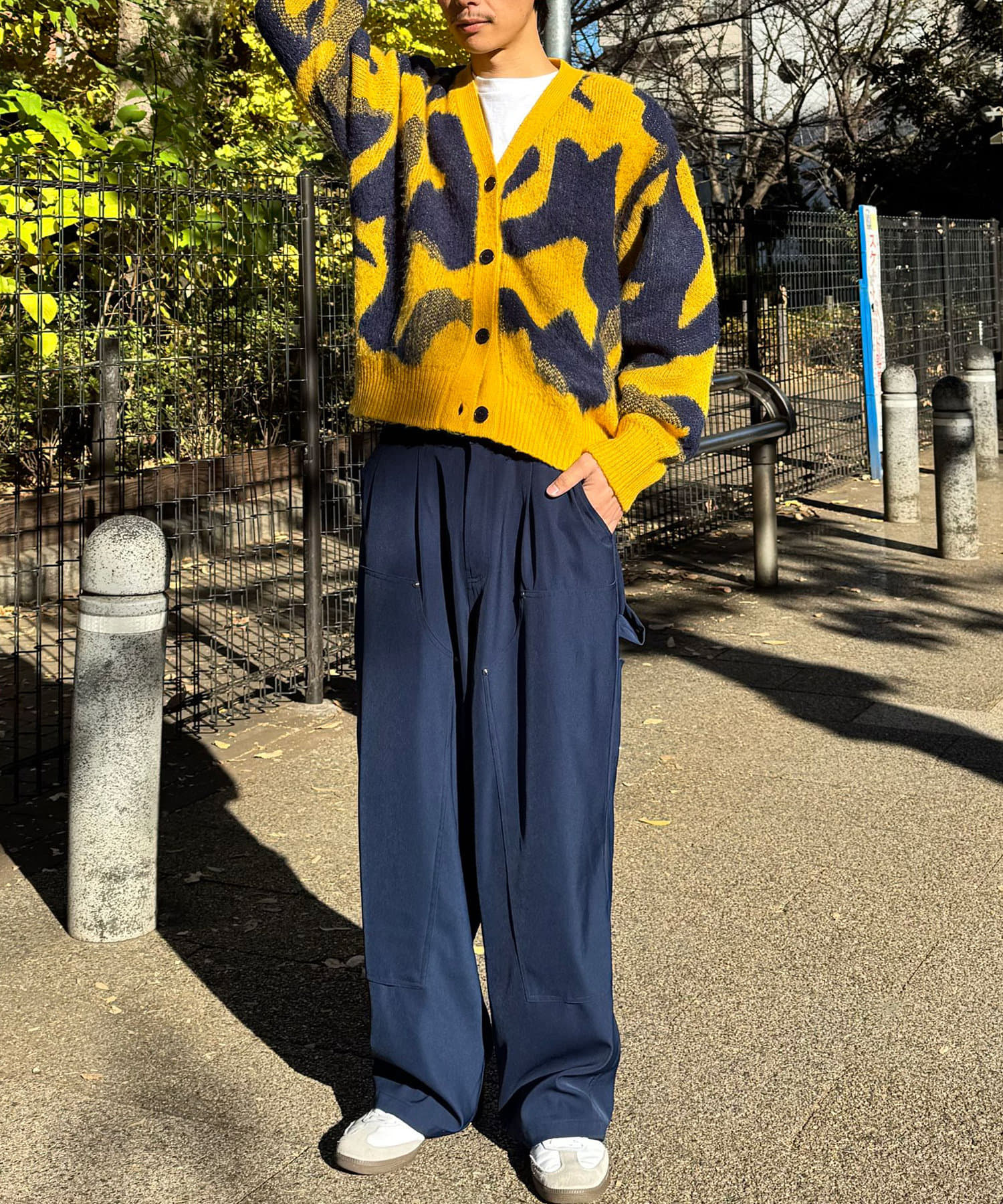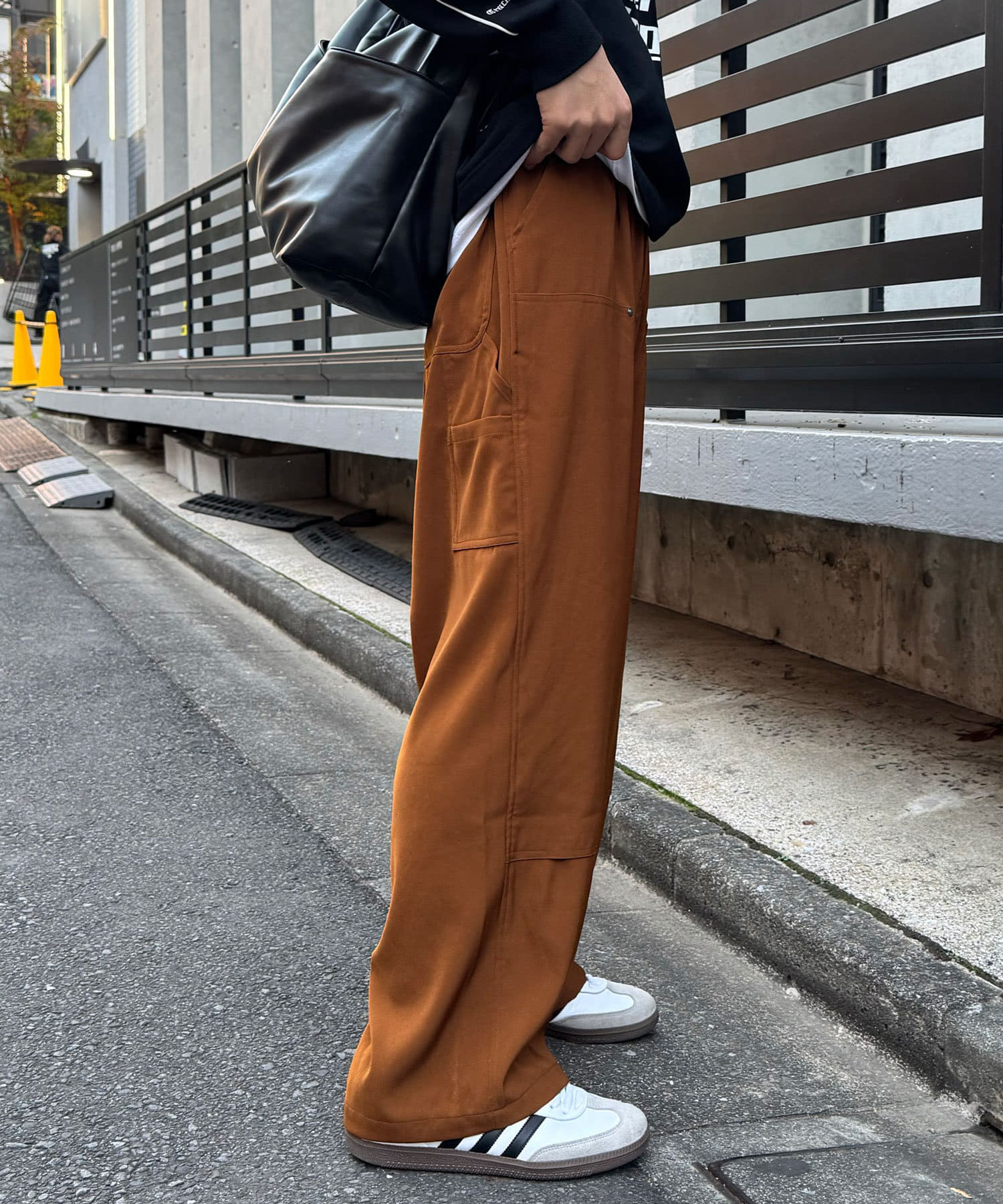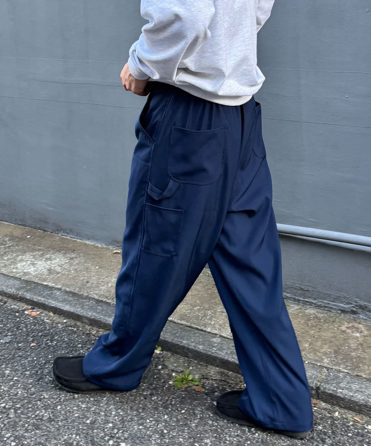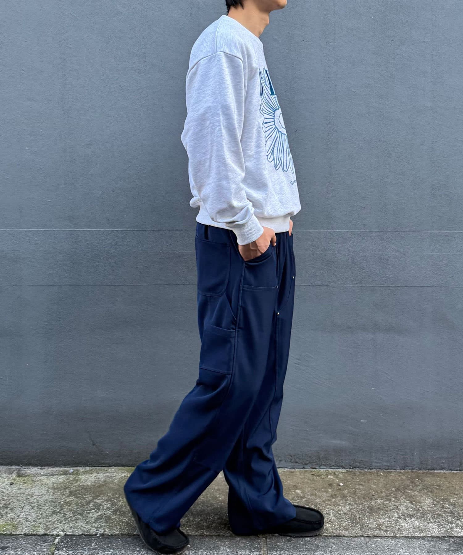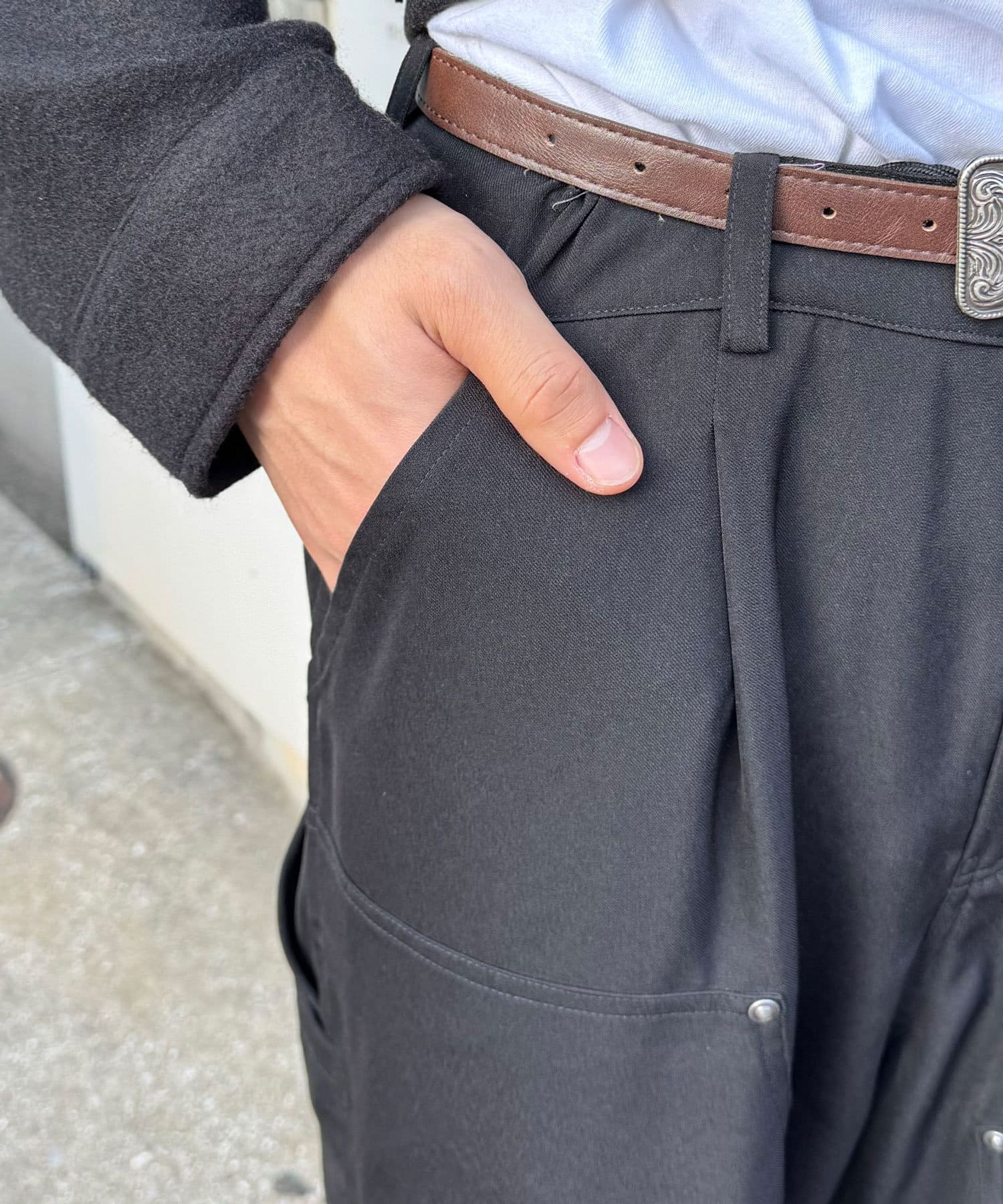 ワークウェアの象徴ともいえるペインターパンツのディテールを取り入れた、ダブルニースラックス。
